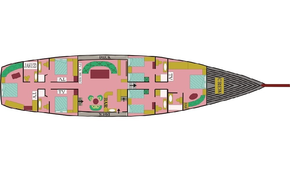 Yaklaşık 24 metrelik gulet, 2 double, 2 twin kabini ile 8 kişilik kapasiteye sahiptir. Tüm kabinlerde klima, özel duş ve tuvalet bulunmaktadır. Lüks ve konforlu salonu, her detay düşünülerek hazırlanmış güvertesi, tam donanımlı ayrı bir mutfağı ve rahat yaşam alanları ile dikkat çekiyor.
