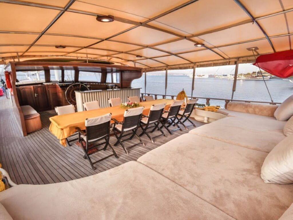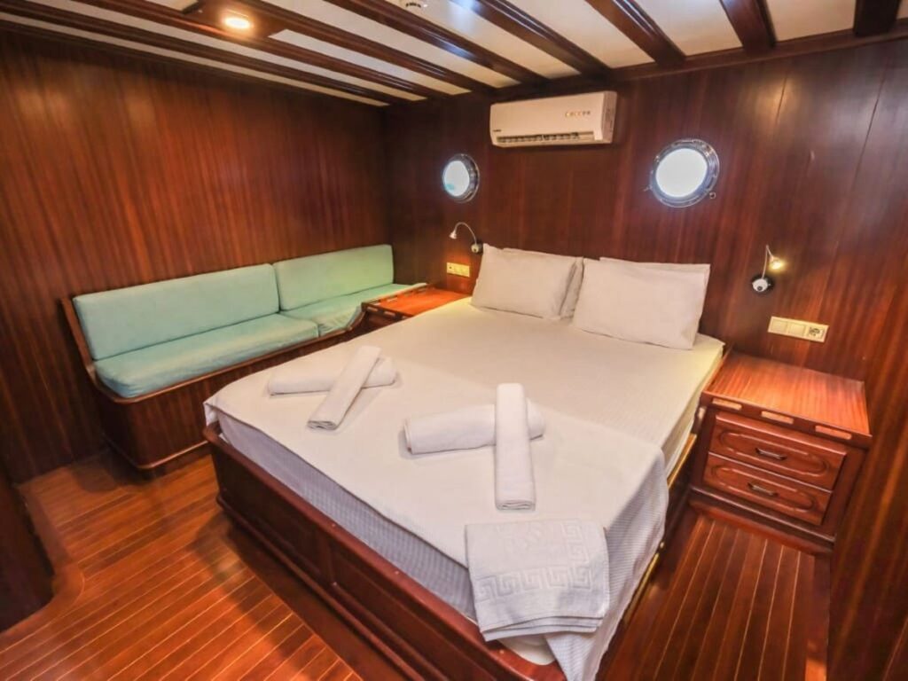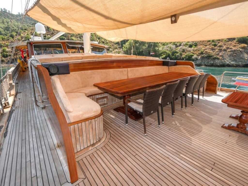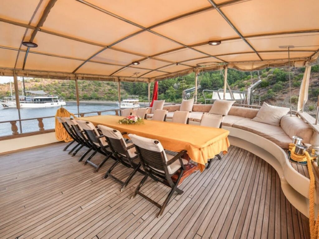 Ön ve arka güvertede bulunan yemek alanları tekne kapasitesini karşılıyor. Kabinler rahat ve klasik modern tarzda..