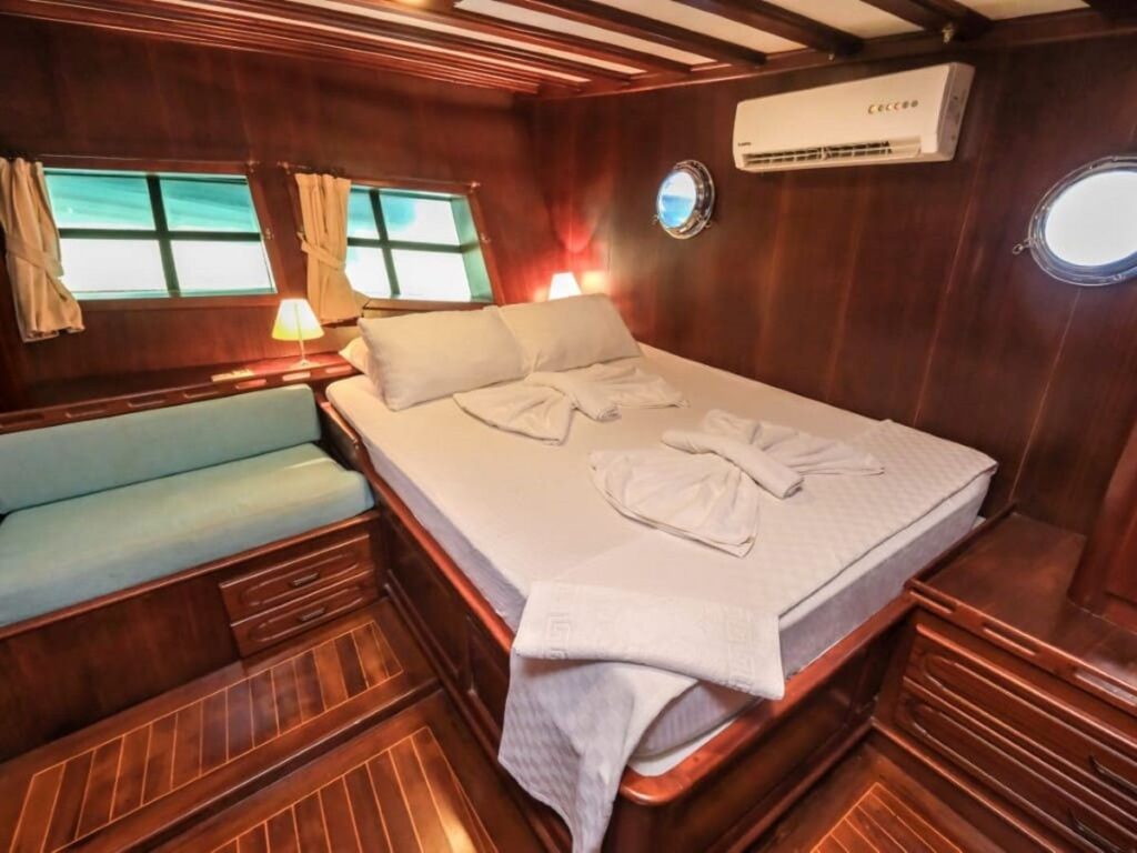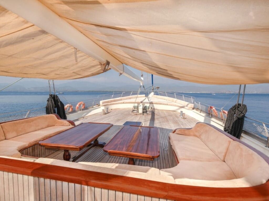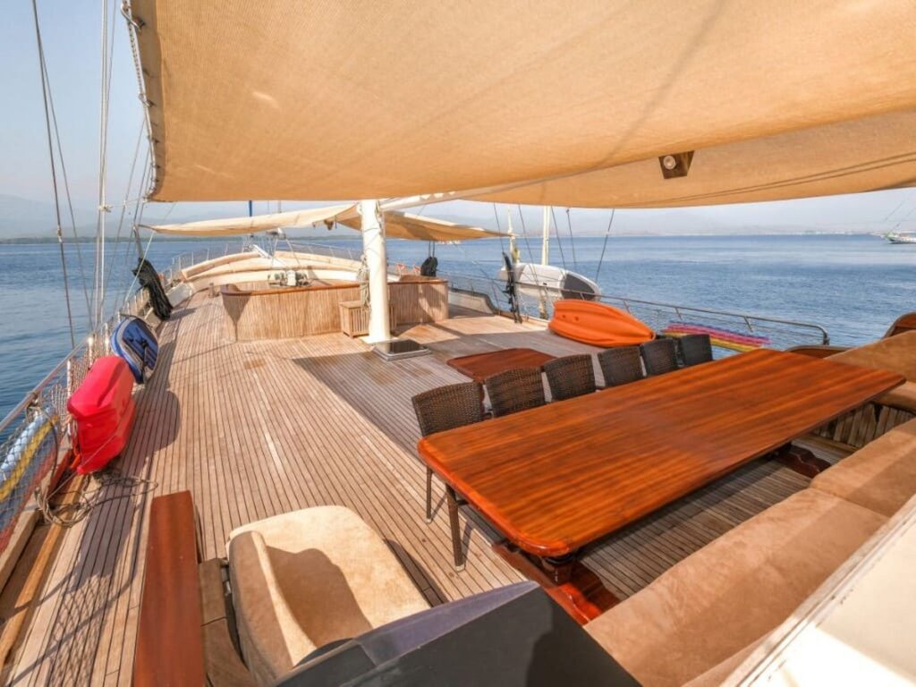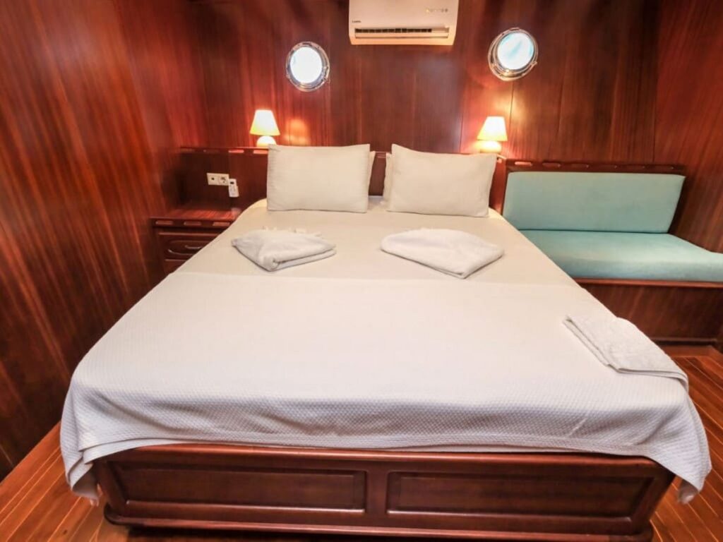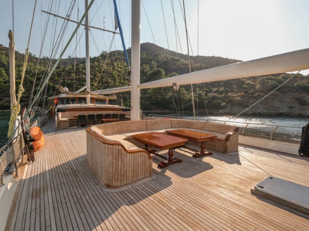 Ön ve arka güvertede bulunan yemek alanları tekne kapasitesini karşılıyor. Kabinler rahat ve klasik modern tarzda..
