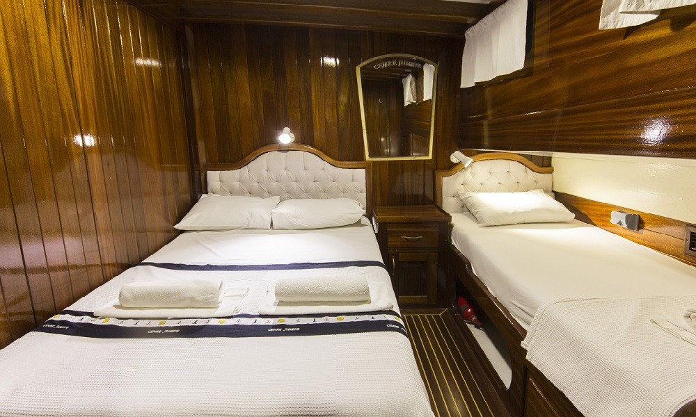 Gulet Cemre Junior- 2006 yılı yapımı teknemiz, 2014 ve en son 2016 yılında yenilenmiş, ayrıca her yıl da bakıma giren bir gulettir.