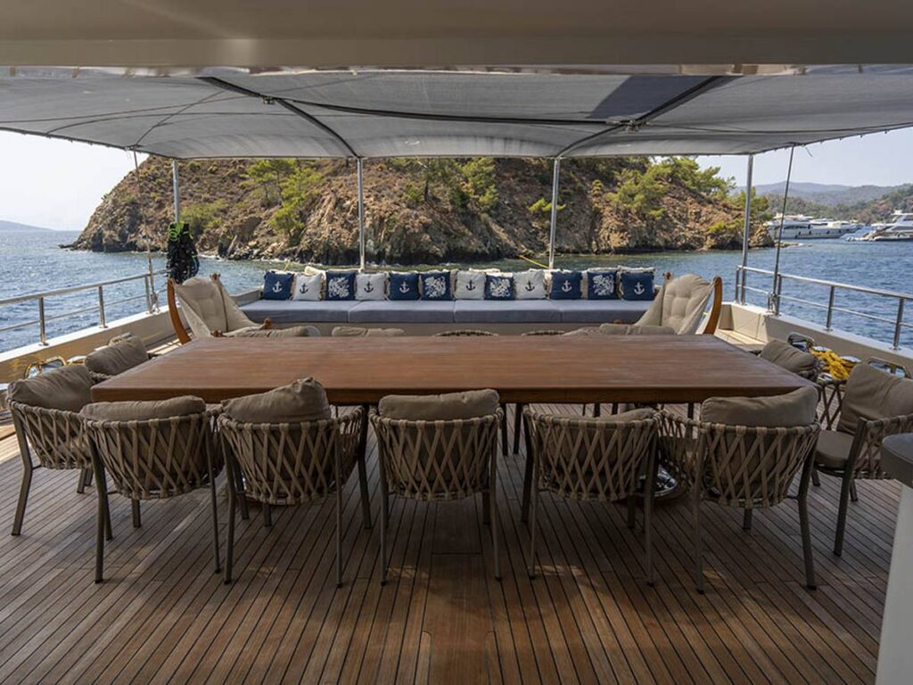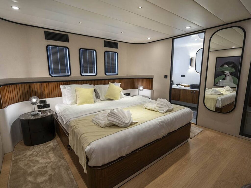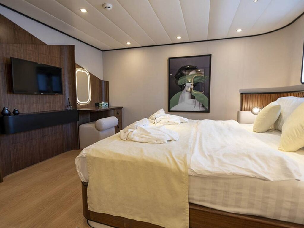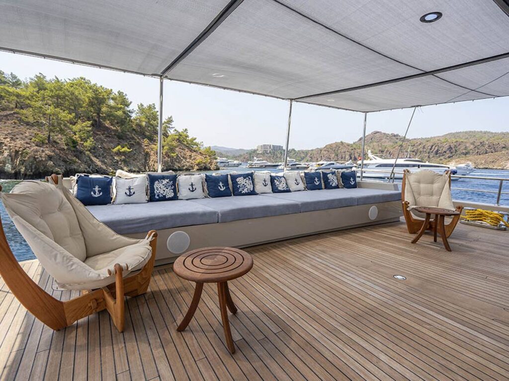 Gulet De Love çok zarif bir tasarıma sahip. 50 metre uzunluğundaki yat, büyüklüğü ve donanımı ile göz kamaştırıyor.