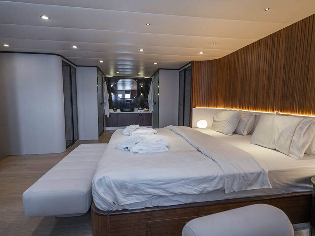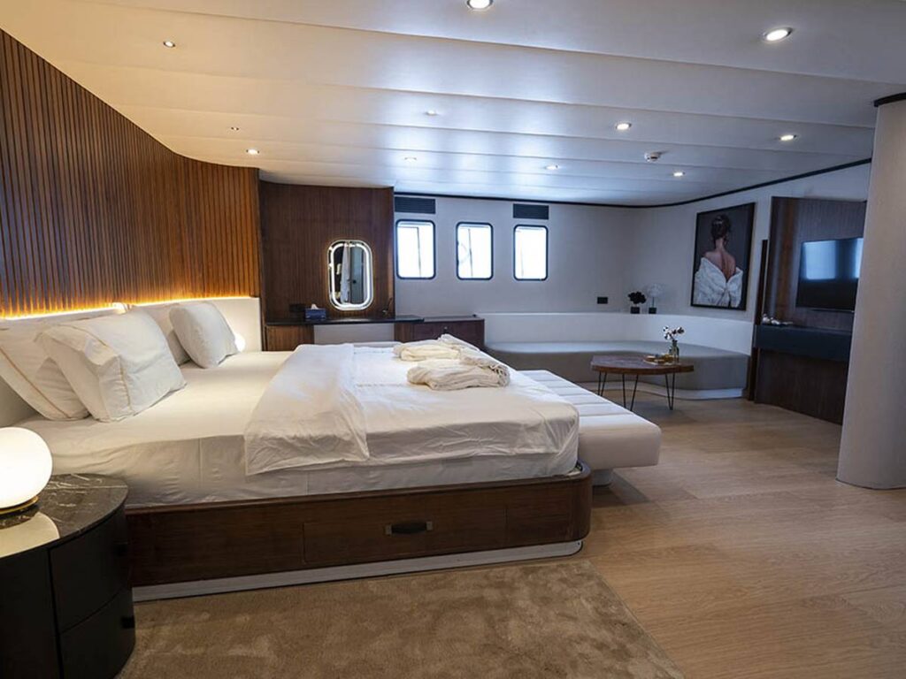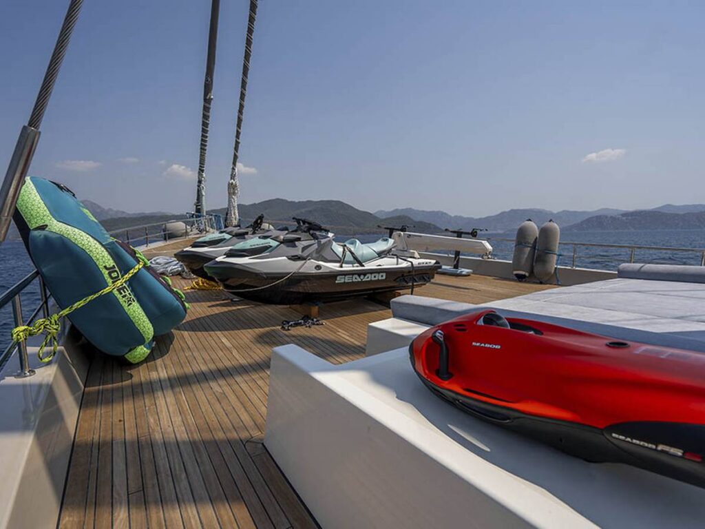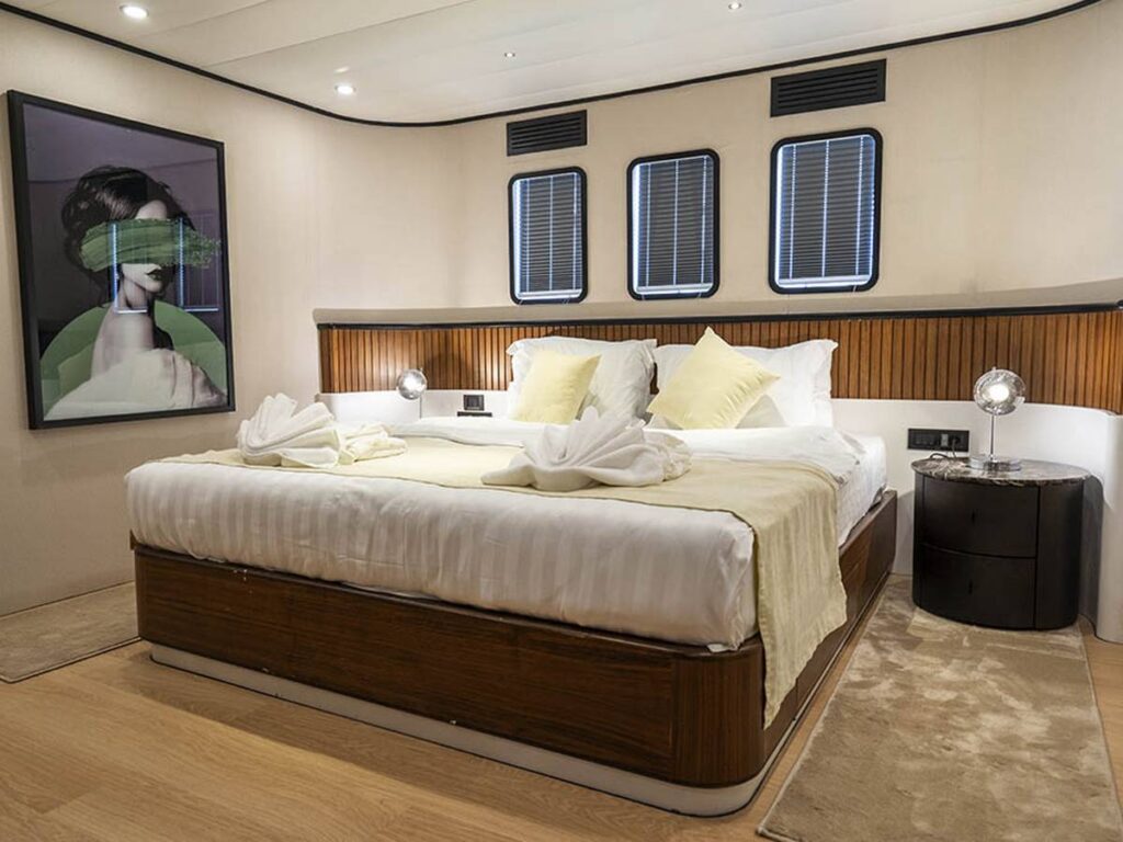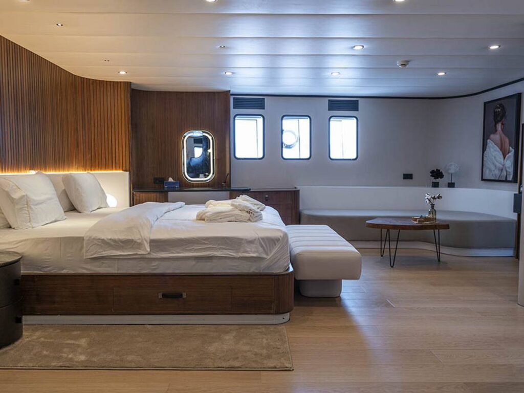 Gulet De Love çok zarif bir tasarıma sahip. 50 metre uzunluğundaki yat, büyüklüğü ve donanımı ile göz kamaştırıyor.