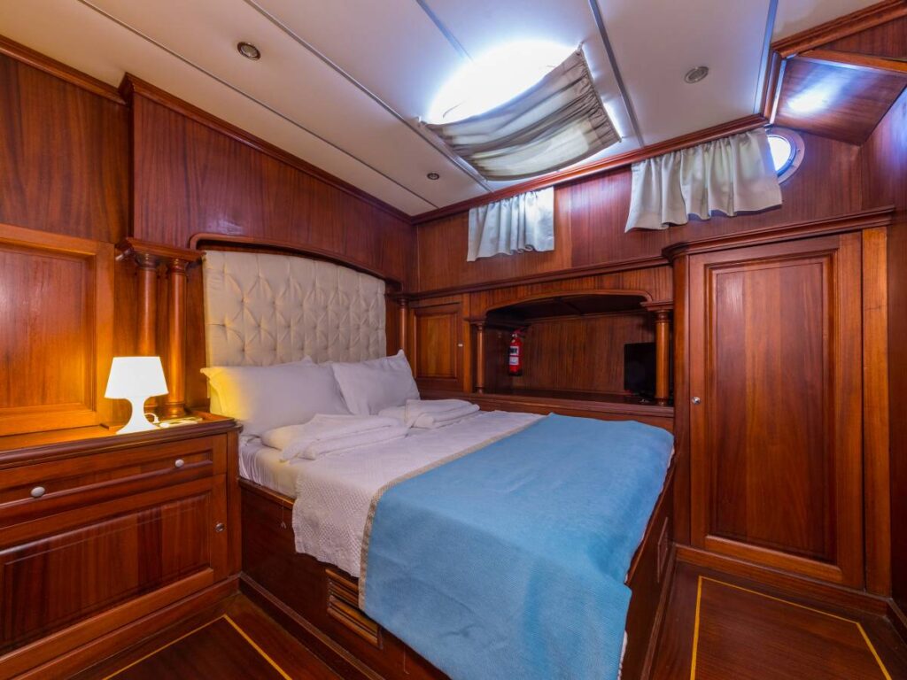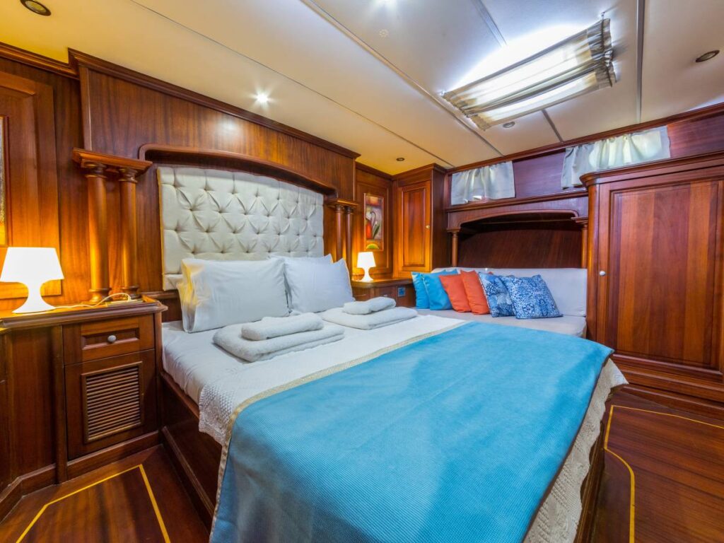 Lüks kategorideki bu 28 metrelik gulet, 5 kabini ile 10 kişilik kapasiteye sahiptir. Tüm kabinlerinde klima, TV, özel duş ve tuvalet bulunmaktadır.