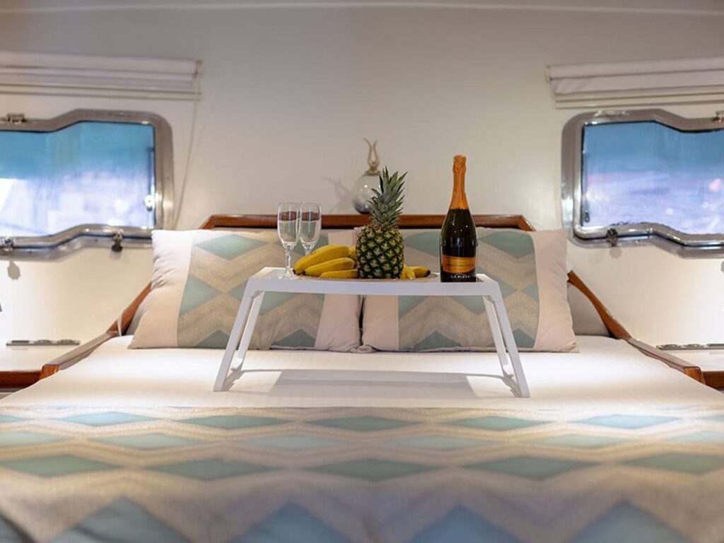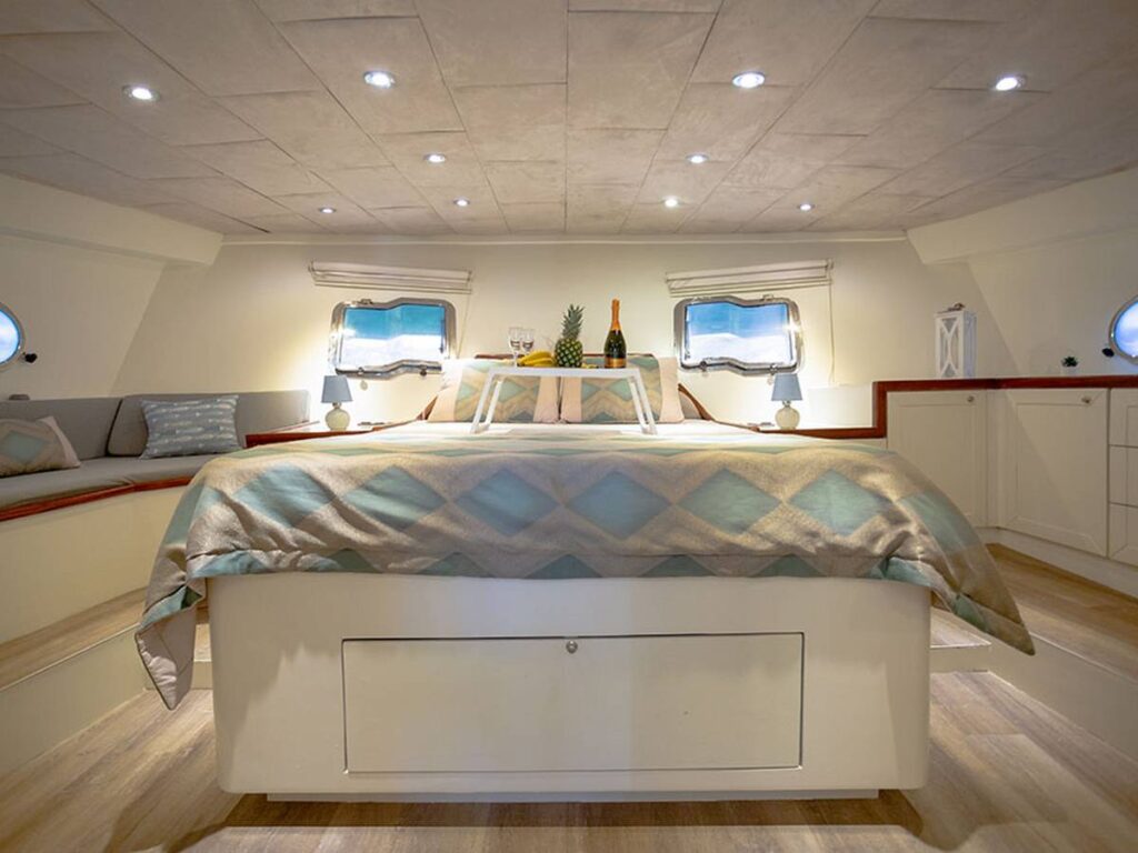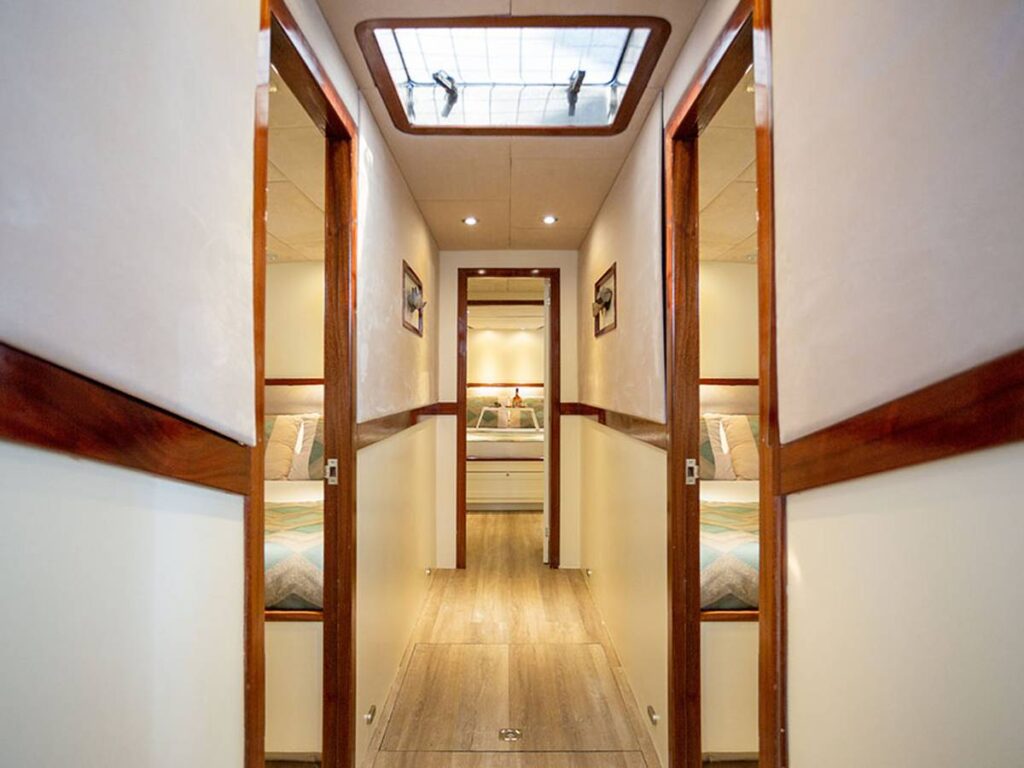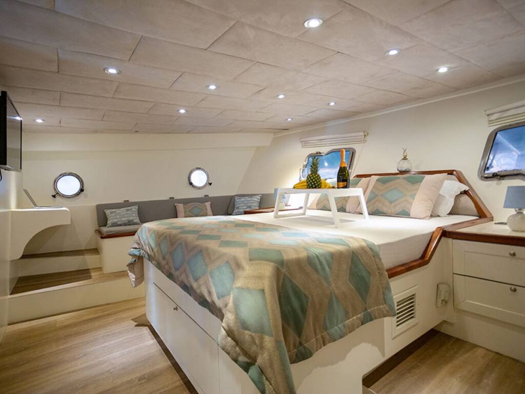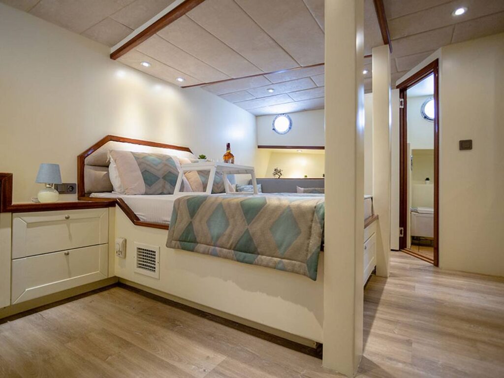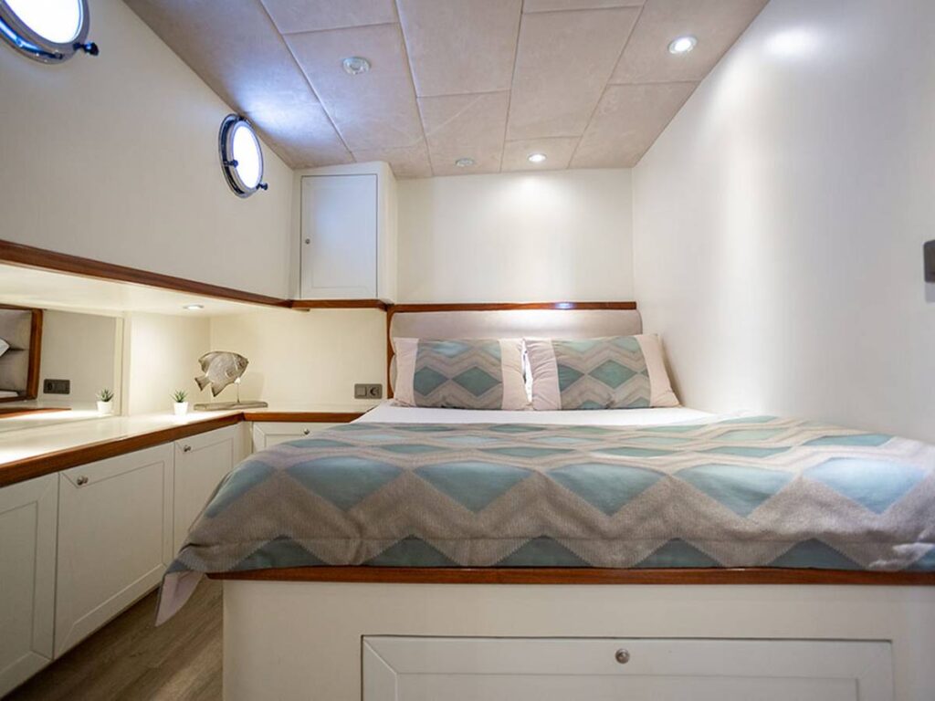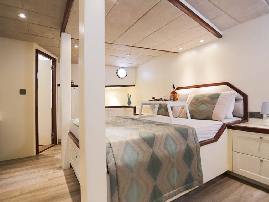 2 master kabin, 3 double kabin, tamamı özel duş ve tuvalet bulunan klimalı kabinlerinde toplam 10 misafir ağırlayabilmektedir.
