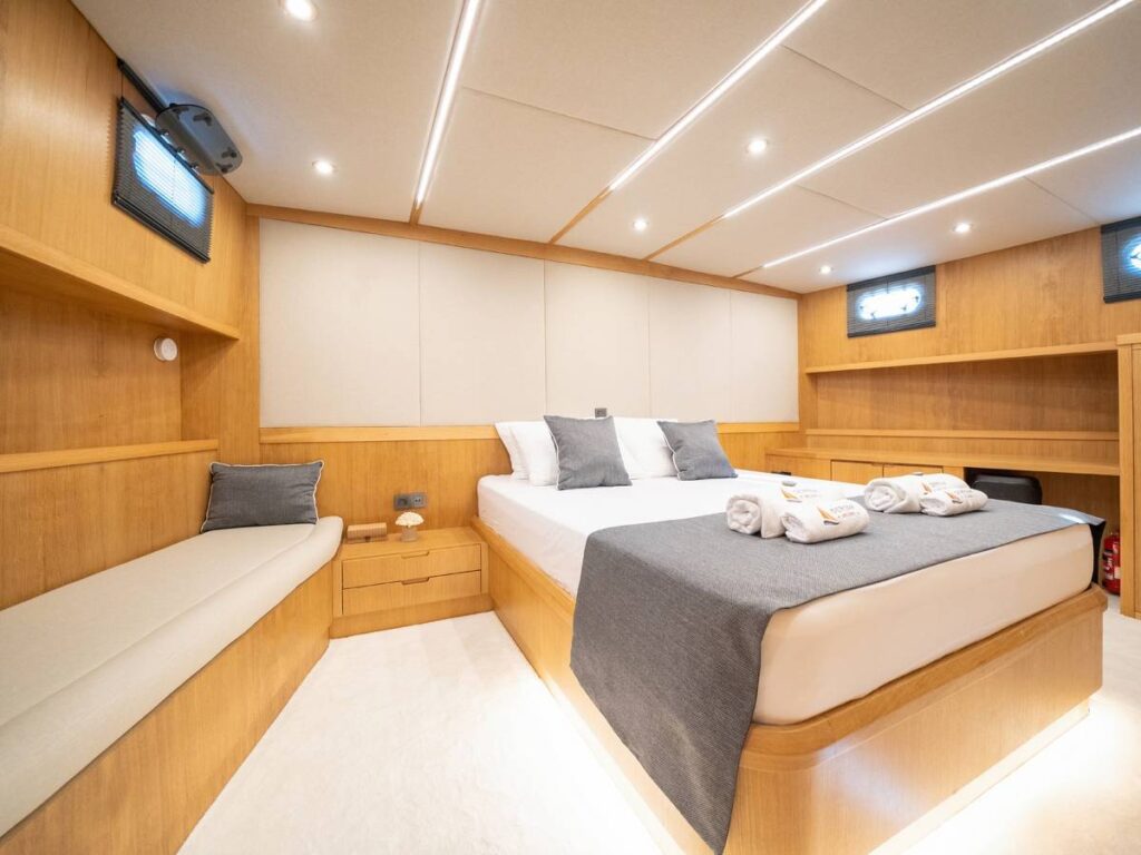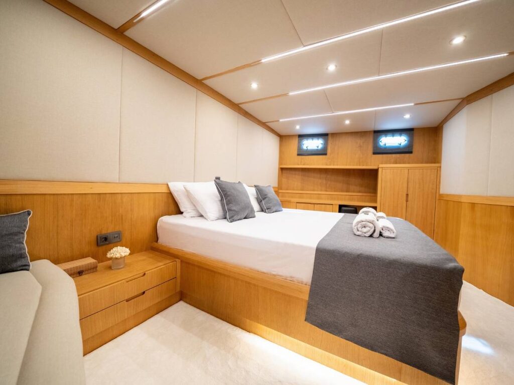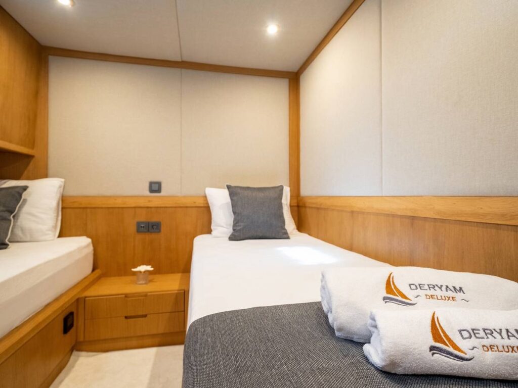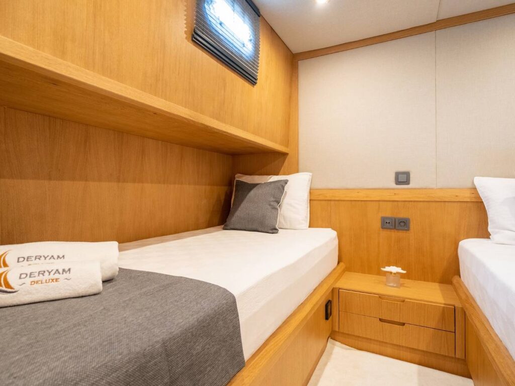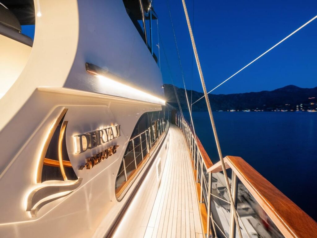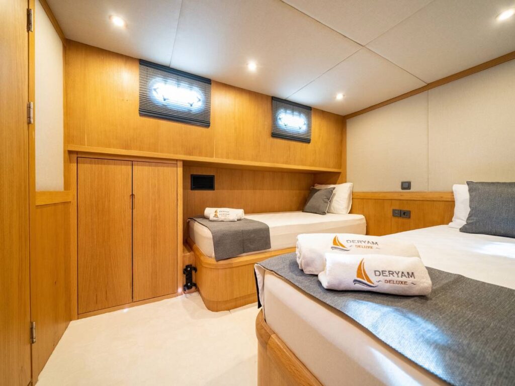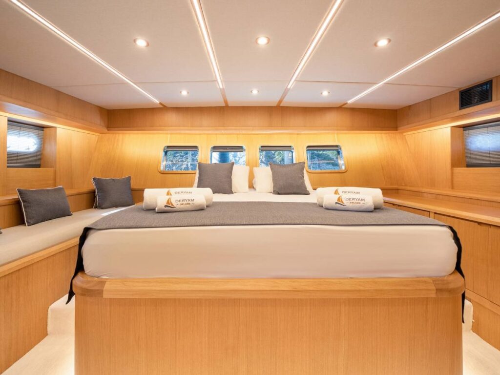 Gulet Deryam De Luxe – Deryam Lüks Gulet, 5 kabinli, toplam 10 misafir konaklamasına uygun yepyeni bir yattır. En yeni cihazlarla donatılmış zarif ve ferah bir yattır.