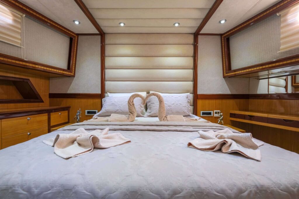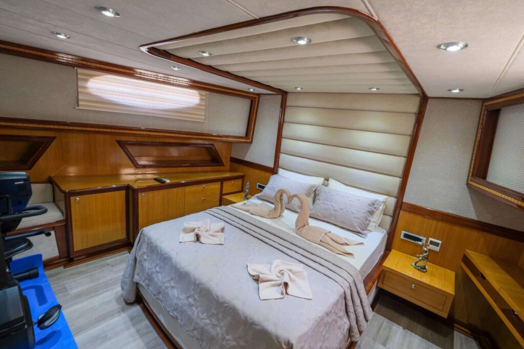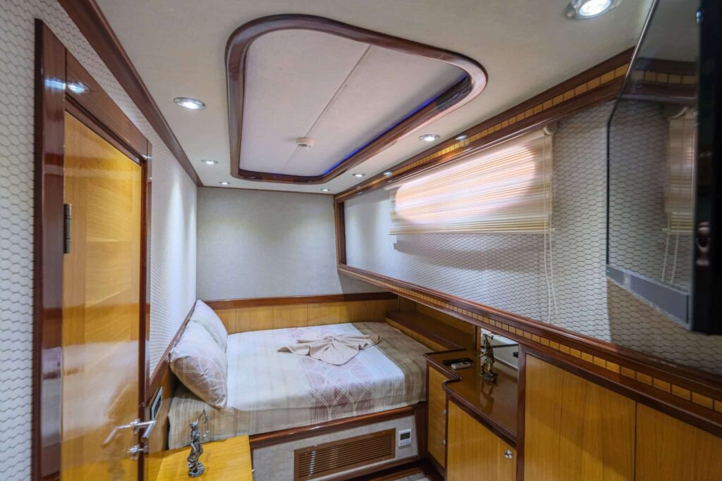 Gulet Destiny, 28 metre uzunluğunda ve 7.35 metre genişliğinde konforlu bir yattır. Bu yat, Türkiye’de bir Mavi Yolculuk sırasında ihtiyacınız olan her şeyi sunar. 4 kabin zarif ve şık bir şekilde döşenmiştir ve 8 kişi için mükemmel bir seçimdir. Bu güzel yatın ana limanı Fethiye’dir ve buradan kaptan size tüm güzel koyları gösterecektir.