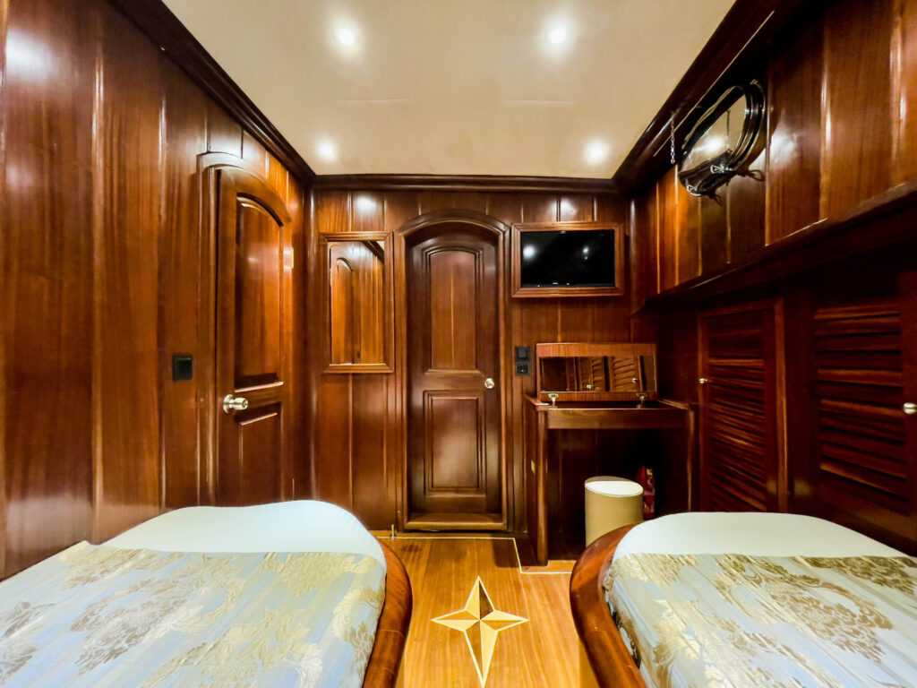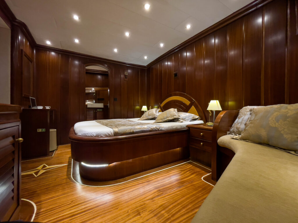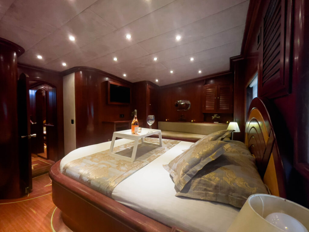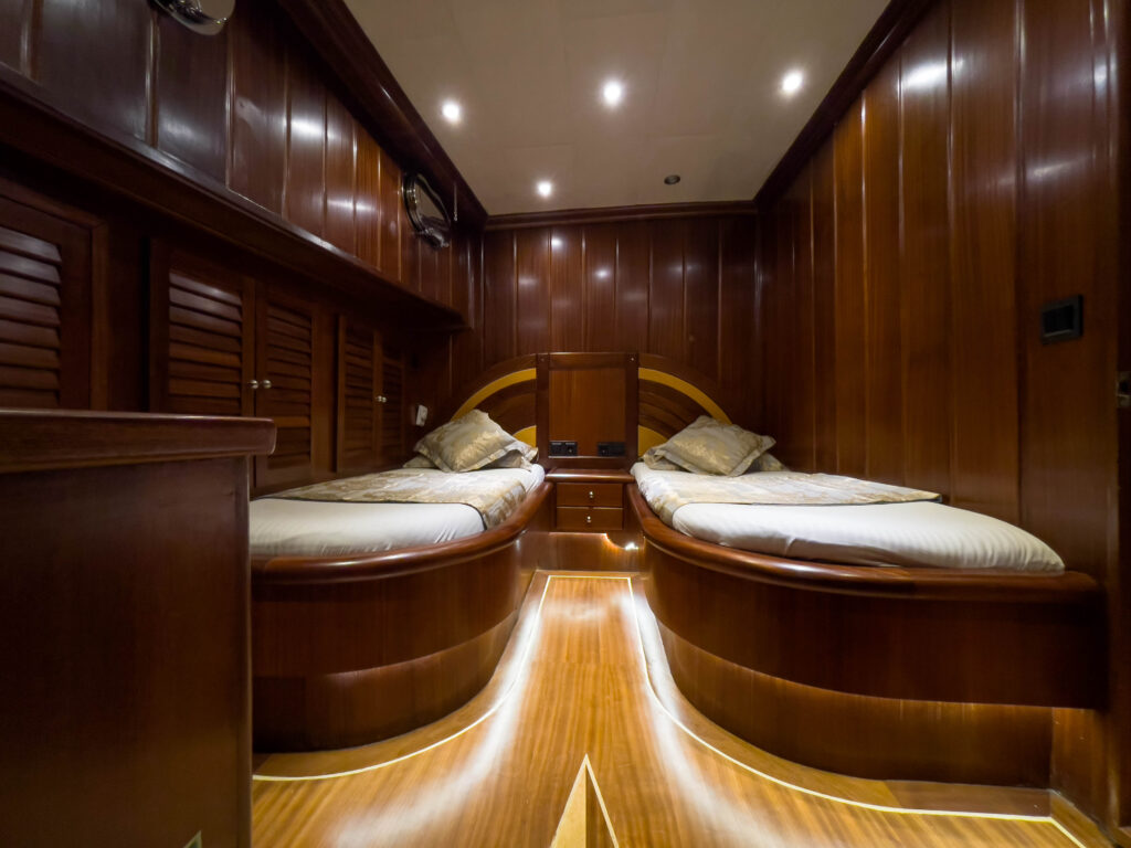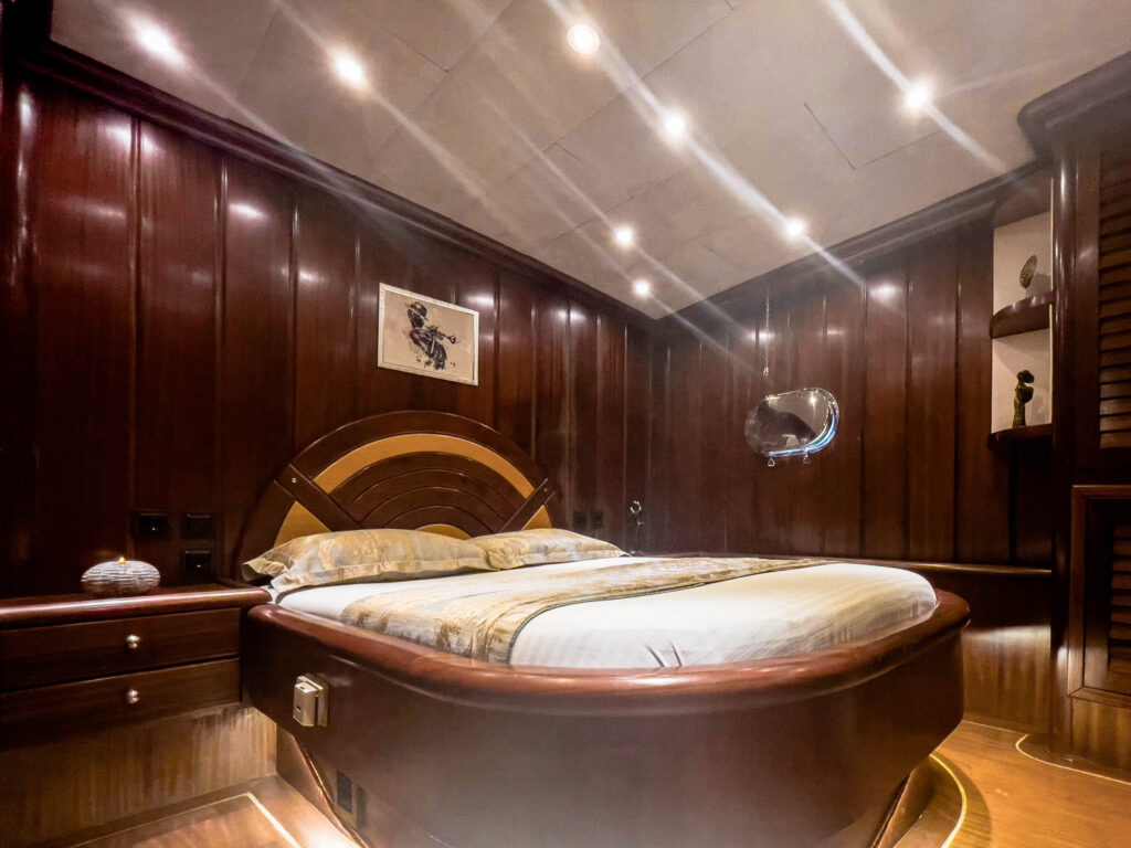 29 metrelik gulet, tam bir mavi yolculuk tatili için özel olarak dizayn edilmiştir. 6 kabini ile 12 kişilik misafir kapasitesine sahip olan teknemizin tüm kabinleri ve salonu klima ile donatılmıştır. Yine tüm kabinlerin özel duş ve tuvaleti vardır.