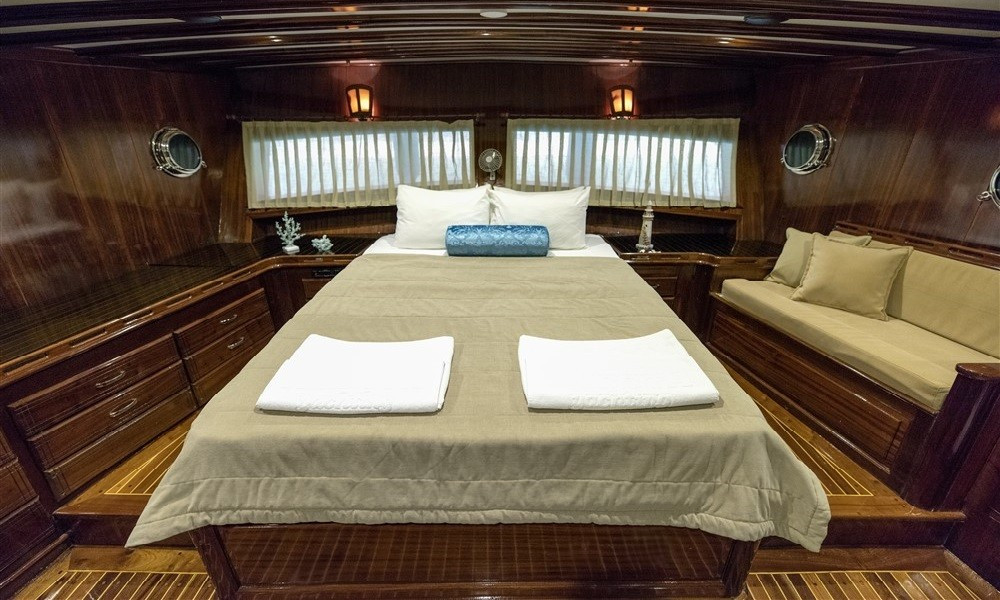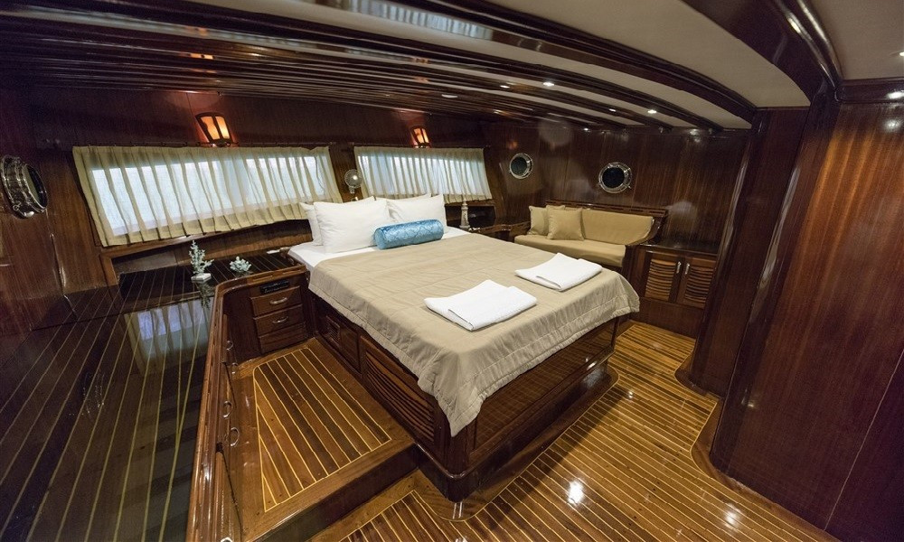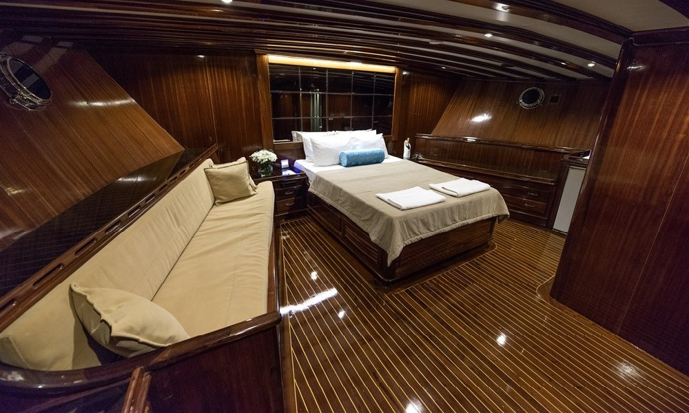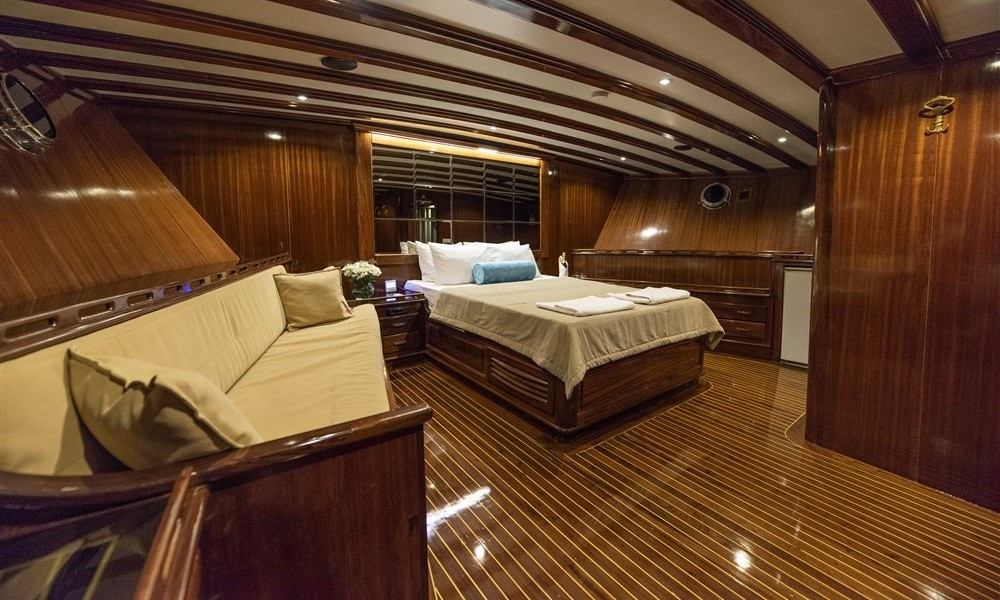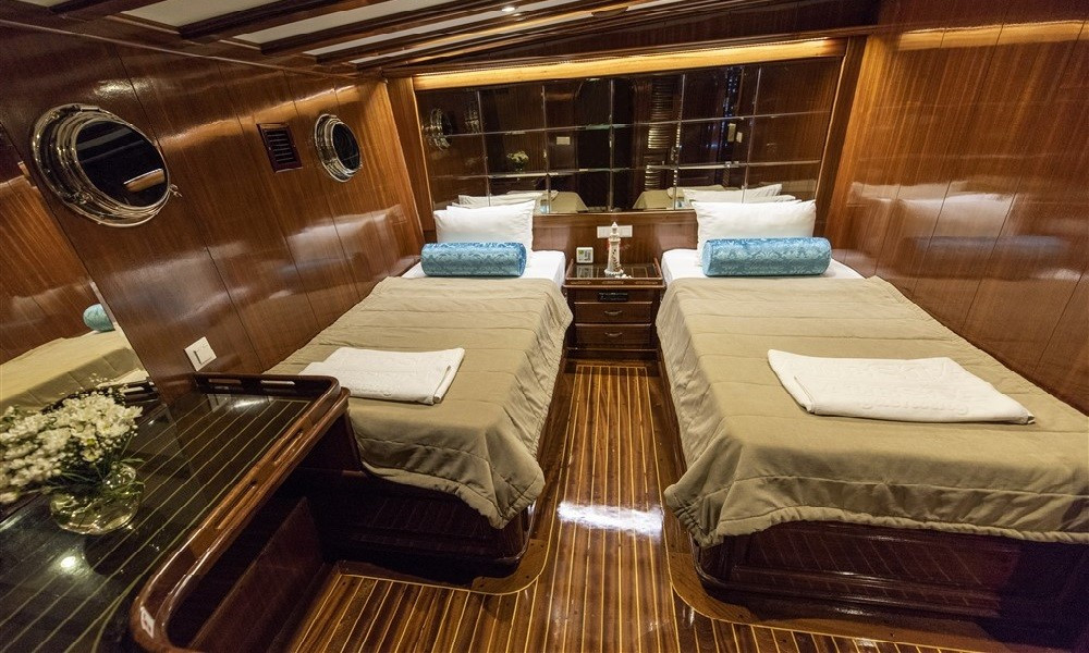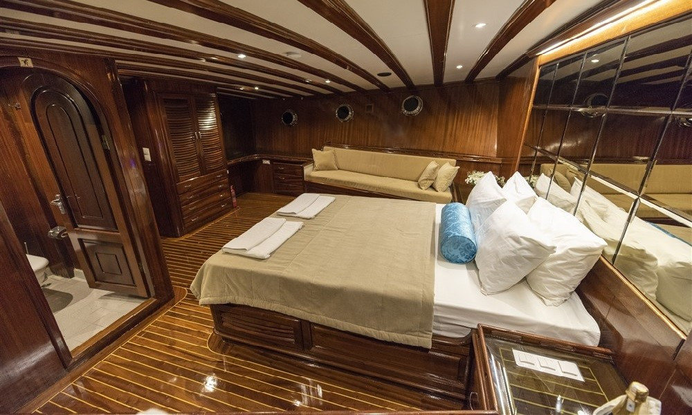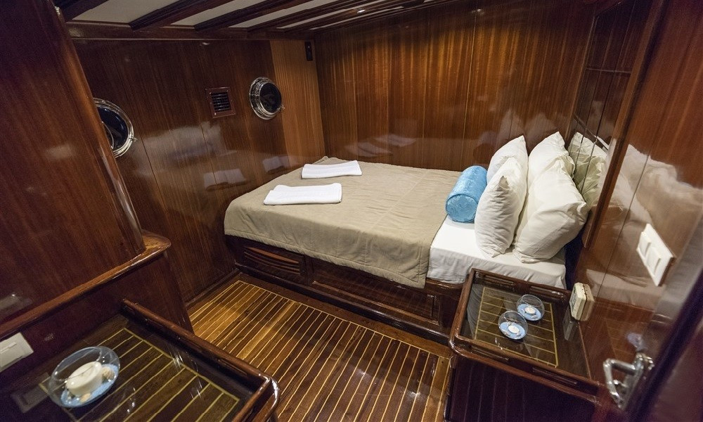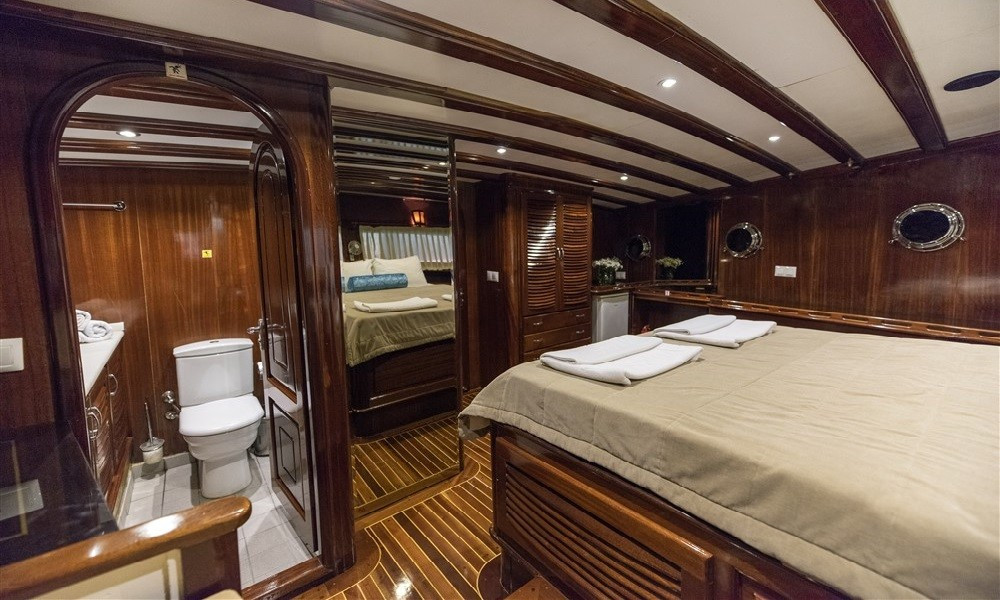 6 kabini olan bulunan teknemizin tüm kabinleri klimalı ve oldukça şık döşenmiştir. Teknede rahatlık ve konfor ön plandadır. 5 kişilik mürettebattan oluşan ekibi kaliteden ve iyi servisten ödün vermez. Hayalini kurduğunuz tatili bu tekne ile gerçekleştirebilirsiniz.