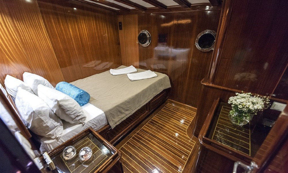 12 kişilik kapasiteye sahip olan  gulet, Fethiye ve Göcek kalkışlı turlarınız için idealdir.