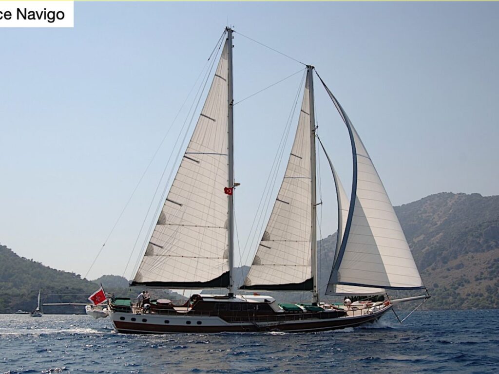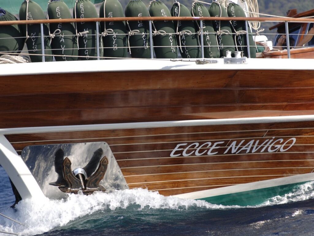 Ecce Navigo, 34 metre uzunluğunda yüksek kaliteli bir gulettir ve 2008 yılında tamamen yenilenmiştir. Bu fantastik gulet, 5 kabine sahiptir ve bunların hepsi lüks ve zarif bir şekilde döşenmiş ve özel duş, tuvalet ve klima gibi tüm konforlarla donatılmıştır. Tekne toplamda 10 kişiyi ağırlayabilir.