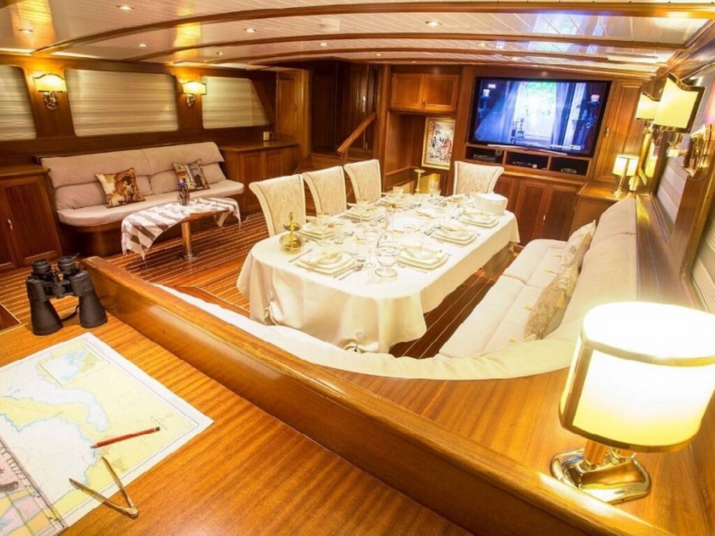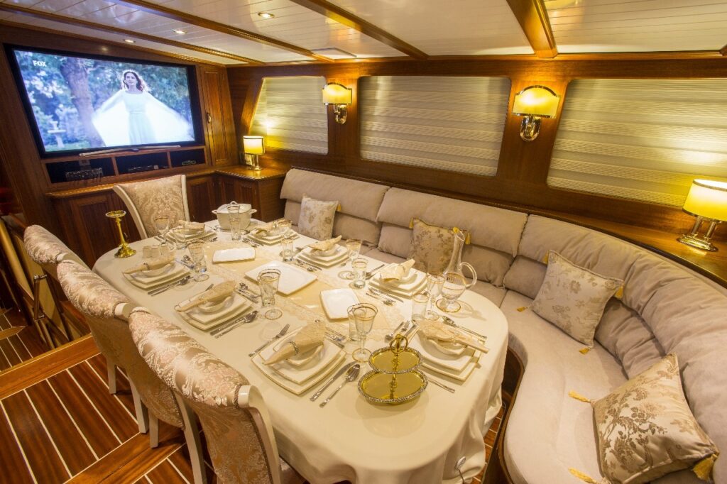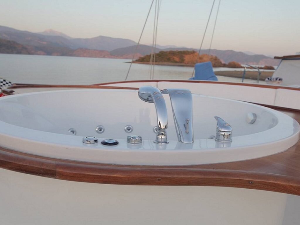 Tüm kabinlerde TV, DVD ve müzik sistemi bulunmaktadır. Gulet Ece Berrak’ın içi zevkli ve lüksü yansıtıyor. Salonda eğlenmeniz için TV, DVD ve müzik sistemi bulunmaktadır. Yemekleriniz tam donanımlı ayrı bir mutfakta hazırlanırken, arkanıza yaslanıp güneşlenebilirsiniz. Ece Berrak size ayrıcalıklı bir havayla çok keyifli bir atmosfer sunuyor ve bu kısmen güvertede bulunan jakuziden kaynaklanıyor. Amacımız her misafire iyi bir tatil deneyimi yaşatmak ve bu nedenle her ayrıntıya çok dikkat ediyoruz. Bu aynı zamanda çok profesyonel ve hizmet odaklı olan 5 kişilik ekip için de geçerlidir.