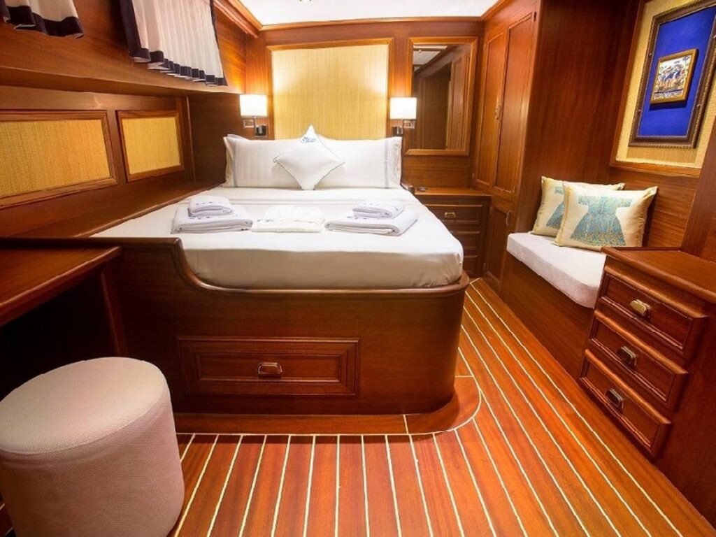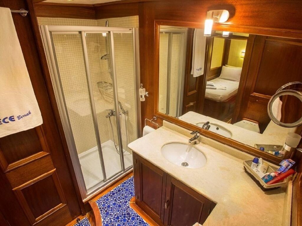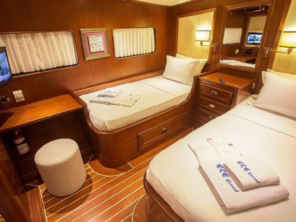 Gulet Ece Berrak- Teknemiz, 1 master, 2 double ve 2 twin kabini ile 33 metre uzunluğunda süper lüks bir gulettir ve 10 misafir kapasitesine sahiptir. Her kabinde özel duş, tuvalet ve klima ile sıcakta konforlu bir konaklama için donatılmıştır.