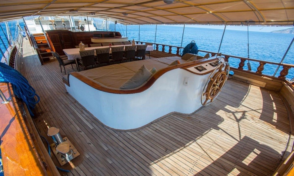 8 kabini ile 16 kişilik kapasitesi olan gulet, geniş güverteleri, konforlu kabinleri ile büyük ve kalabalık gruplar için ideal..