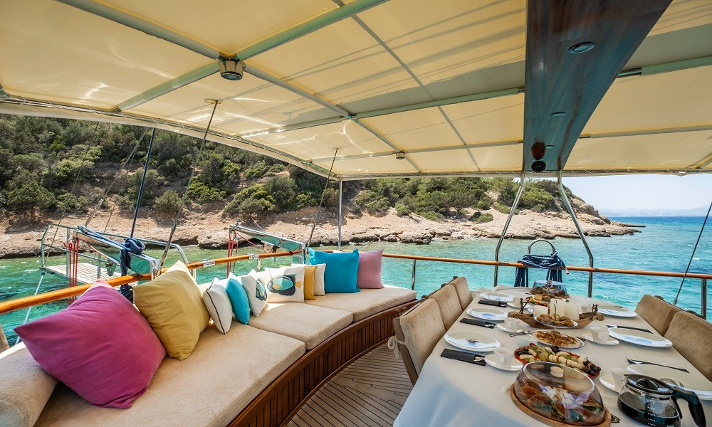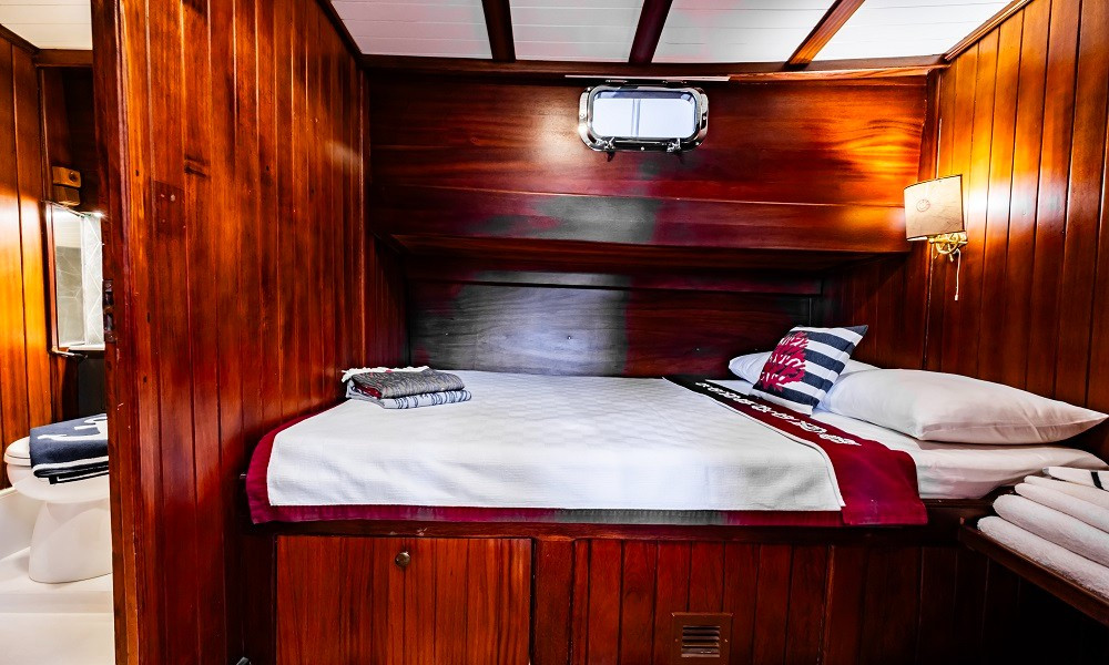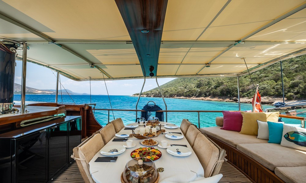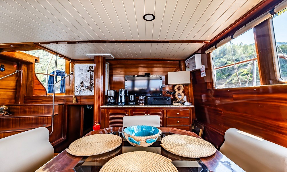 Bodrum çıkışlı mavi turlarınızda tercih edebileceğiniz teknemizde, 3 mürettebat bulunmaktadır. Açık ve kapalı yemek alanları, güzel bir ön güvertesi olan teknemizin kabinleri konforlu ve rahattır.