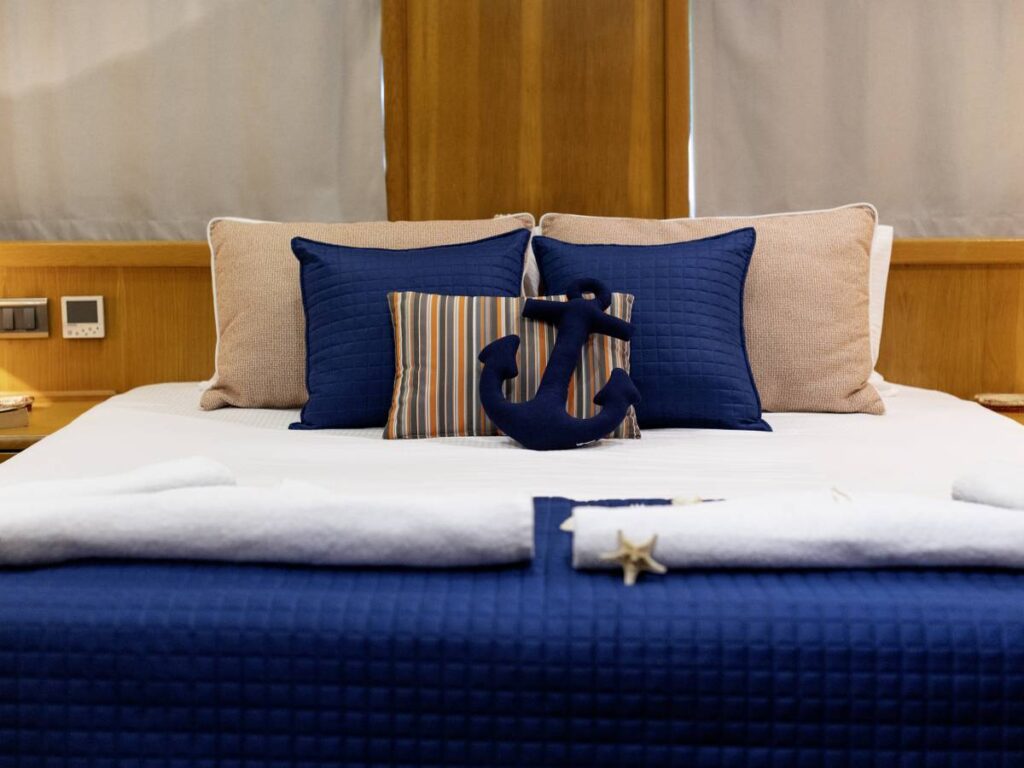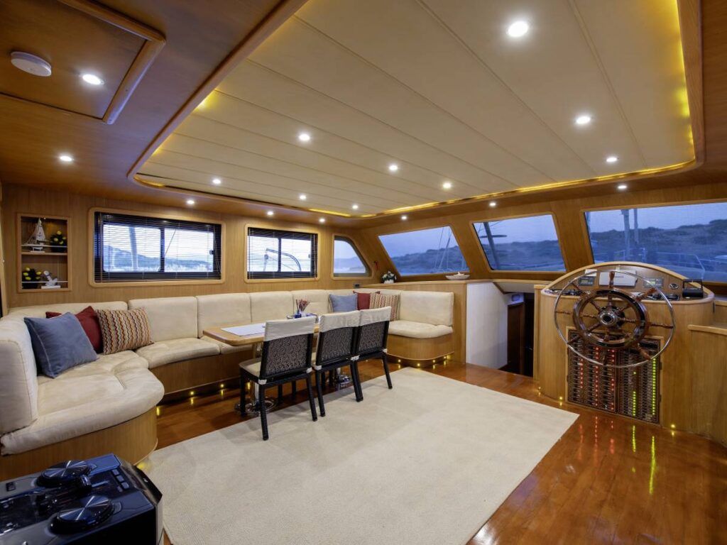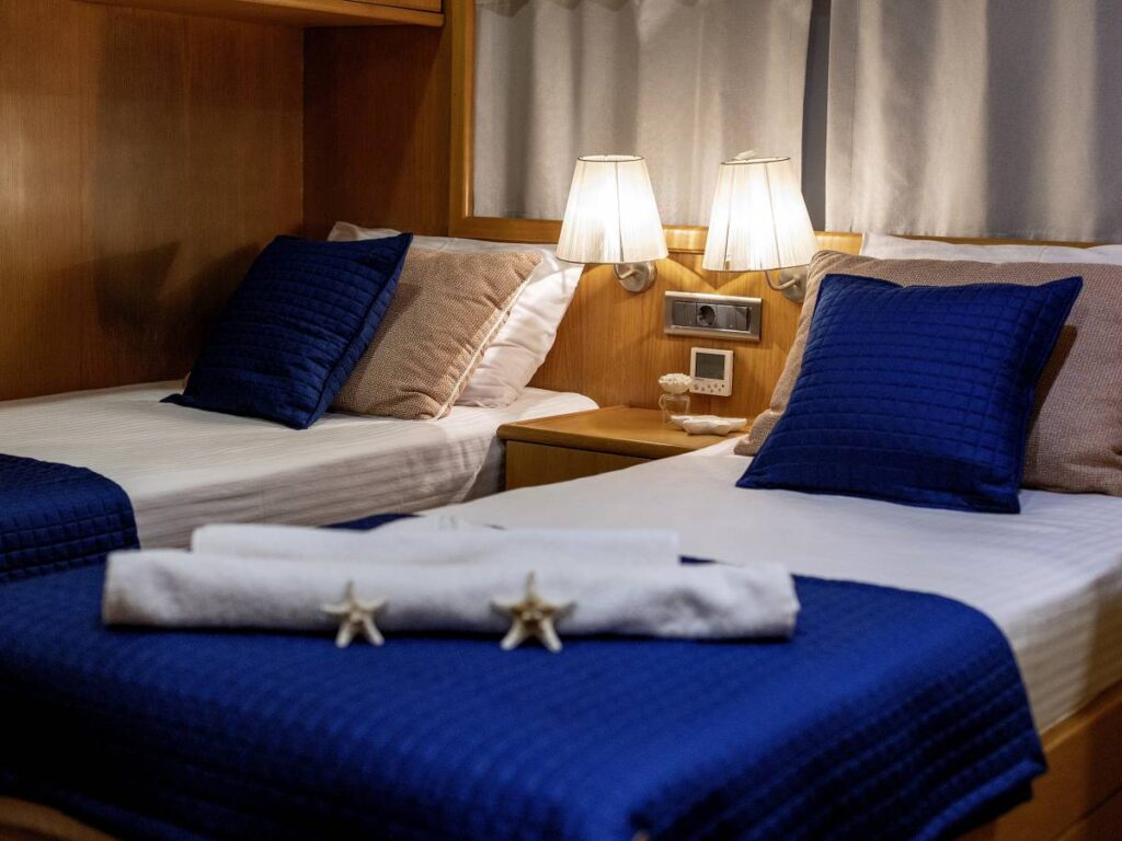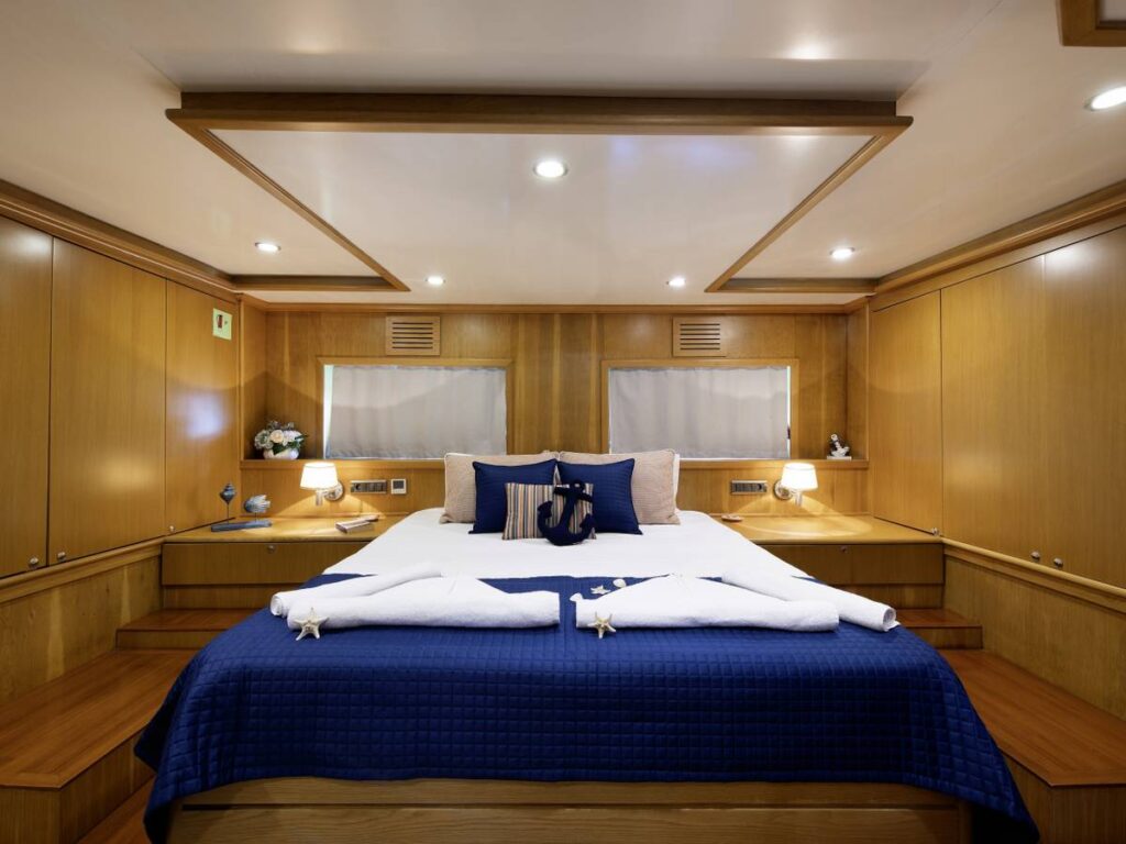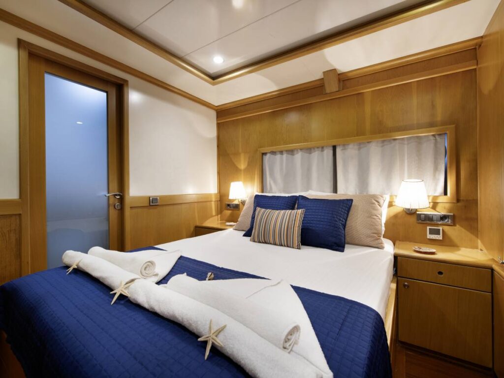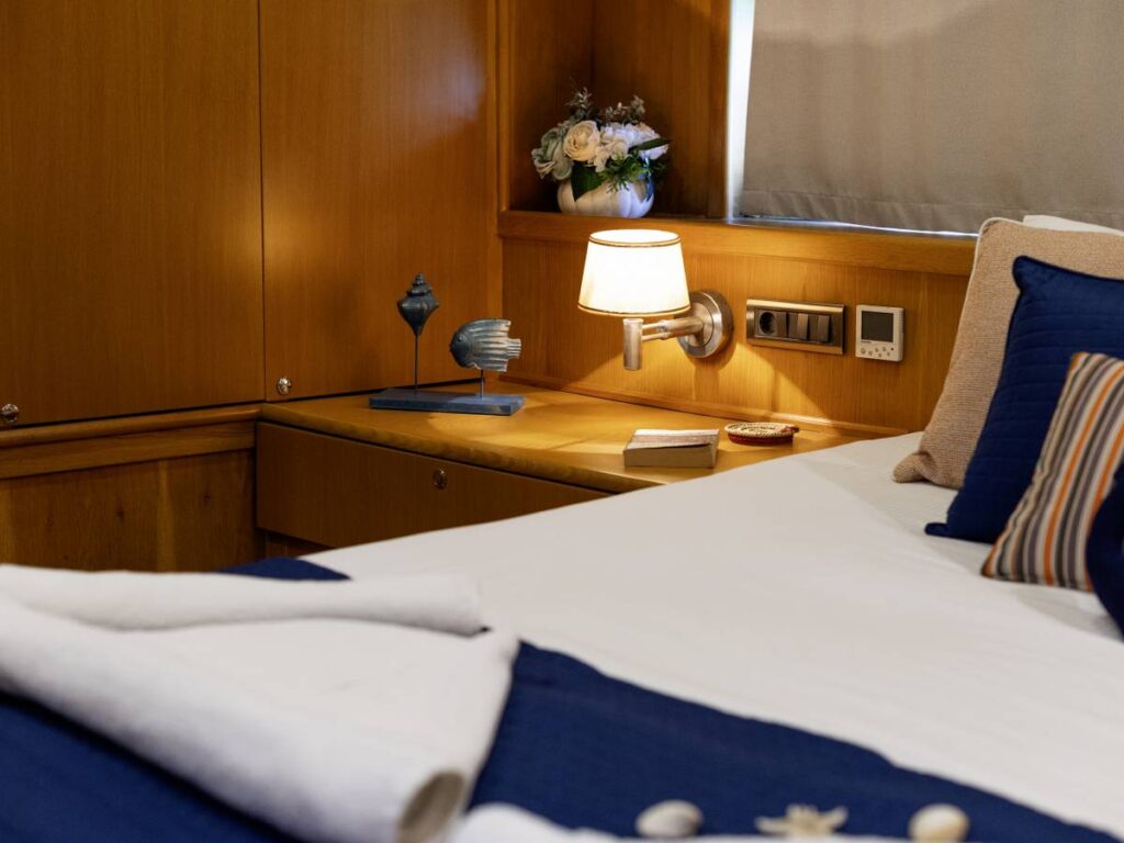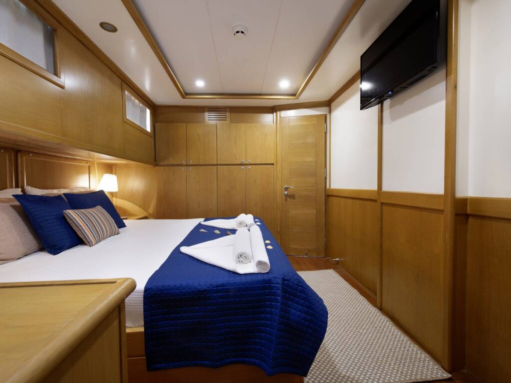 5 kabini bulunan teknemizin kapasitesi 12 kişiliktir. Tüm kabinler ve salon klima ile donatılmıştır. 24 saat Klima hizmeti sunuyor teknemiz. Güvertede yemek alanları, güneşlenme alanları özenle hazırlanmıştır. Kabinler modern tarzda döşenmiştir ve her zaman konfor ilk plandadır.