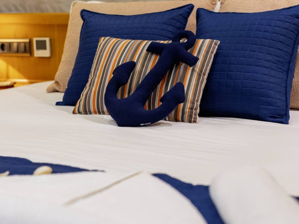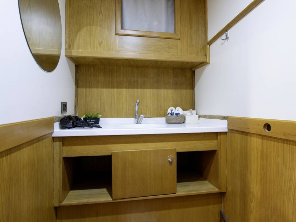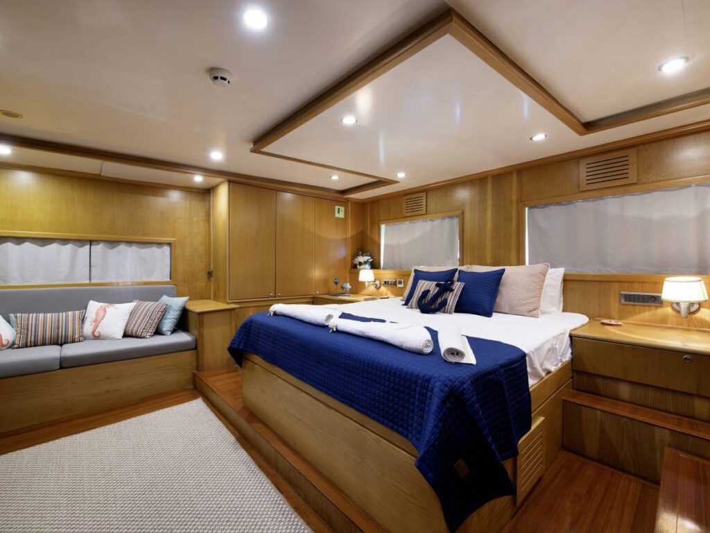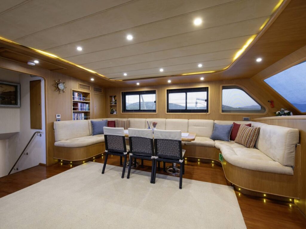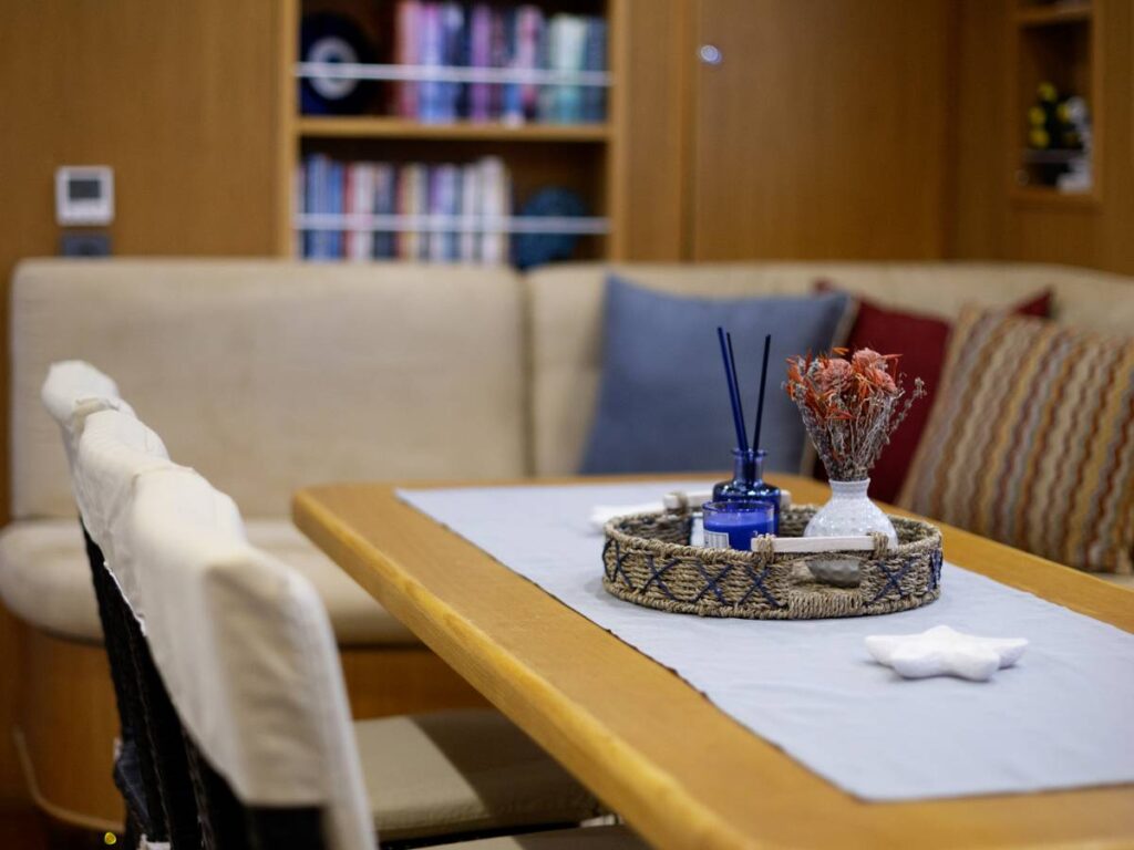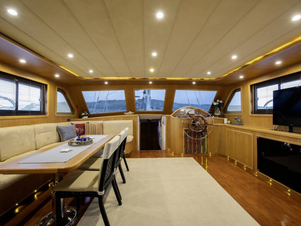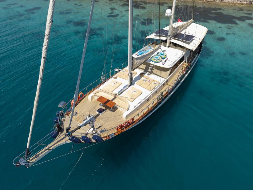 5 kabini bulunan teknemizin kapasitesi 12 kişiliktir. Tüm kabinler ve salon klima ile donatılmıştır. 24 saat Klima hizmeti sunuyor teknemiz. Güvertede yemek alanları, güneşlenme alanları özenle hazırlanmıştır. Kabinler modern tarzda döşenmiştir ve her zaman konfor ilk plandadır.