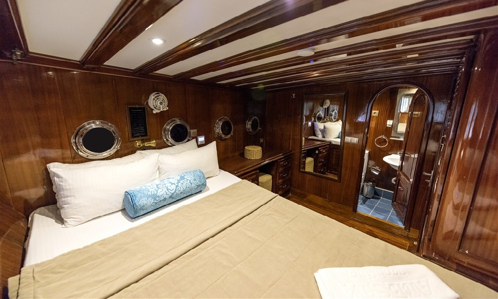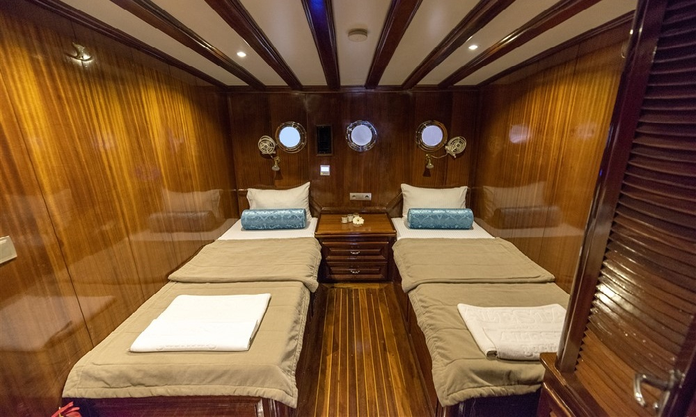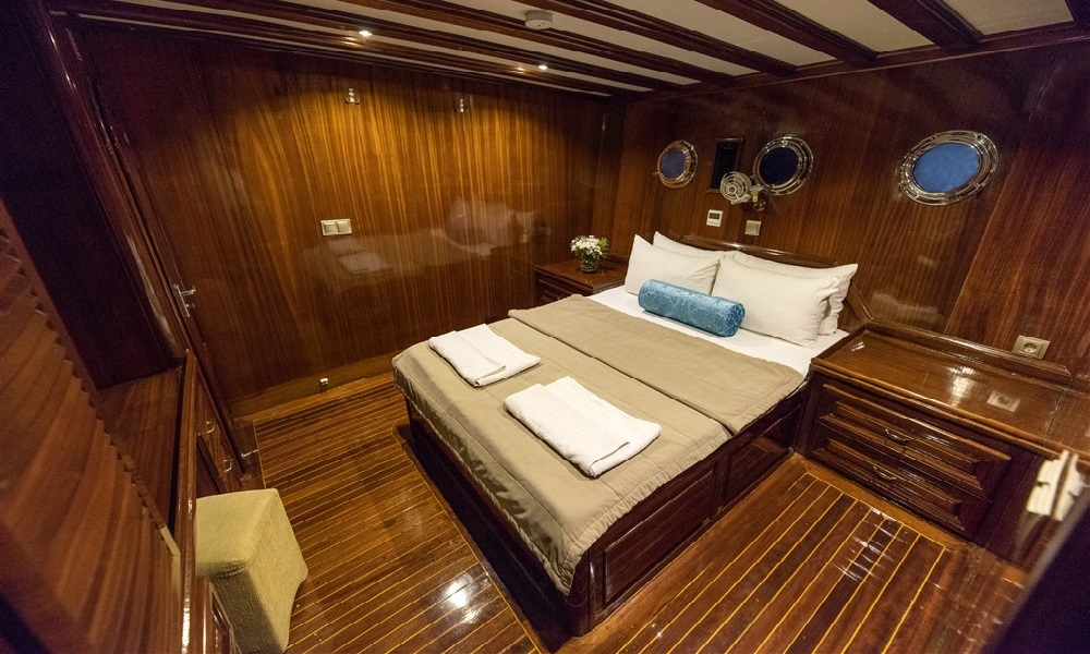 2017 yılında siz değerli misafirlerimiz için tamamen yenilenmiştir. Kayhan’da 10 geniş kabin, 6 Double, 4 Twin kabin bulunmaktadır. Tüm kabinler modern bir tasarımla çok şık bir şekilde döşenmiştir. Tüm kabinlerin kendi duş ve tuvaleti vardır ve klimalıdır. Teknemizin en üst katı da bulunmaktadır. Flybridge, meşgul gruplar için farklı bir yaşam alanı sunar ve tatiliniz boyunca vazgeçilmez kalır. Kapalı ve açık yemek alanlarına sahip klimalı bir salon bulunmaktadır. Salonda TV, DVD ve müzik sistemi vardır. Güvertede çok çeşitli şezlonglar vardır.