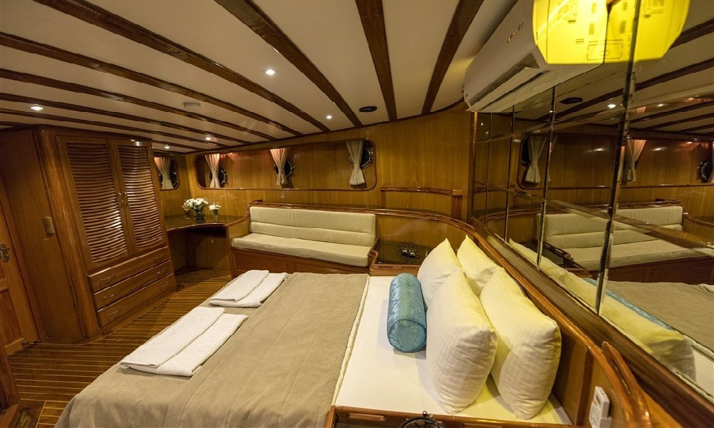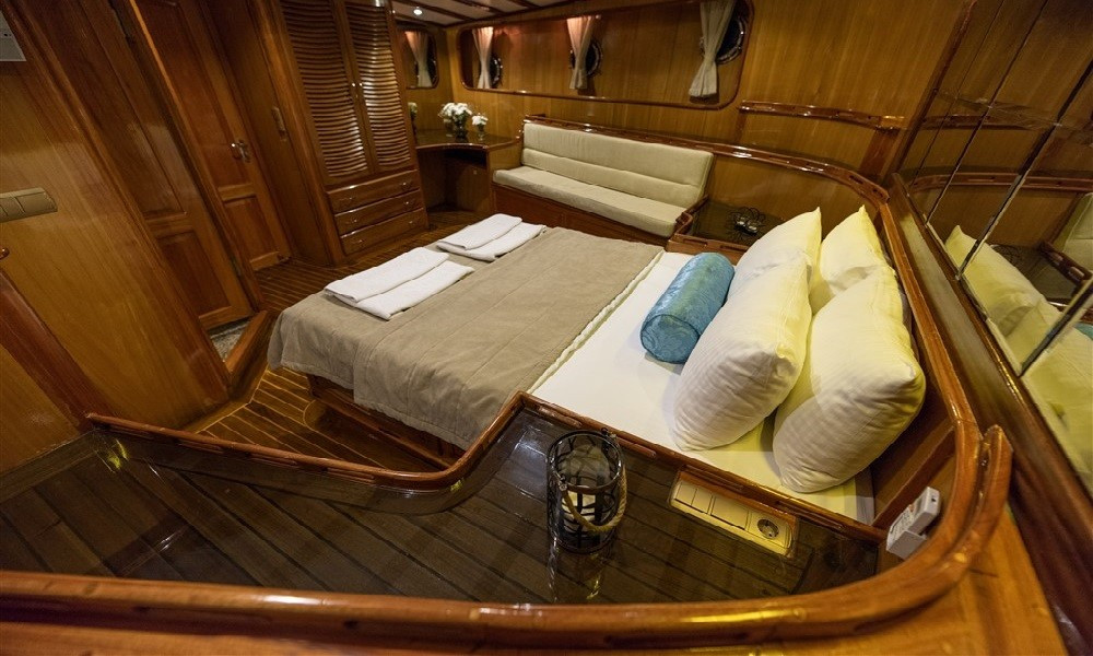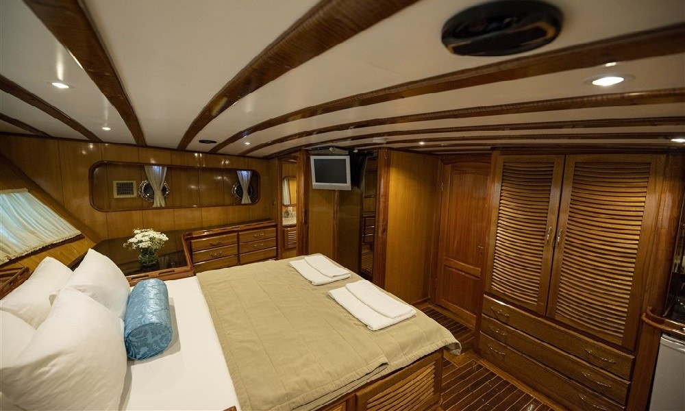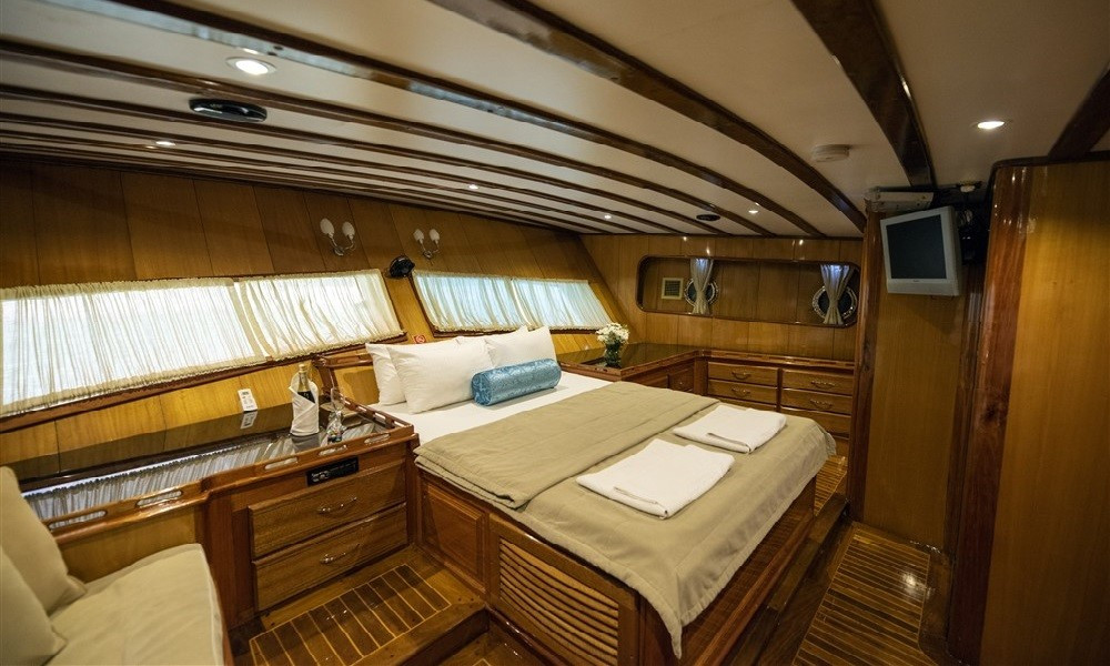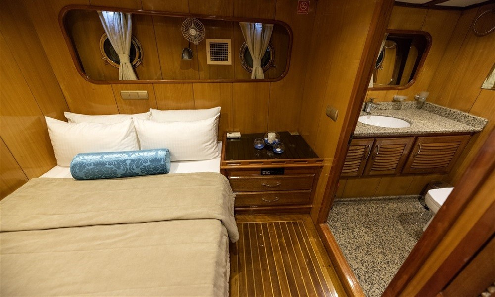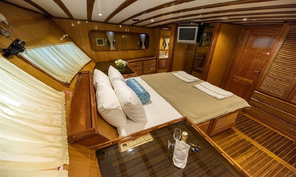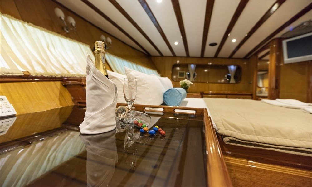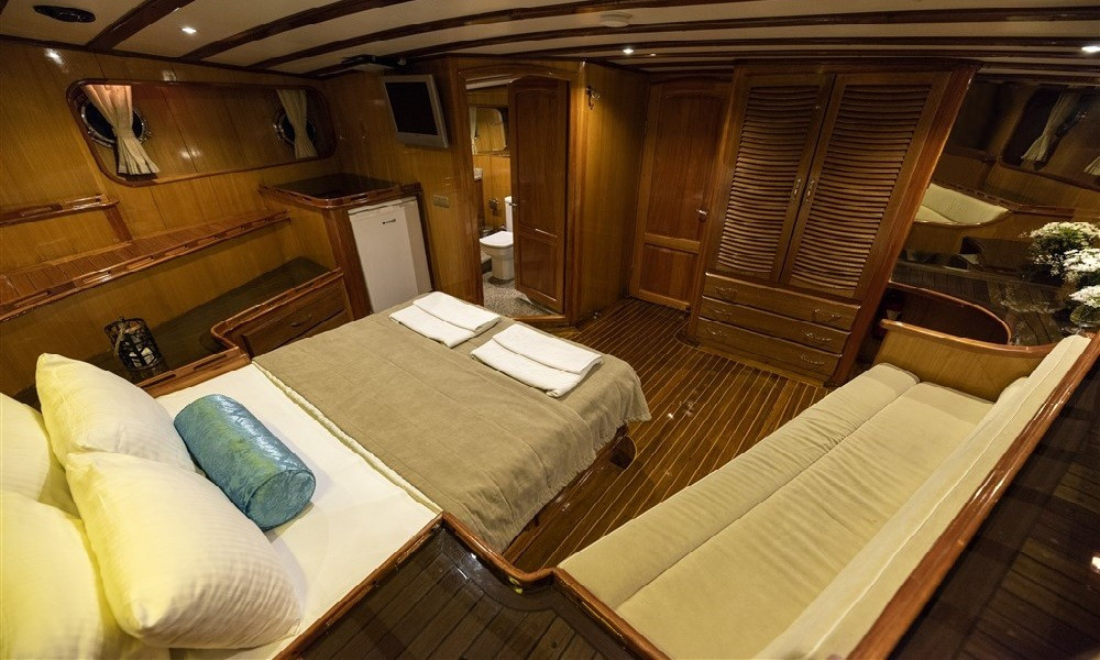 12 kişilik kapasitesi ile, size unutamayacağınız bir tatil sunan guletimizin her kabininde klima, TV, duşa kabin ve WC bulunmaktadır. Geniş güverteleri, yemek alanları, güneşlenme alanları ile konforlu bir tatil arayan misafirlerimiz için bire birdir.