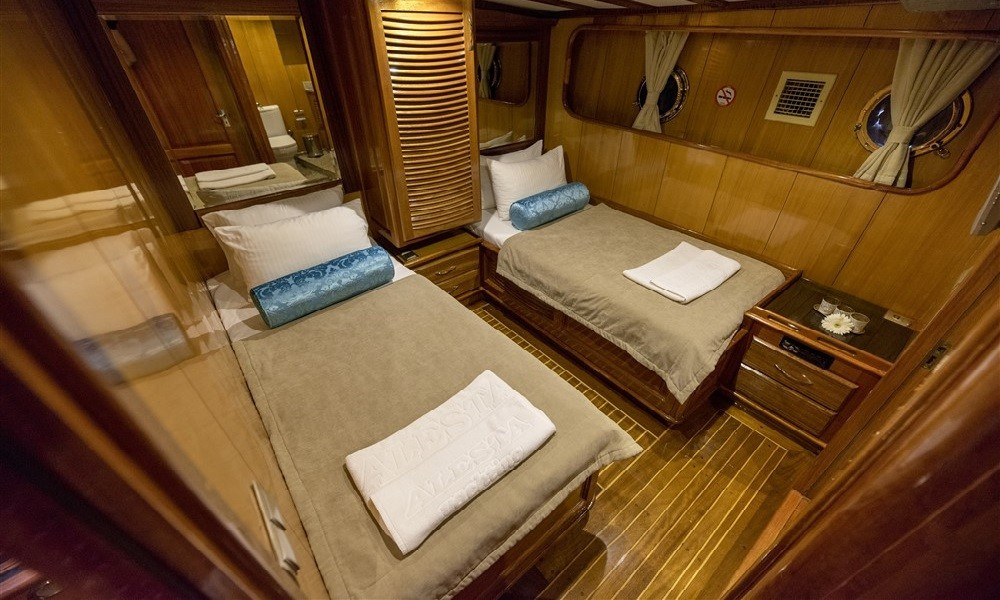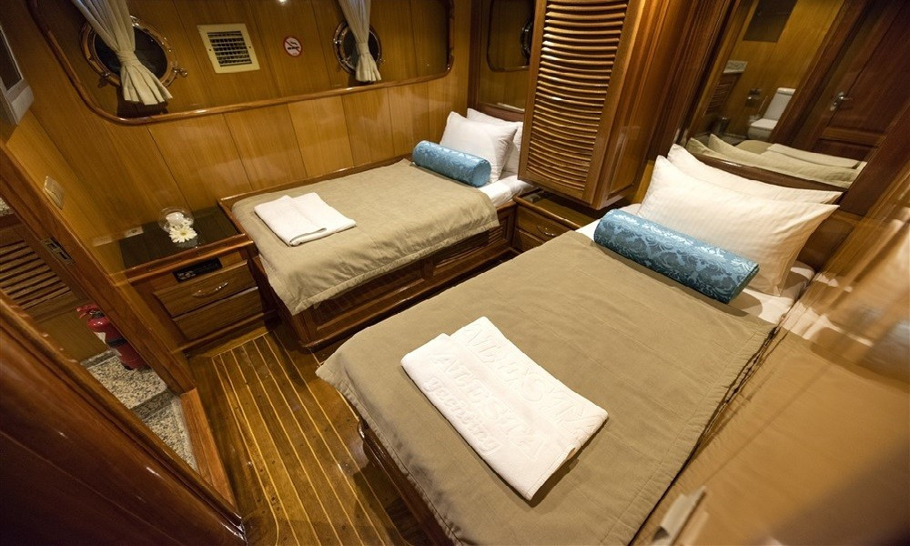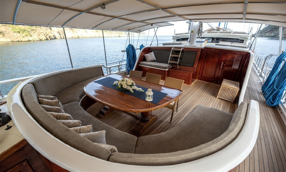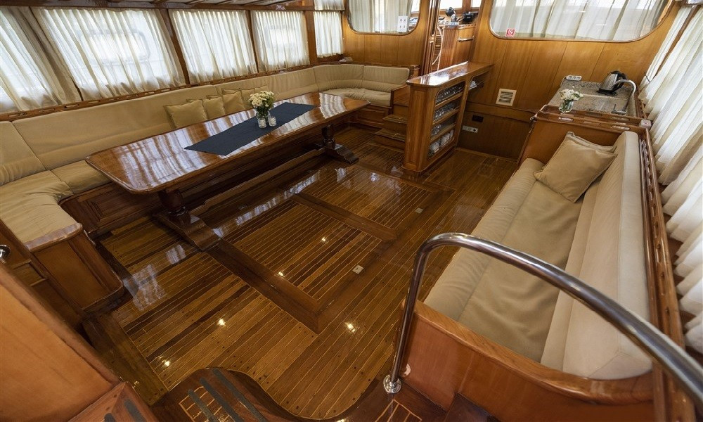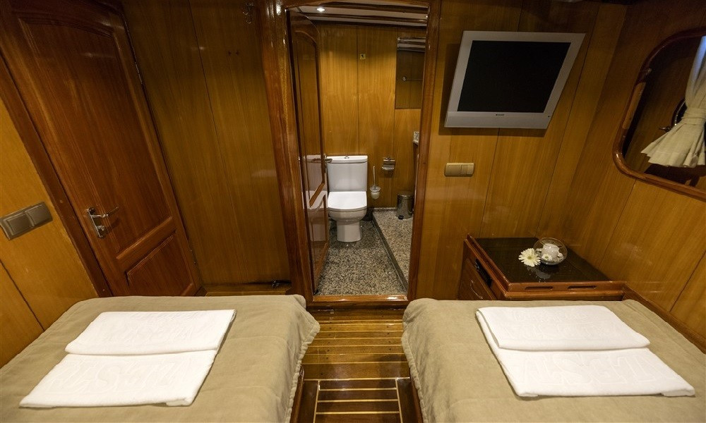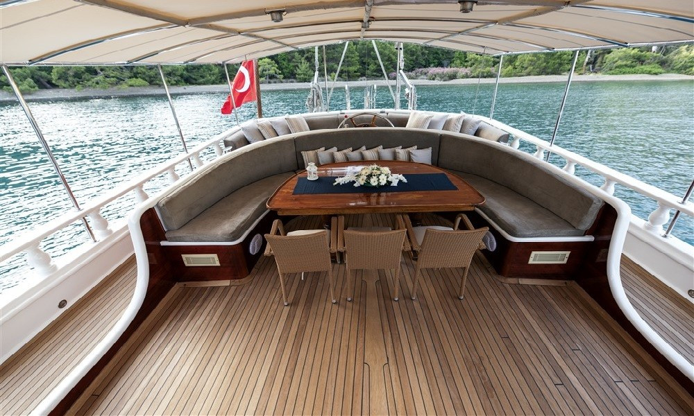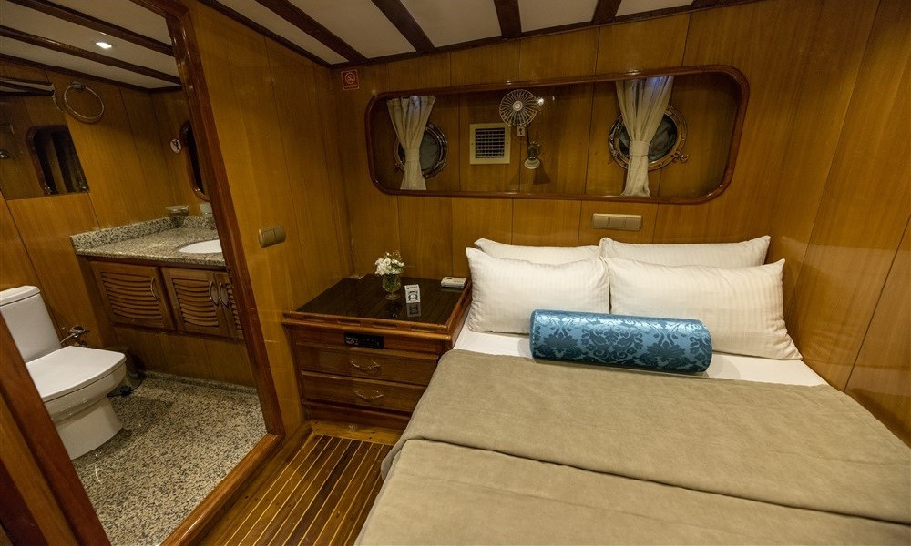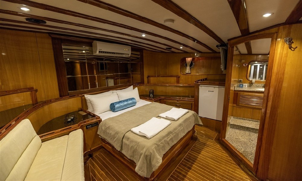 12 kişilik kapasitesi ile, size unutamayacağınız bir tatil sunan guletimizin her kabininde klima, TV, duşa kabin ve WC bulunmaktadır. Geniş güverteleri, yemek alanları, güneşlenme alanları ile konforlu bir tatil arayan misafirlerimiz için bire birdir.