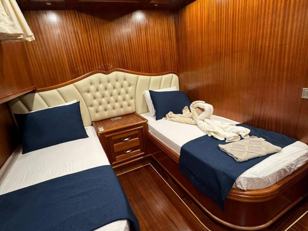 La Vie Gulet’te görev yapan 4 kişilik profesyonel mürettebat; kaptan, aşçı ve servis ekibi ile birlikte tatiliniz boyunca tüm detaylarla ilgilenir. Misafirlerin konforu, güvenliği ve memnuniyeti ön planda tutularak kusursuz bir hizmet sunulur. Böylece siz sadece denizin, güneşin ve doğanın tadını çıkarırsınız.