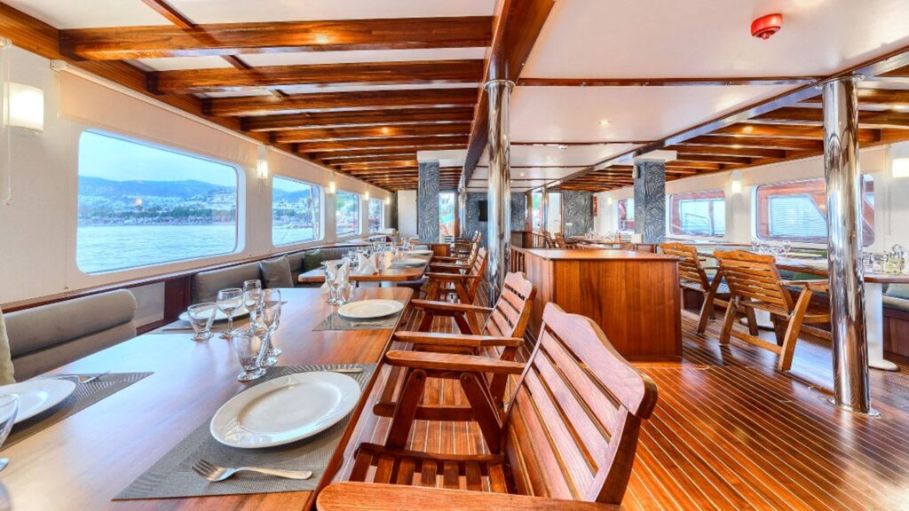 36 kişilik kapasitesi ile yüksek konfor sunan bu yat, kabinler, salon ve güverte çok zevkli bir şekilde tasarlanmıştır. 2013 yılında inşa edilmiş ve 2017 yılında tamamen yenilenmiştir. İyi donanımlı bir mutfağın yanı sıra kapalı ve açık yemek alanı vardır. 6 adet double, 2 adet twin, 8 adet triple kabin ve tüm kabinlerin kendine ait duş ve tuvaleti bulunmaktadır. Tüm kabinler klimalıdır.