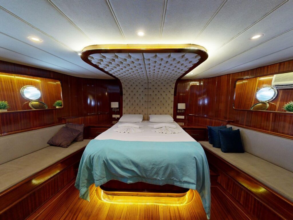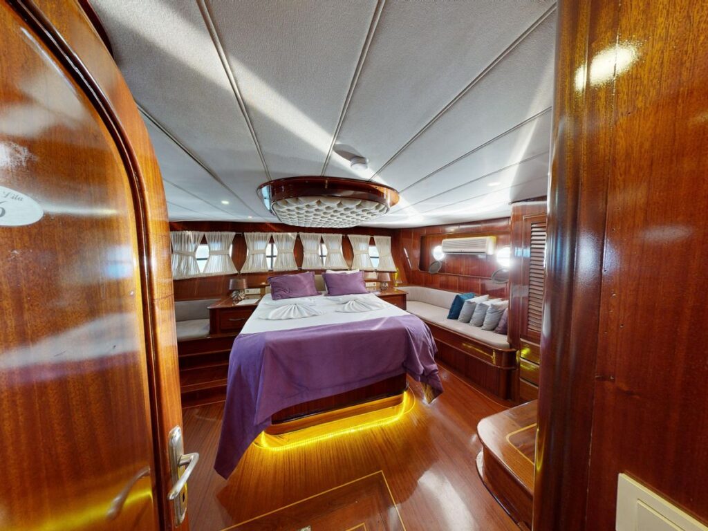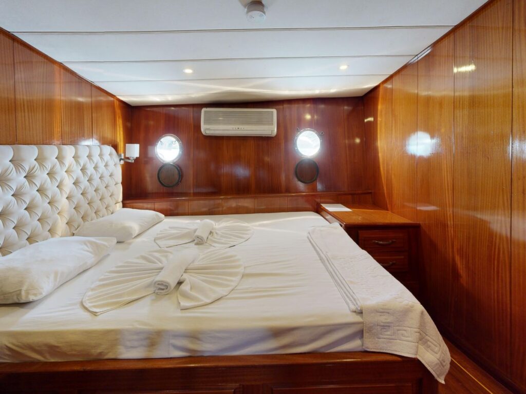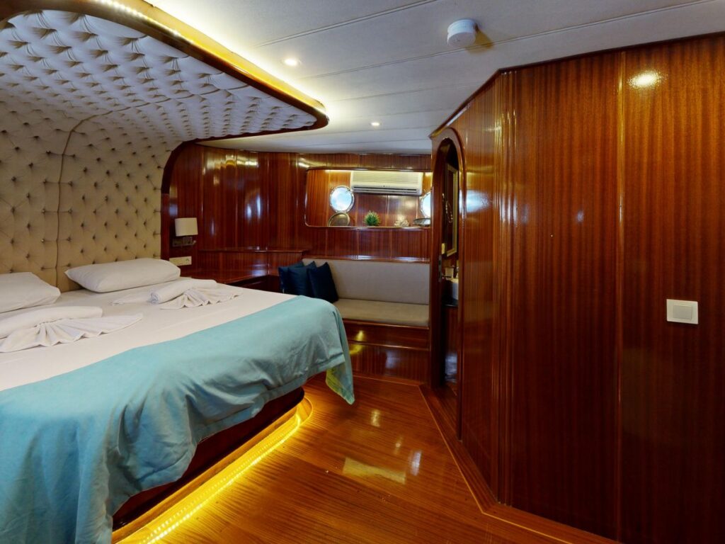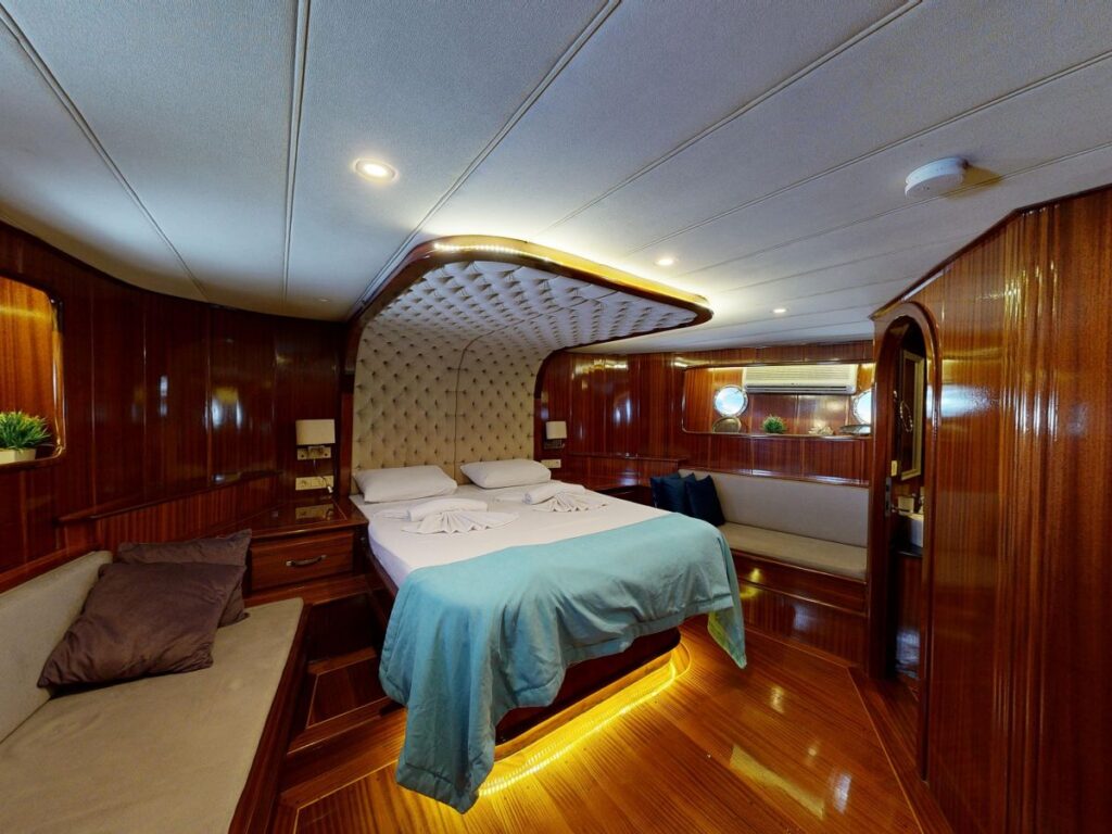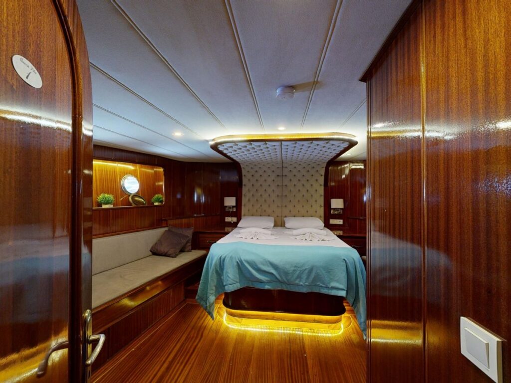 2004 yılında inşa edilmiş, 30 metre uzunluğunda, 7,20 metre genişliğinde olup, siz misafirlerin konforu düşünülerek 2016 yılında tamamen yenilenmiştir. Özenle tasarlanmış kabinler, tam donanımlı mutfaklarıyla etkileyicidir. Kabinlere girdiğinizde kendinizi evinizde hissettiren bu ultra lüks gulet, aradığınız tatili size sunabilir. 4 mürettebat eğitimli ve deneyimlidir. Salonda TV, DVD ve müzik sistemi bulunmaktadır. Güvertede geniş bir alanda yeterli güneş şiltesi de bulunmaktadır.