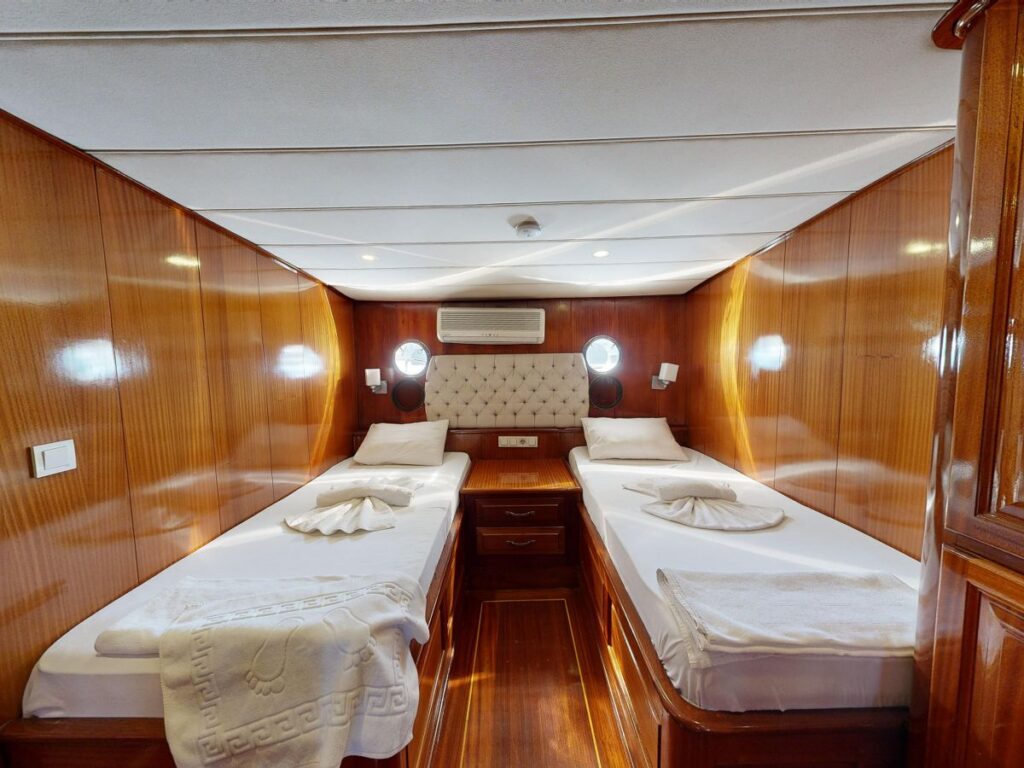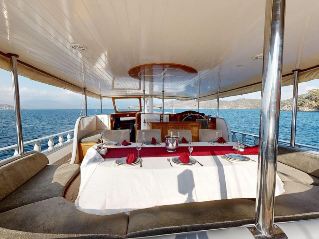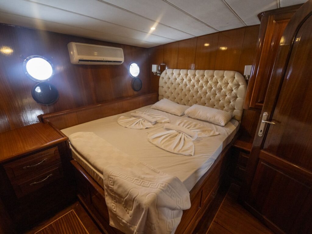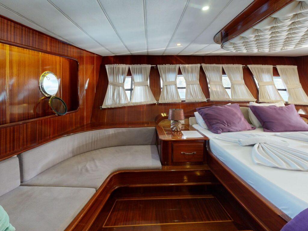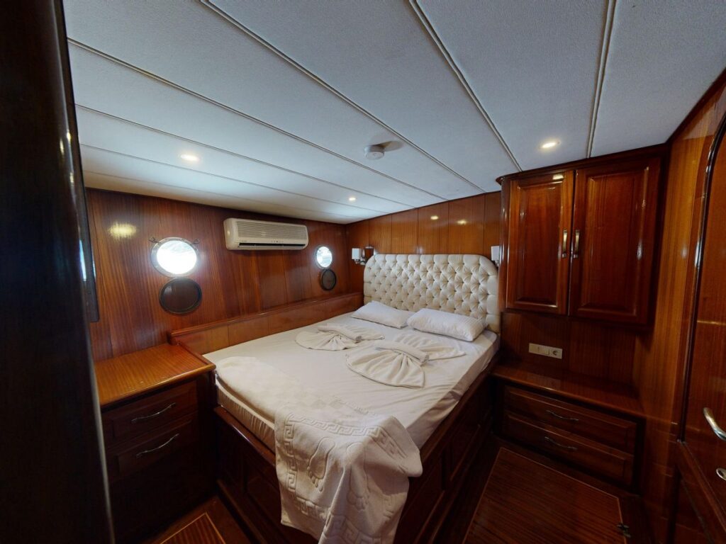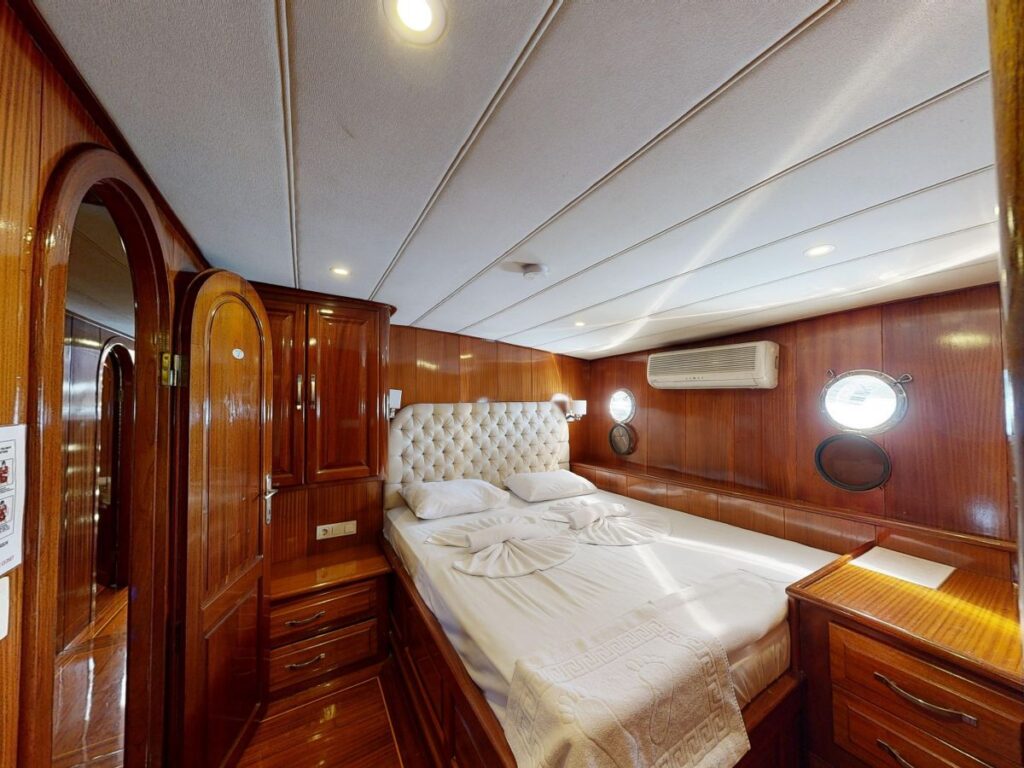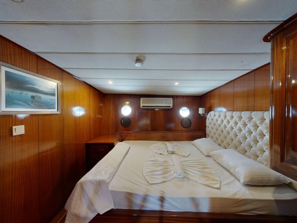 2004 yılında inşa edilmiş, 30 metre uzunluğunda, 7,20 metre genişliğinde olup, siz misafirlerin konforu düşünülerek 2016 yılında tamamen yenilenmiştir. Özenle tasarlanmış kabinler, tam donanımlı mutfaklarıyla etkileyicidir. Kabinlere girdiğinizde kendinizi evinizde hissettiren bu ultra lüks gulet, aradığınız tatili size sunabilir. 4 mürettebat eğitimli ve deneyimlidir. Salonda TV, DVD ve müzik sistemi bulunmaktadır. Güvertede geniş bir alanda yeterli güneş şiltesi de bulunmaktadır.