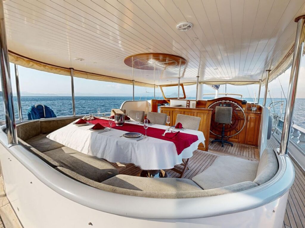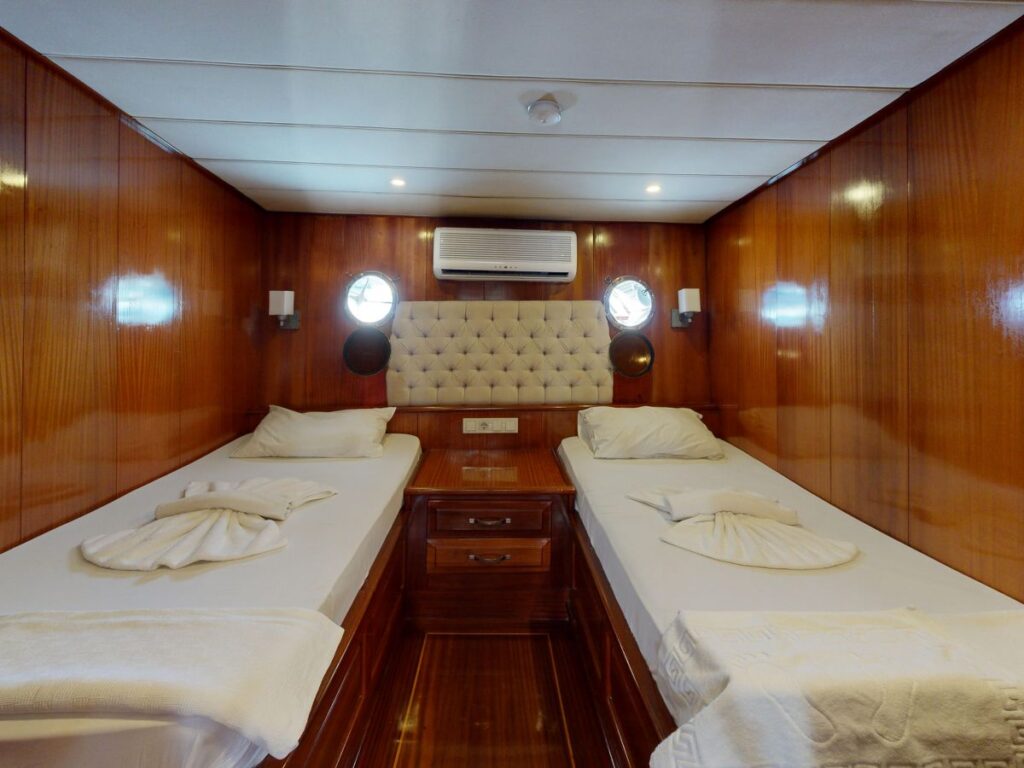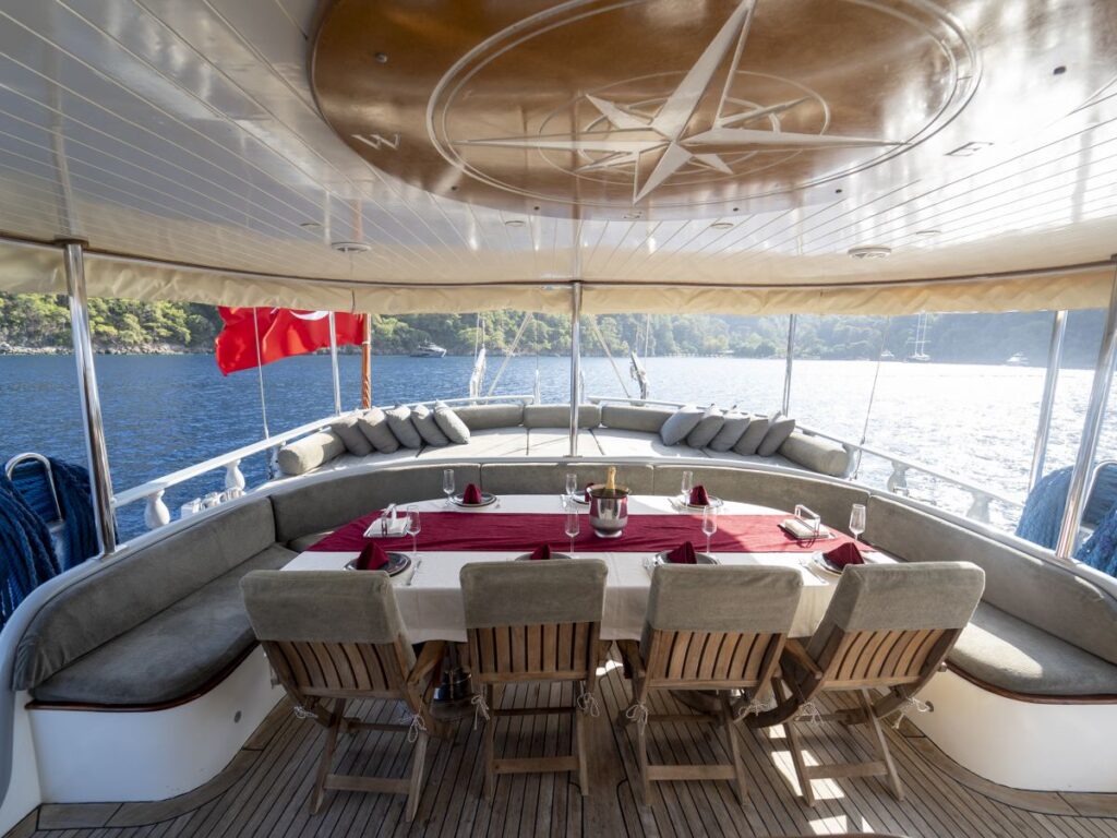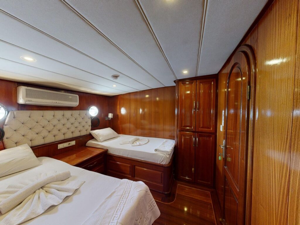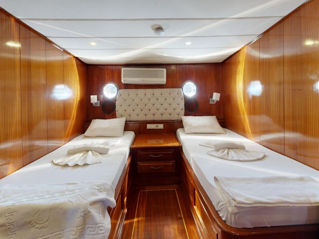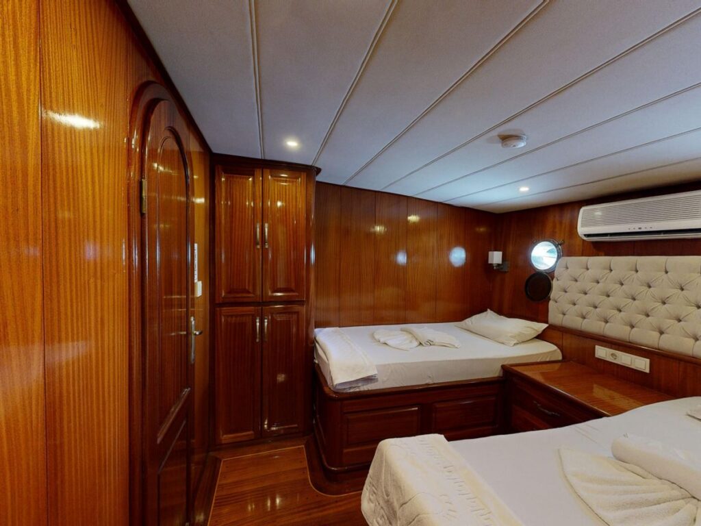 2004 yılında inşa edilmiş, 30 metre uzunluğunda, 7,20 metre genişliğinde olup, siz misafirlerin konforu düşünülerek 2016 yılında tamamen yenilenmiştir. Özenle tasarlanmış kabinler, tam donanımlı mutfaklarıyla etkileyicidir. Kabinlere girdiğinizde kendinizi evinizde hissettiren bu ultra lüks gulet, aradığınız tatili size sunabilir. 4 mürettebat eğitimli ve deneyimlidir. Salonda TV, DVD ve müzik sistemi bulunmaktadır. Güvertede geniş bir alanda yeterli güneş şiltesi de bulunmaktadır.