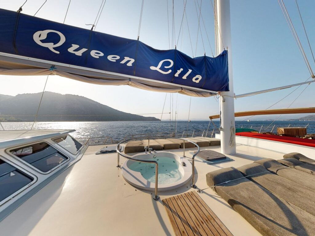 Gulet Queen Lila güvertesinde bulunan jakuzi ile lüksü ve keyfi yaşayabilirsiniz.