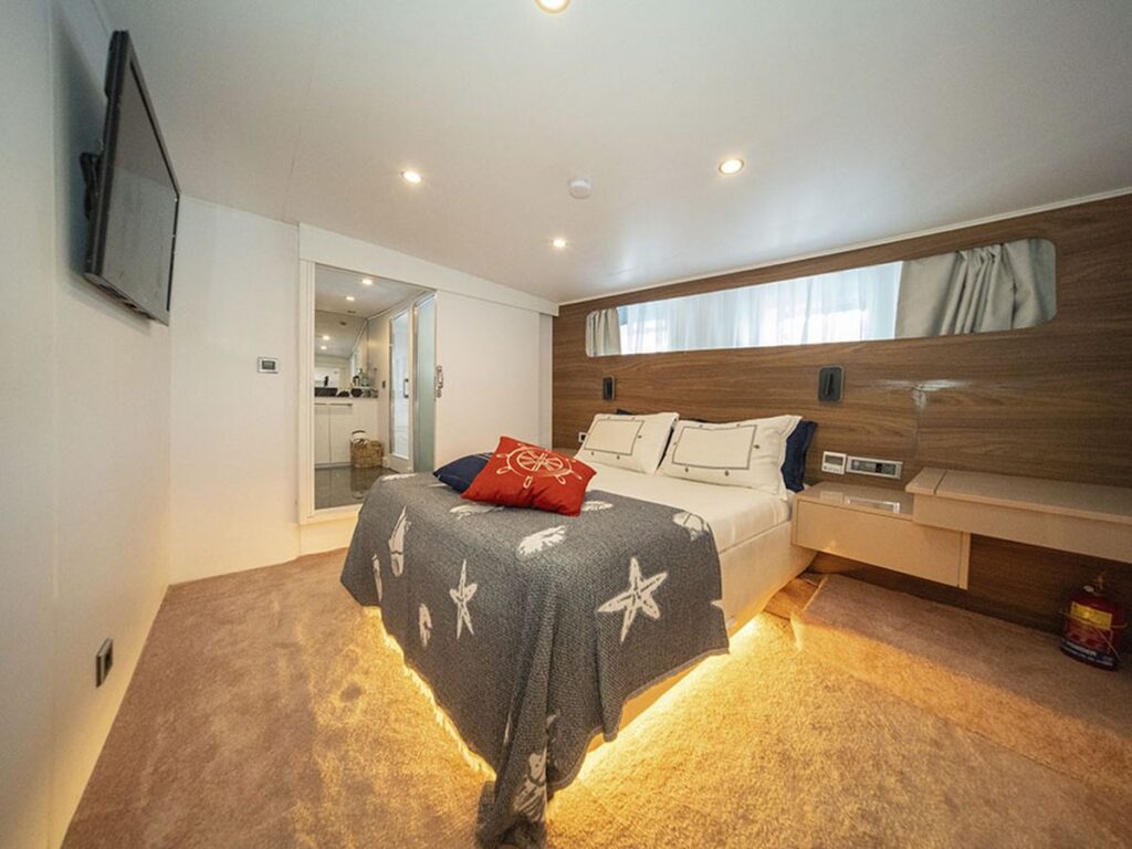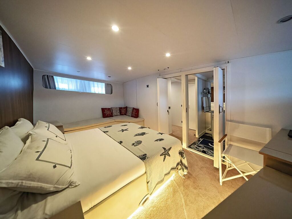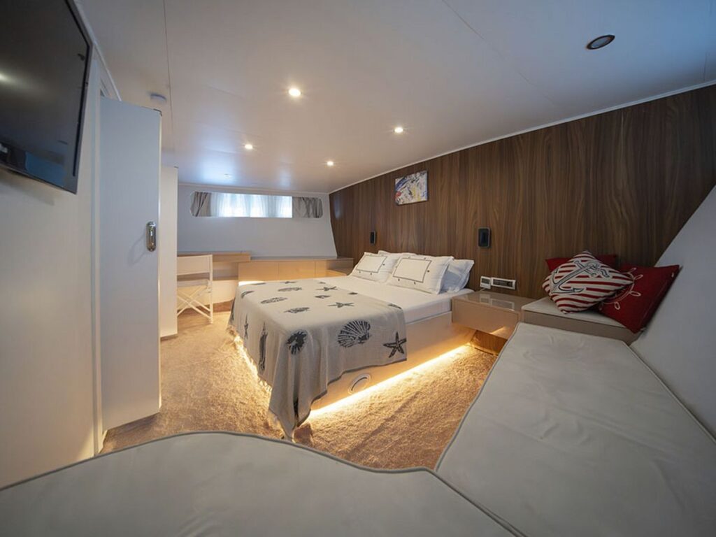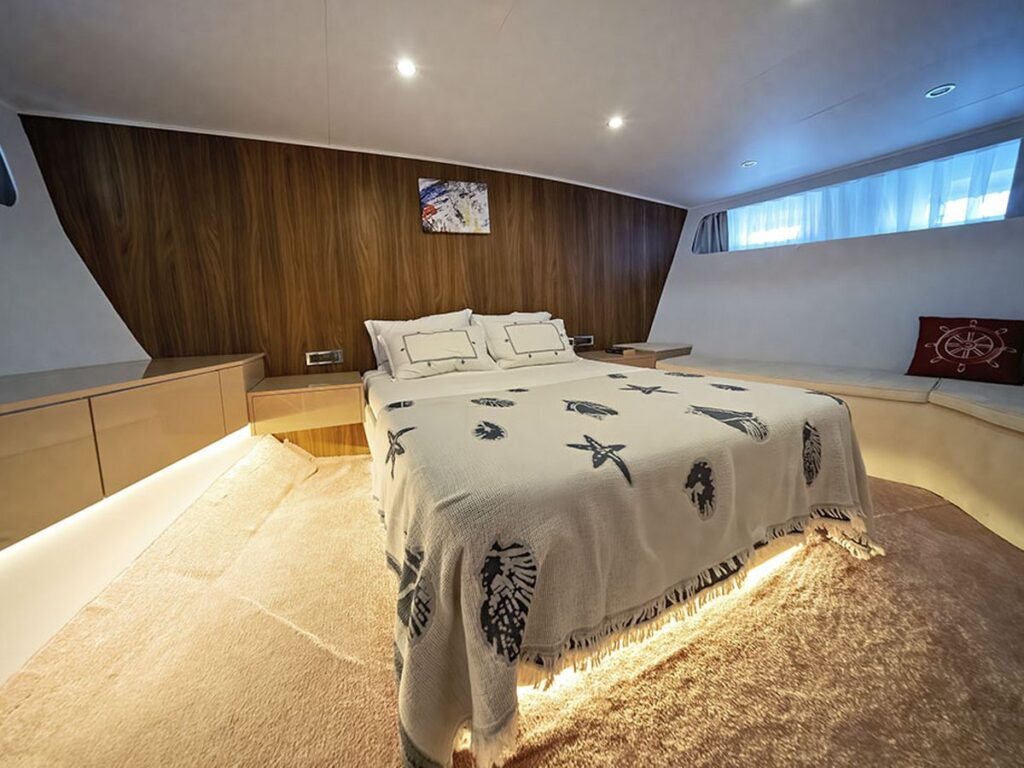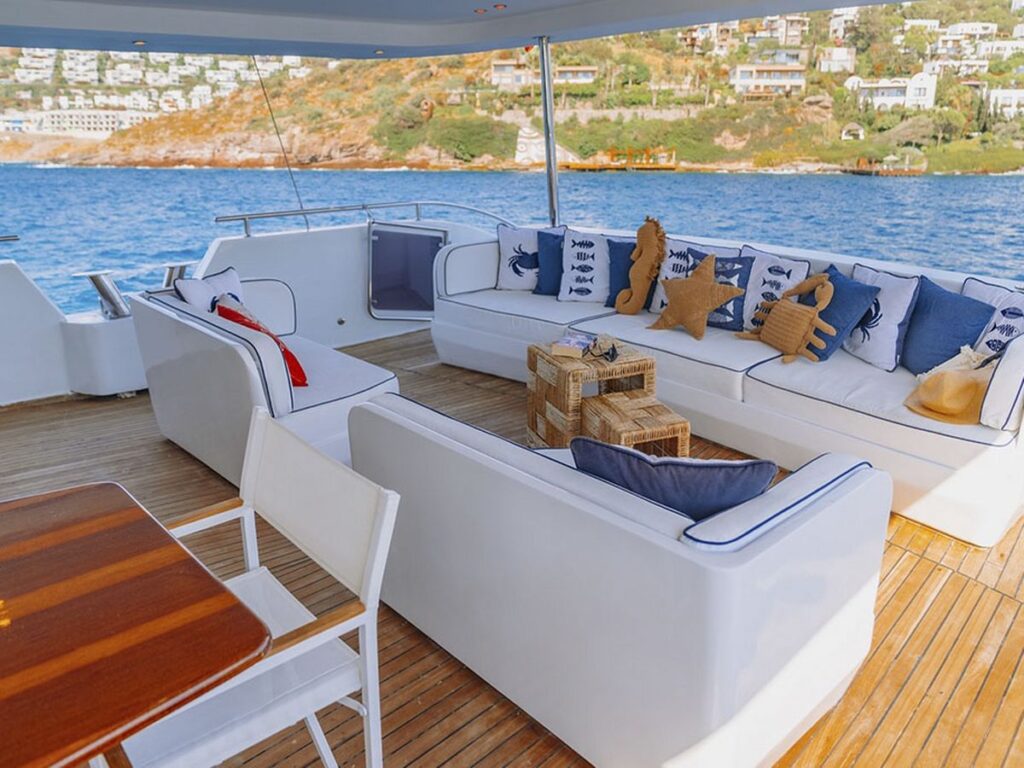 Ferah ve aydınlık kabinlerinde konfor ön plandadır. Güverteleri farklı tarzda dizayn edilmiş ve geniştir. Açık kapalı yemek alanları, yaşam alanları 7/24 klima hizmeti ile ayrıcaklı bir gulet.
