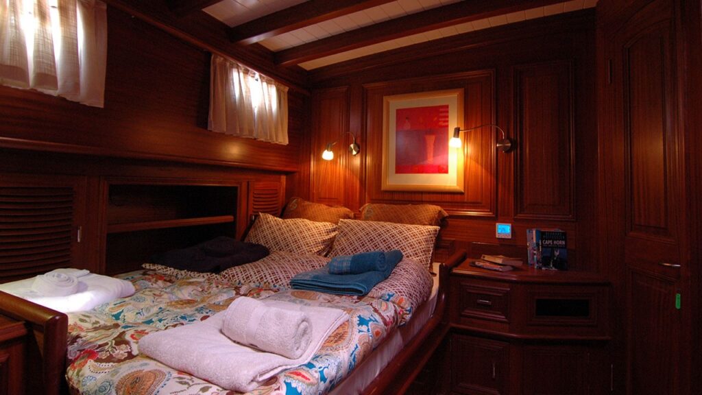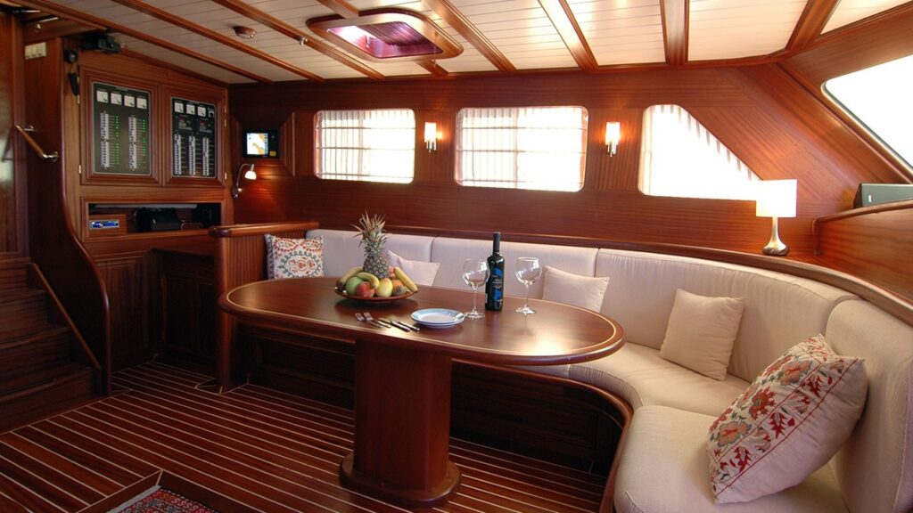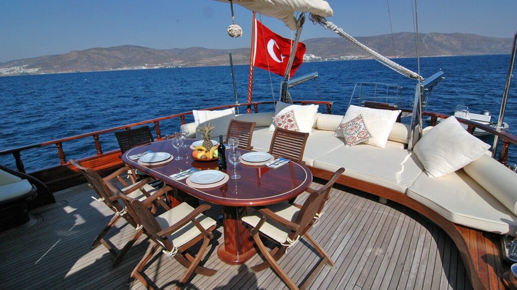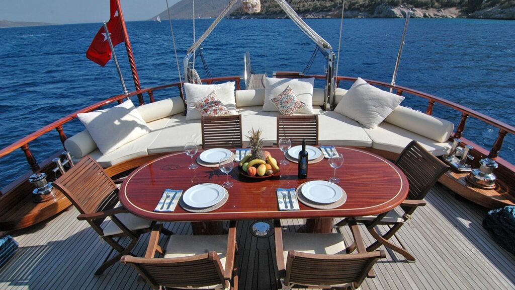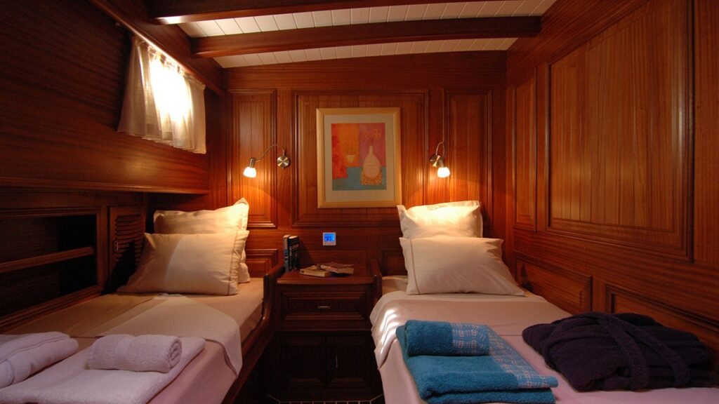 2 double, 2 twin kabini ile 8 kişilik kapasiteye sahip olan gulet, yaklaşık 28 metredir.