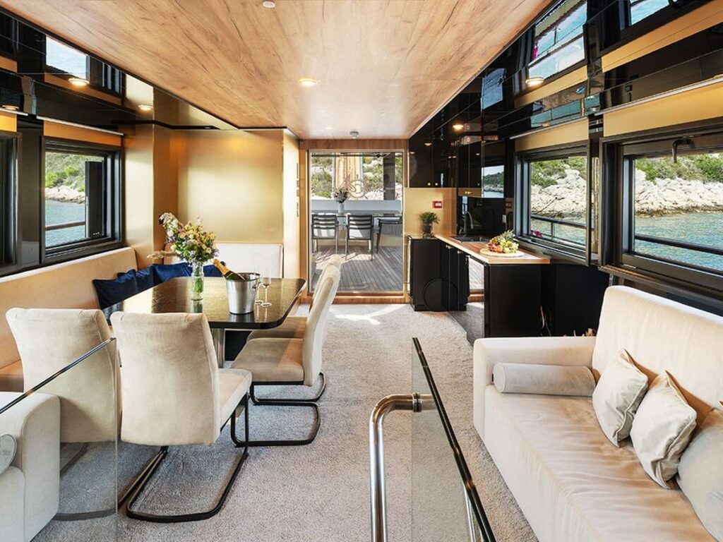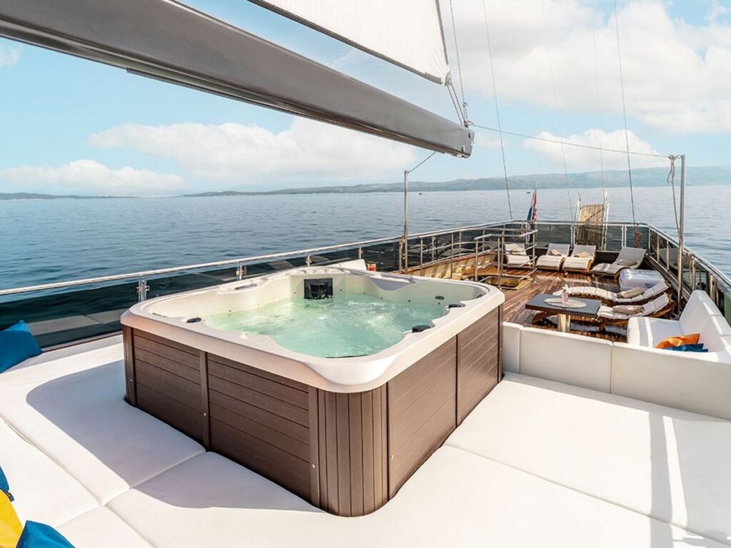 28 metrelik teknemiz 4 kabinli ve 8 kişiliktir. Hırvatistan‘ın enfes koylarının tadını çıkartmak için bire bir. Müthiş güverteler, klasik -modern kabinler, etkileyici bir salon. Flybridge tam bir keyif alanı. Güneşlenmek, manzaranın ve güneşin tadını çıkatmak, jakuzi de vakit geçirmek…