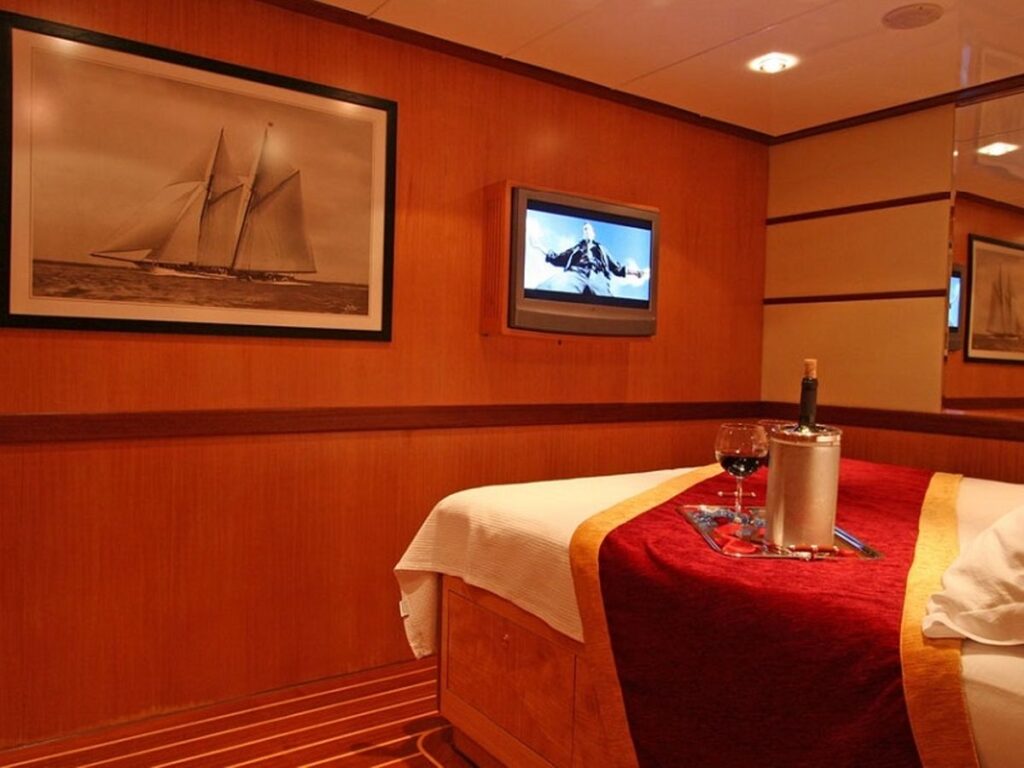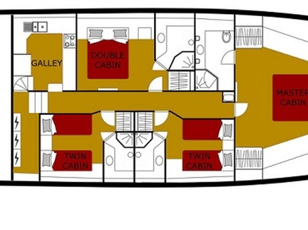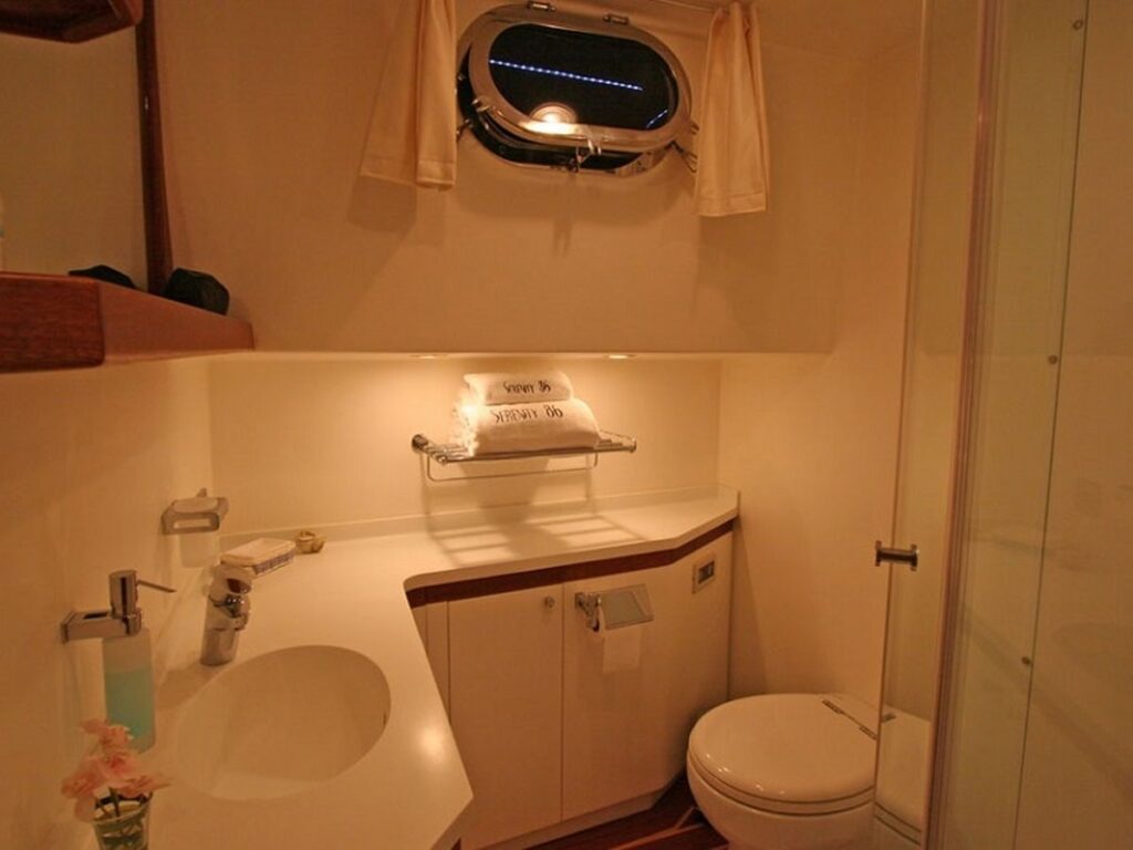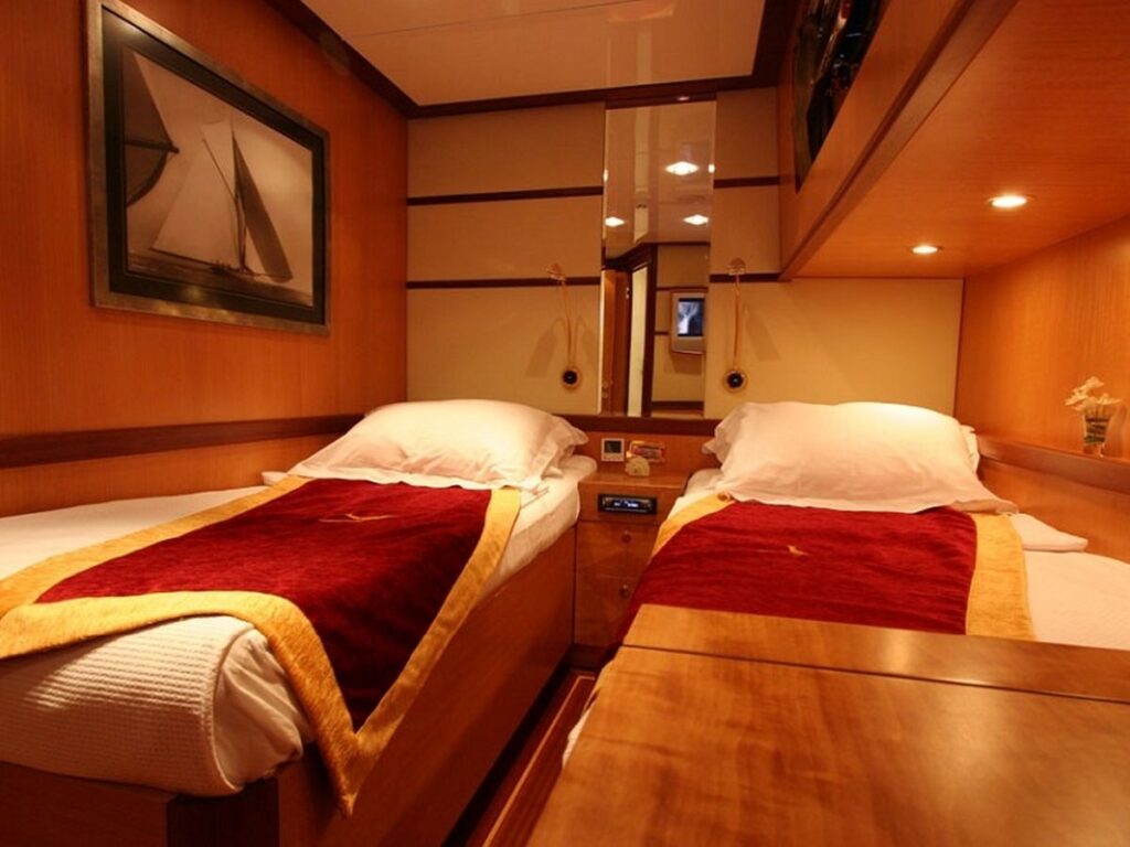 Modern ve ferah kabinler, salon ve güverte misafirlerin konforu için özel olarak tasarlanmıştır. 1 Master, 1 VIP, 2 Twin kabinleri ile 8 kişiye kadar konaklama imkanı sunmaktadır. Tüm kabinlerde özel duş ve tuvalet vardır ve tüm kabinler klimalıdır. Tam donanımlı, güzel ve konforlu bir mutfak, kapalı ve açık yemek alanı ve klimalı bir salon bulunmaktadır. Salonda ve tüm kabinlerde TV, DVD, müzik sistemi bulunmaktadır. Ön güvertede geniş bir alanda şezlonglar mevcuttur.