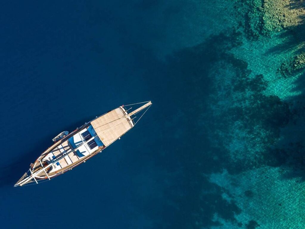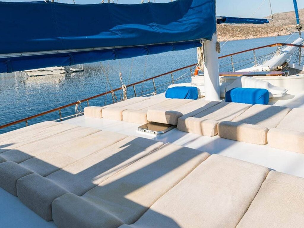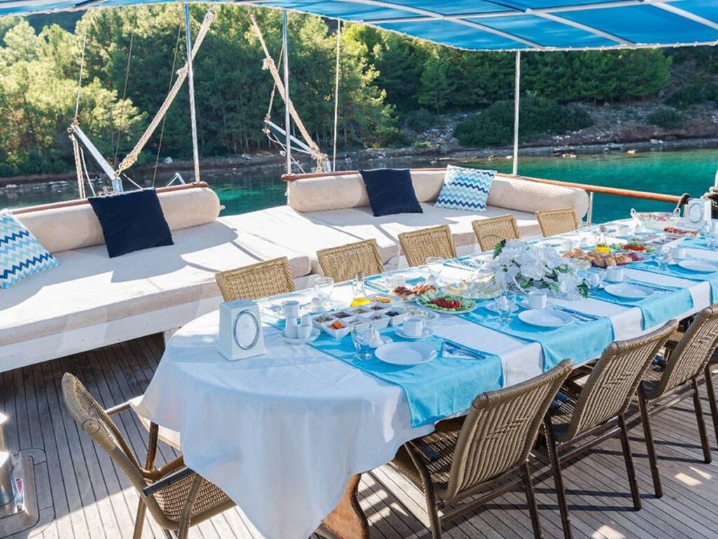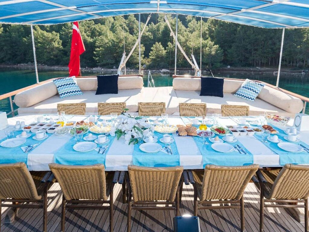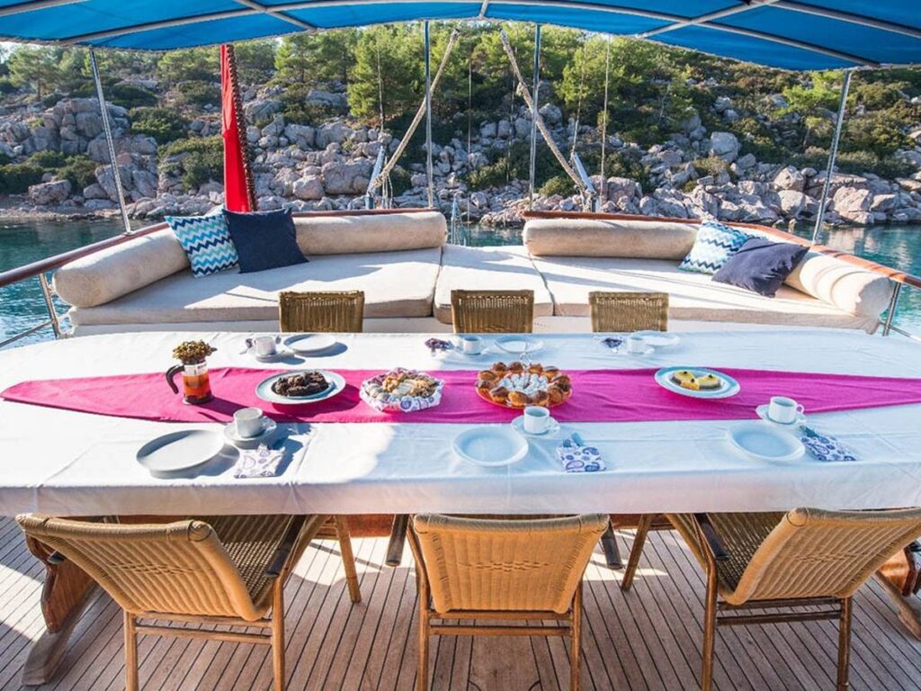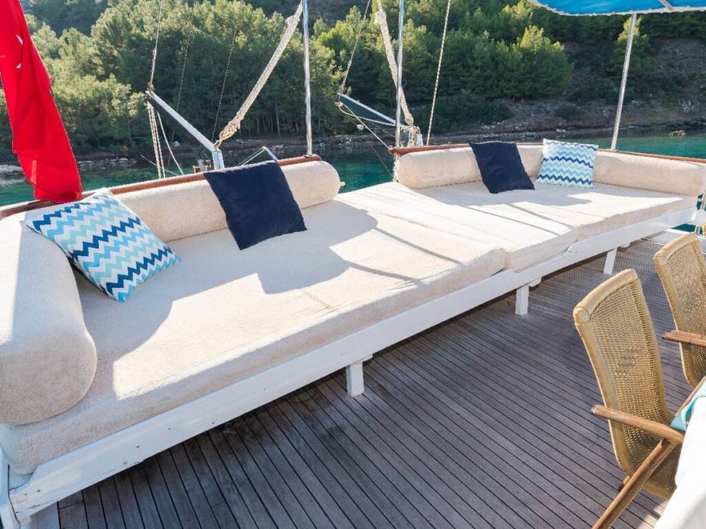 Türk Karasularında internet erişimi de bulunan Seven 1 gulet, 4 mürettebatı ile sizi bekliyor.