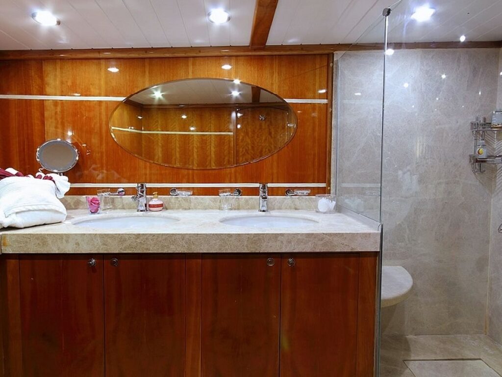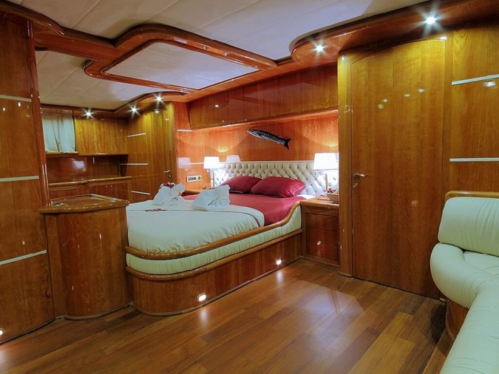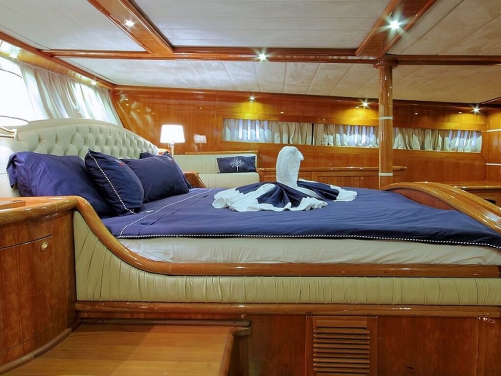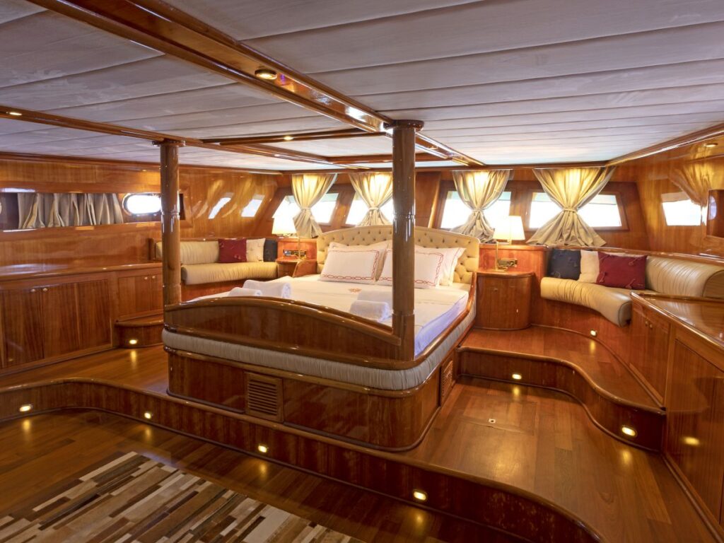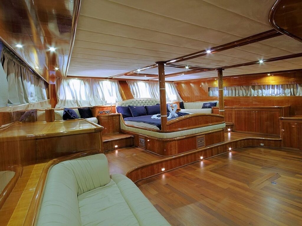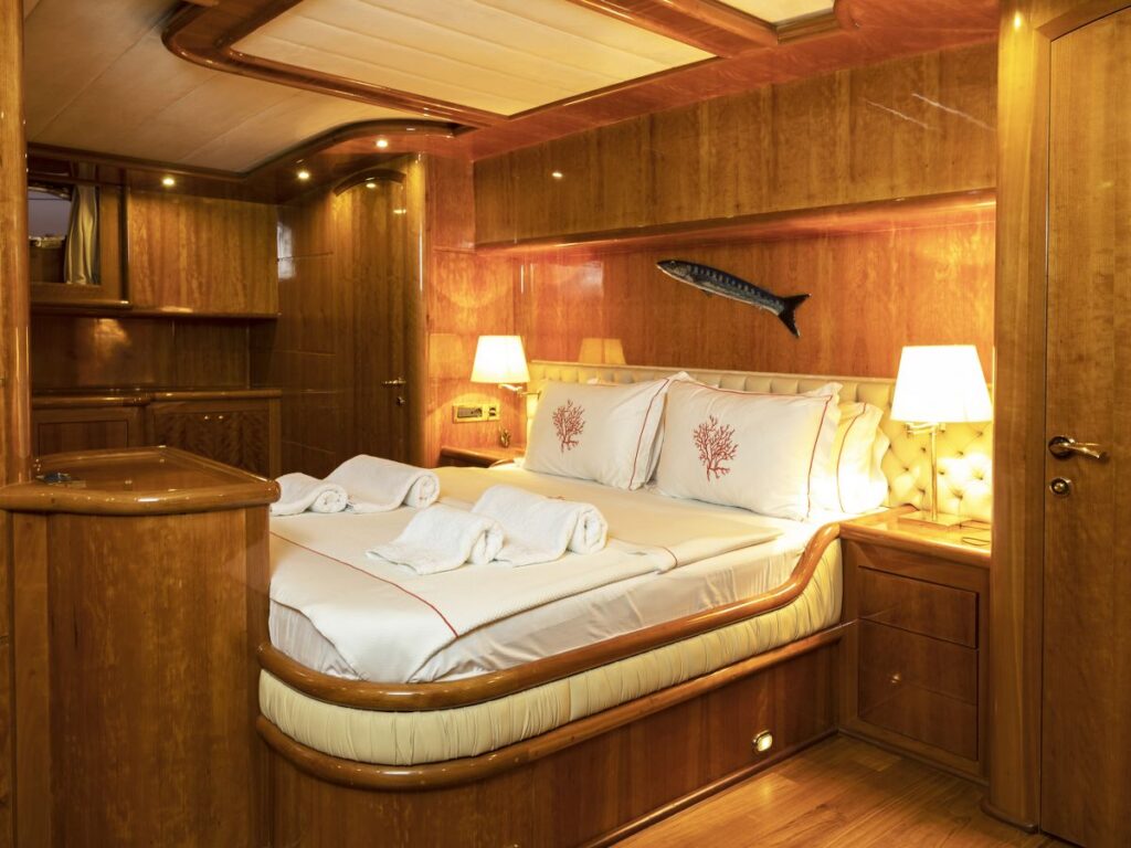 Tüm kabinler ve tüm yat, her kabinde özel duş ve tuvalet imkanı ile sıcak yaz günlerinde konforlu bir konaklama için klima ile donatılmıştır. Tüm kabinlerde TV, DVD ve müzik sistemi vardır. 5 deneyimli ekibi ile mavi yolculuğunuz sırasında en iyi hizmeti alacağınız bu muhteşem teknede lüksü yaşayacaksınız. Silver Moon Gulet’in iç tasarımı da oldukça şıktır. Salonda ve güvertede yemek masalarında göz alıcı sofralar kurulurken siz de farklı lezzetlerin tadını çıkarıyorsunuz. Salonda TV, DVD ve müzik sistemi bulunmaktadır. Yemekleriniz tam teşekküllü ayrı bir mutfakta sizin için hazırlanırken, tüm misafirlerimiz için yeterli güneşlenme alanları ve minderlerde güneşin tadını çıkarabilirsiniz.