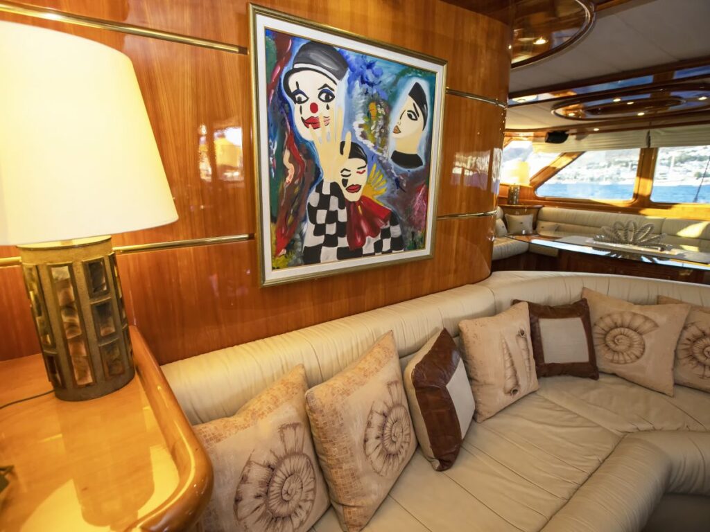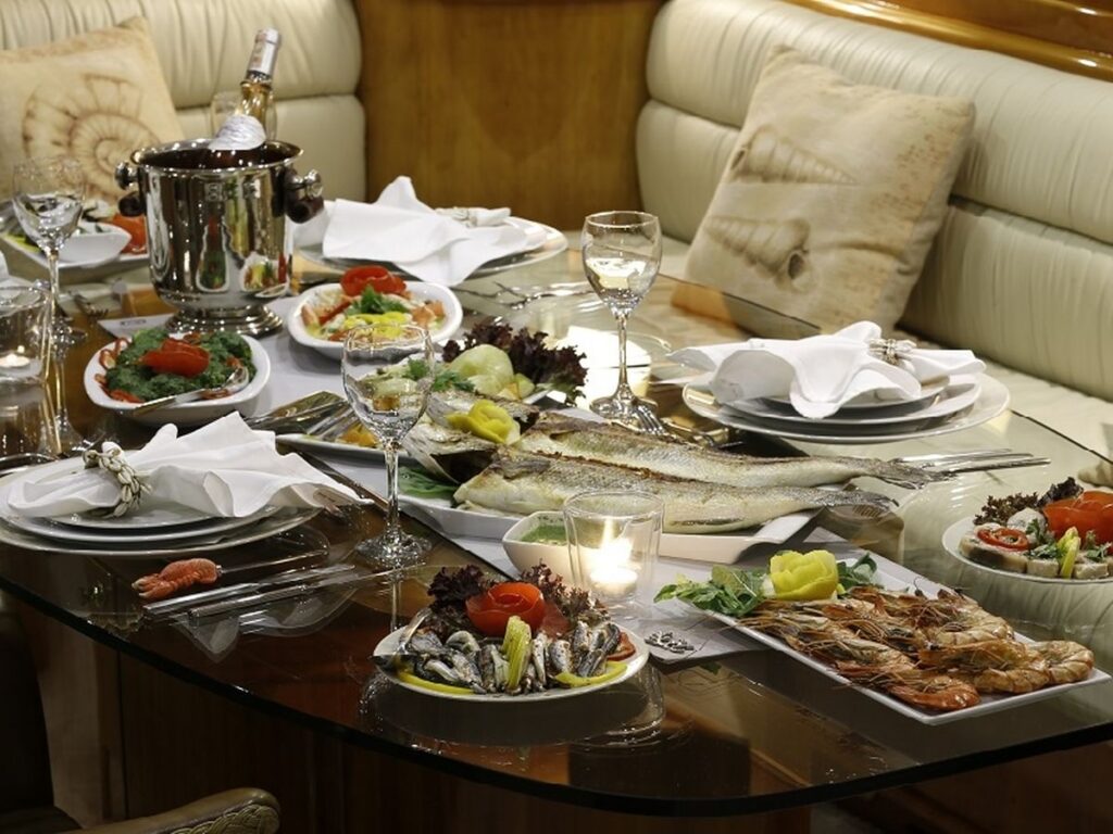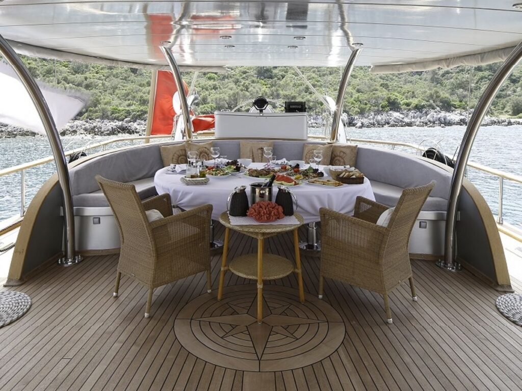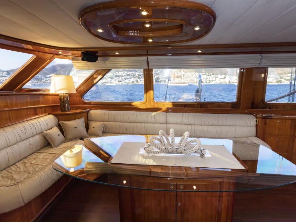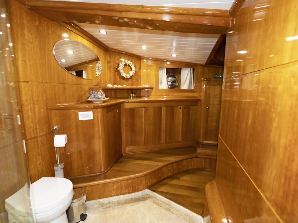 Tüm kabinler ve tüm yat, her kabinde özel duş ve tuvalet imkanı ile sıcak yaz günlerinde konforlu bir konaklama için klima ile donatılmıştır. Tüm kabinlerde TV, DVD ve müzik sistemi vardır. 5 deneyimli ekibi ile mavi yolculuğunuz sırasında en iyi hizmeti alacağınız bu muhteşem teknede lüksü yaşayacaksınız. Silver Moon Gulet’in iç tasarımı da oldukça şıktır. Salonda ve güvertede yemek masalarında göz alıcı sofralar kurulurken siz de farklı lezzetlerin tadını çıkarıyorsunuz. Salonda TV, DVD ve müzik sistemi bulunmaktadır. Yemekleriniz tam teşekküllü ayrı bir mutfakta sizin için hazırlanırken, tüm misafirlerimiz için yeterli güneşlenme alanları ve minderlerde güneşin tadını çıkarabilirsiniz.