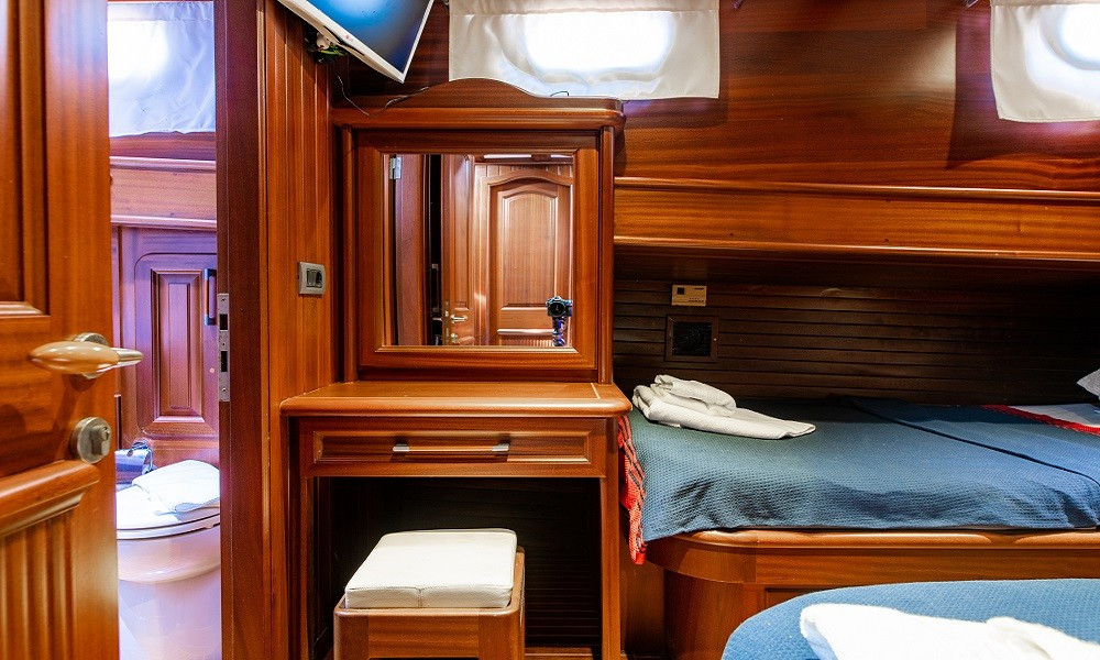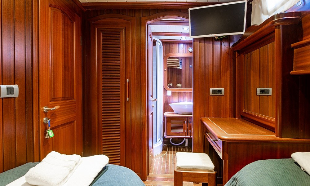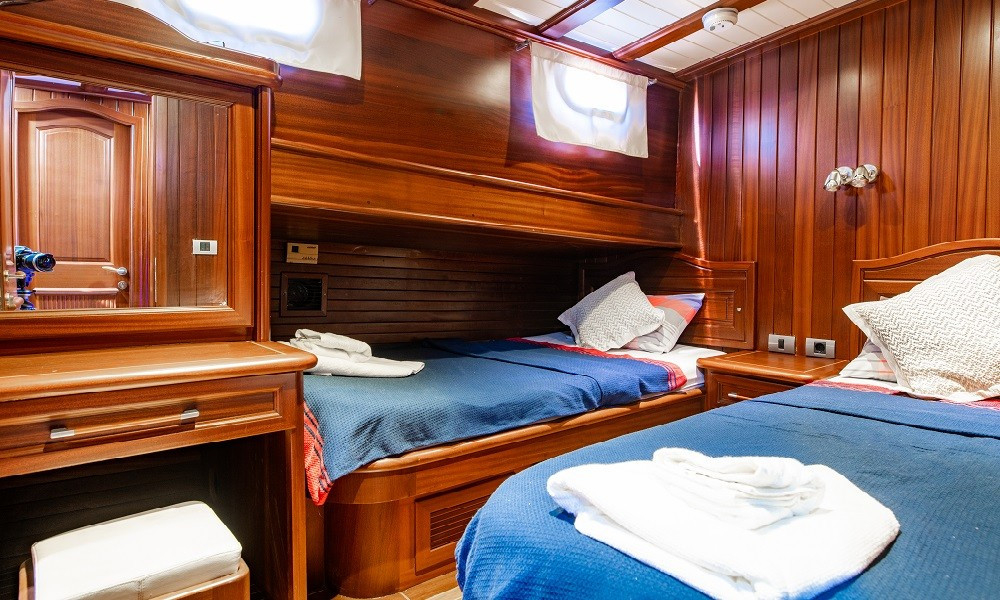 24 metrelik teknemizin tüm kabinleri ve salonu klimalıdır. Ön ve arka güvertesi oldukça kullanışlıdır. Açık-kapalı yemek alanları, ferah ve konforlu kabinleri, iyi bir mutfağı bulunmaktadır.