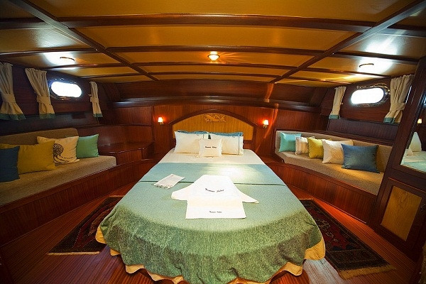 1 master, 3 double, 1 twin olmak üzere 5 kabini ile 10 kişilik kapasitededir. Ahşabın o en doğal halini hissedeceğiniz teknemizde oldukça geniş bir alana yayılan güneşlenme alanları mevcuttur. Salonda ve arka güvertede yemek masaları bulunan teknedeki tüm kabinler klimalıdır. Lüks gulet farkını yaşamak ve konforlu bir tatil arıyorsanız Yasemin Sultan 1, size iyi gelecek.