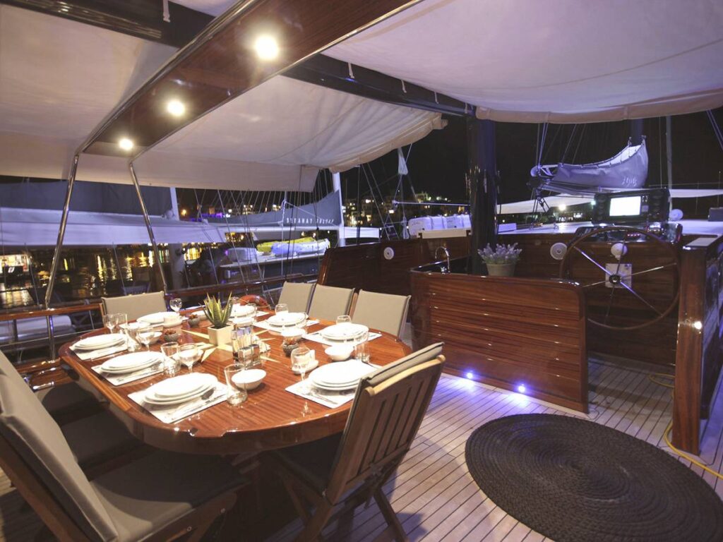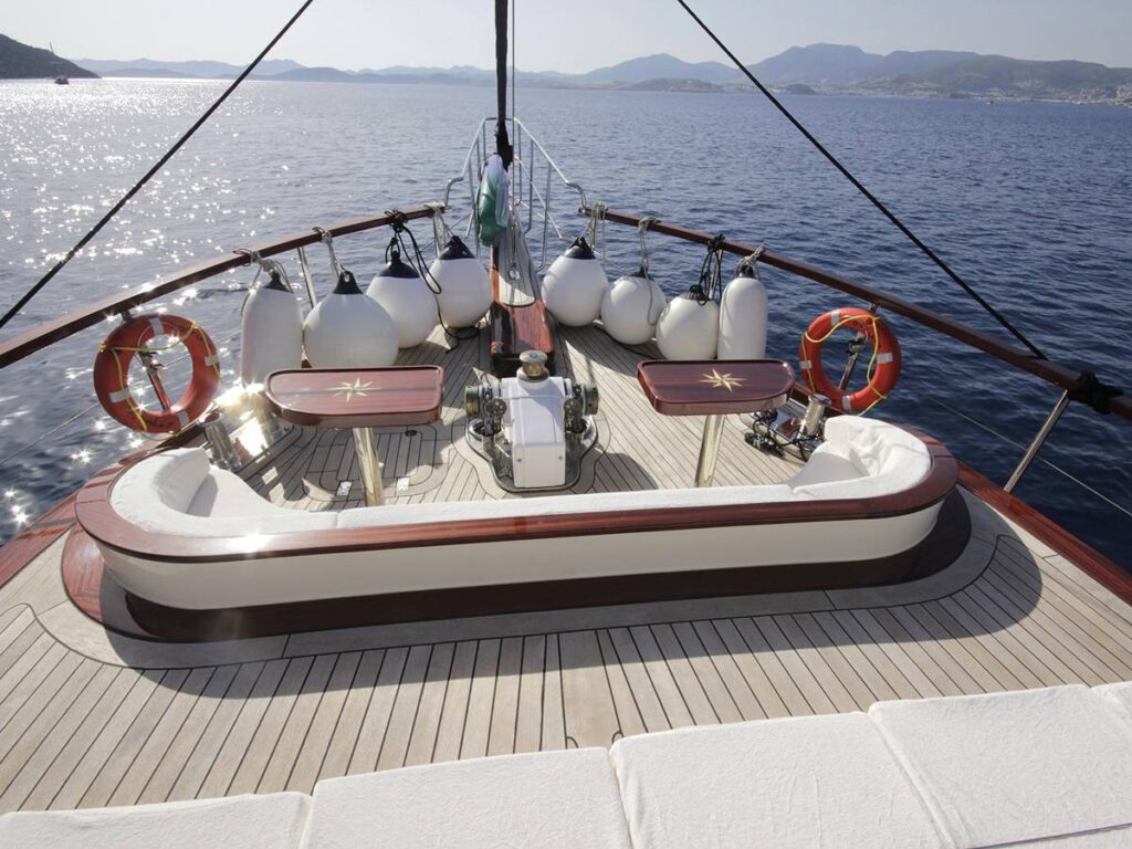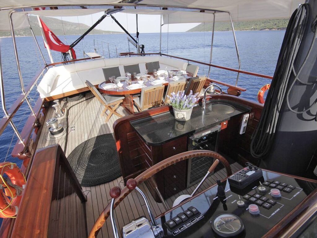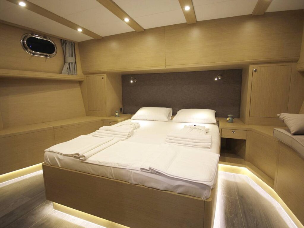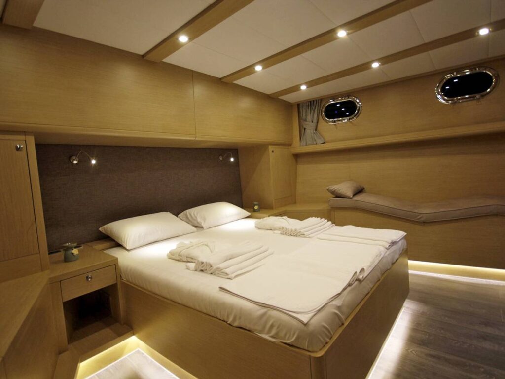 5 kabini ile 12 kişilik kapasiteye sahip olan gulet, 7 metrelik genişliği ile oldukça rahat yaşam alanlarına sahiptir.