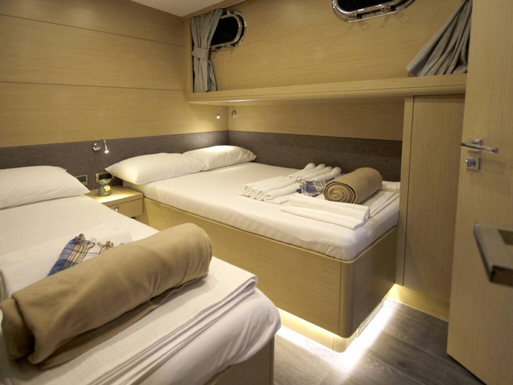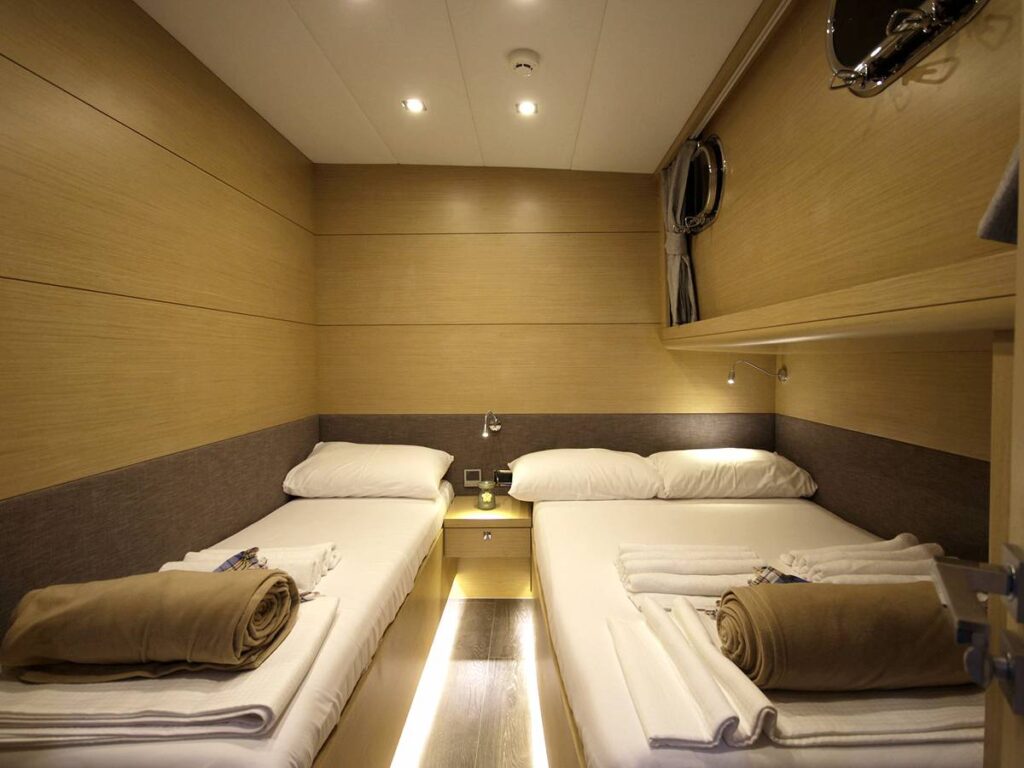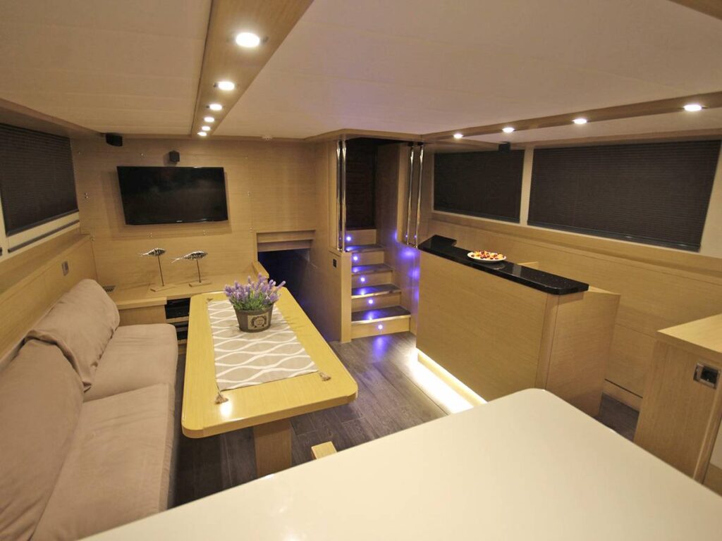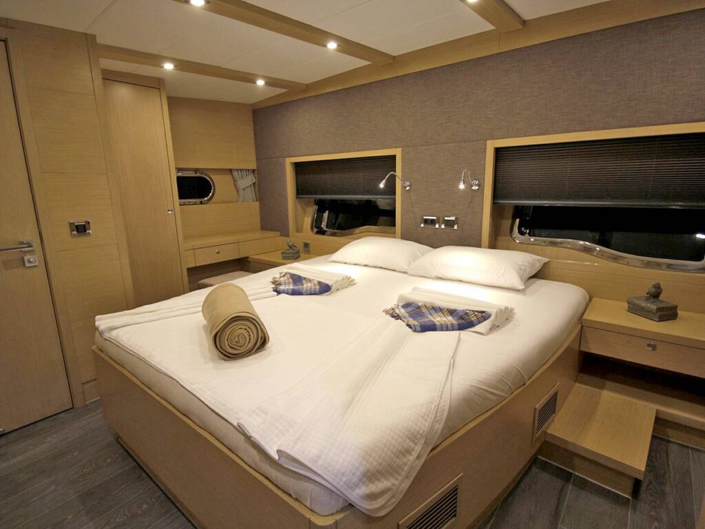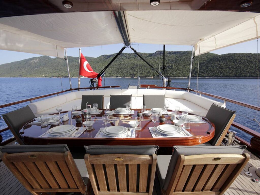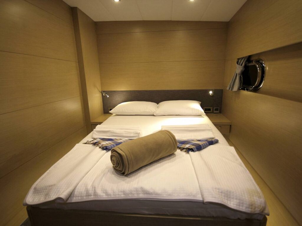 5 kabini ile 12 kişilik kapasiteye sahip olan gulet, 7 metrelik genişliği ile oldukça rahat yaşam alanlarına sahiptir.