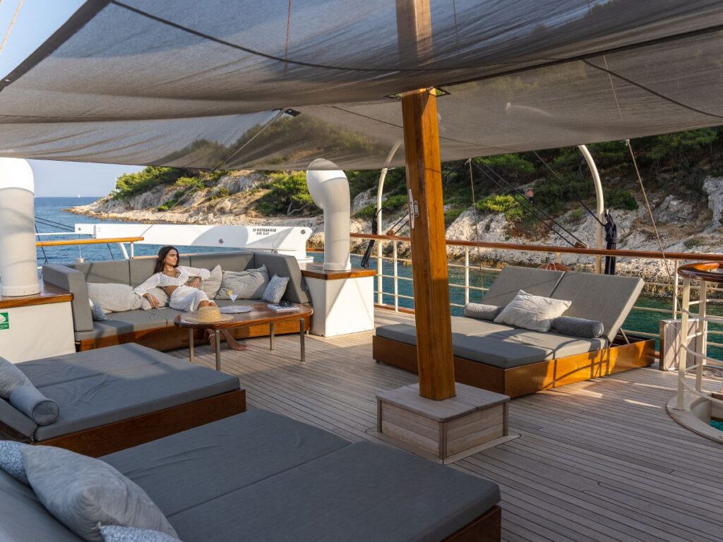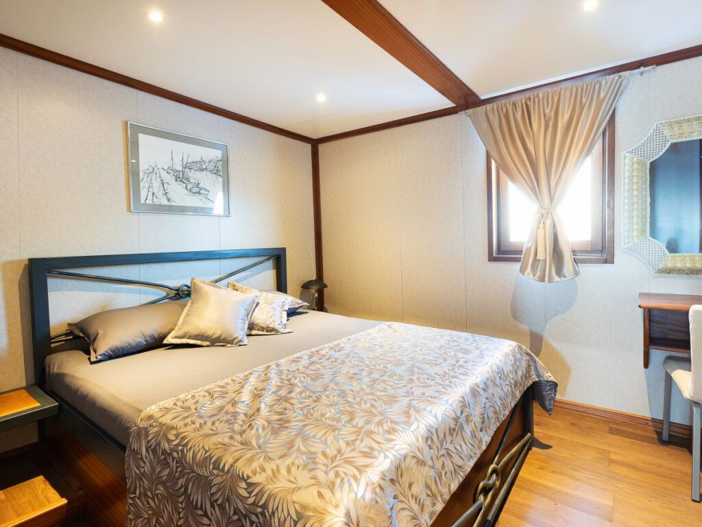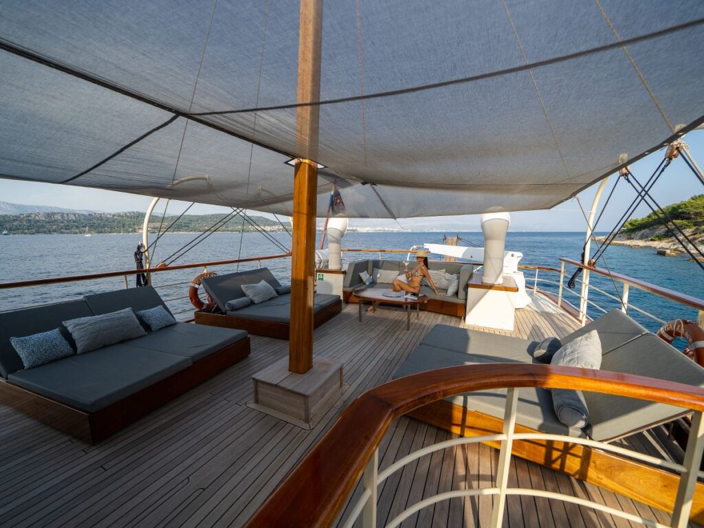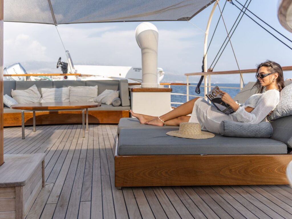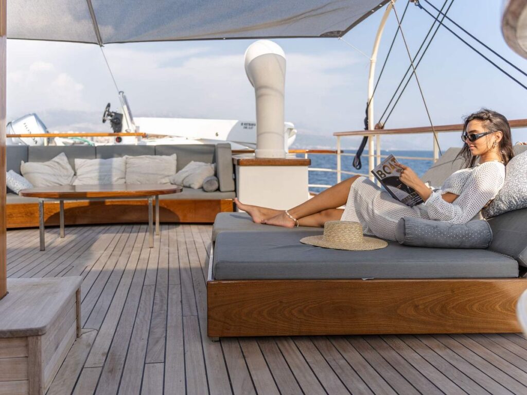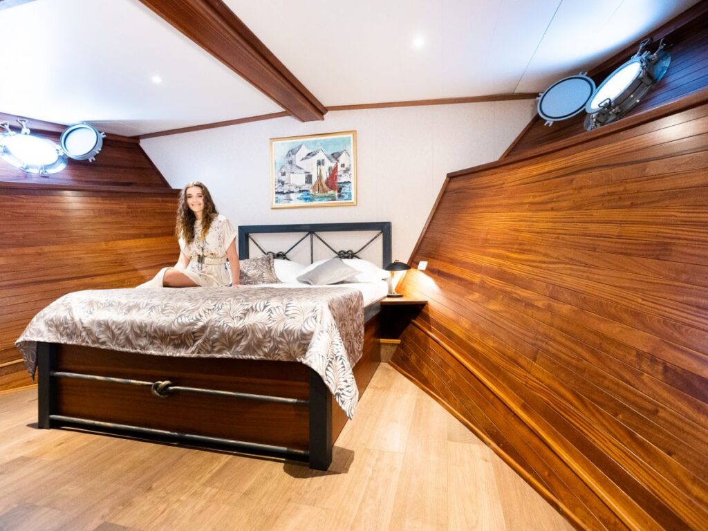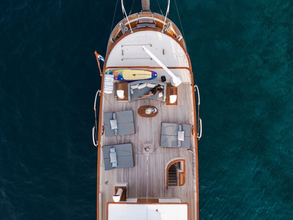 5 kabini ile 10 kişilik kapasitesi bulunan tekne oldukça şık dizayn edilmiştir. Modern ve klasik tarzı birleştirerek zamansız bir tasarım oluşturmuştur. Bir yat tatilinden ne bekliyorsanız burada bulacaksınız.