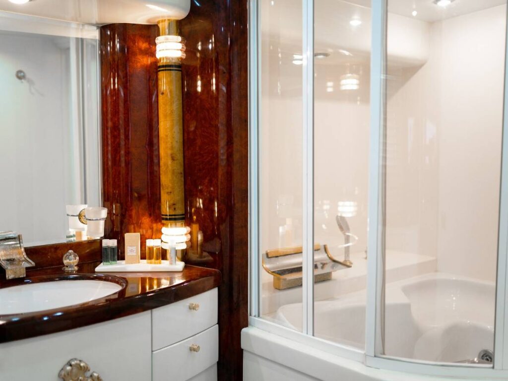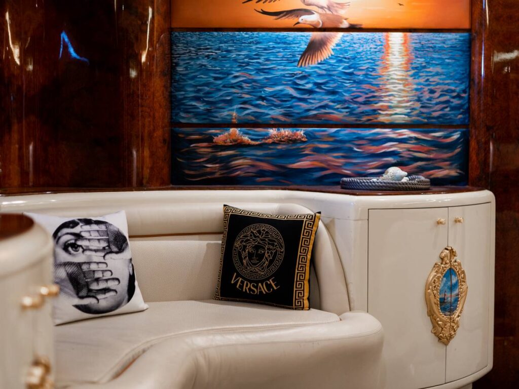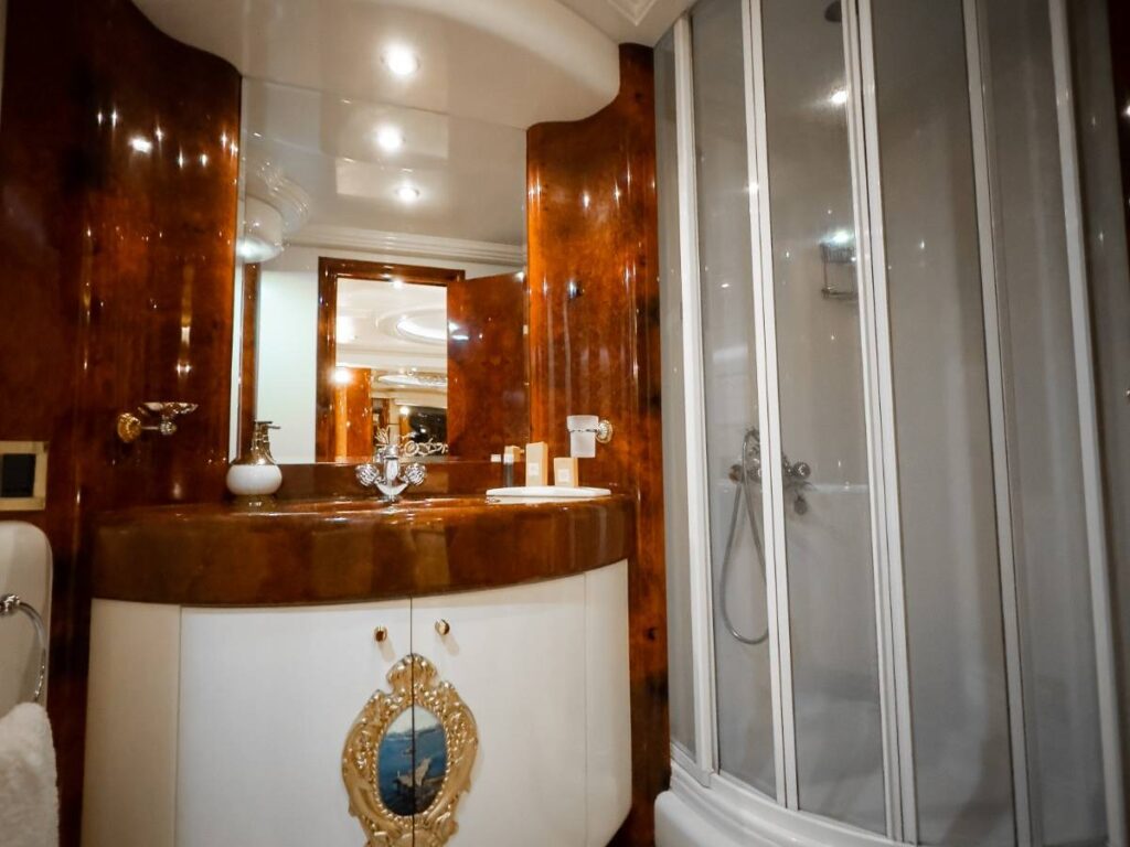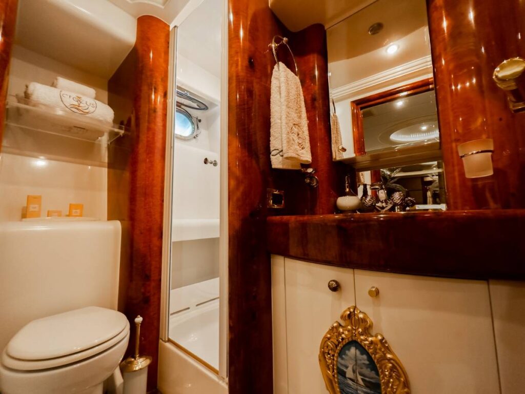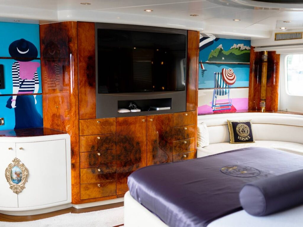6 kabini ile 12 kişilik kapasitesi vardır. Tüm yat klima ile donatılmıştır. Kabinlerde hem konfor, hem de rahatlık ön plandadır. Kabinlerin hepsinde Uydu TV-Apple TV-Ip TV sistemi vardır. Ayrıca master kabin ve Vip kabin jakuzilidir.