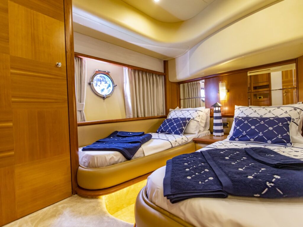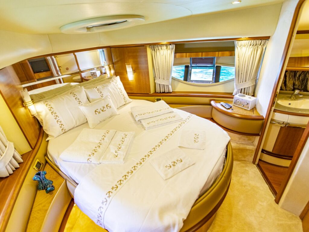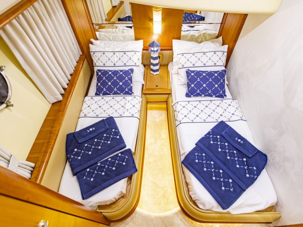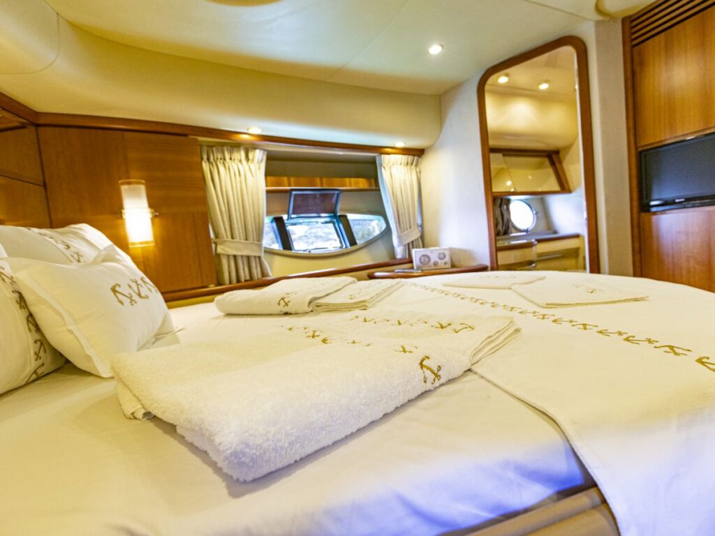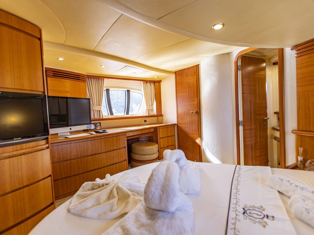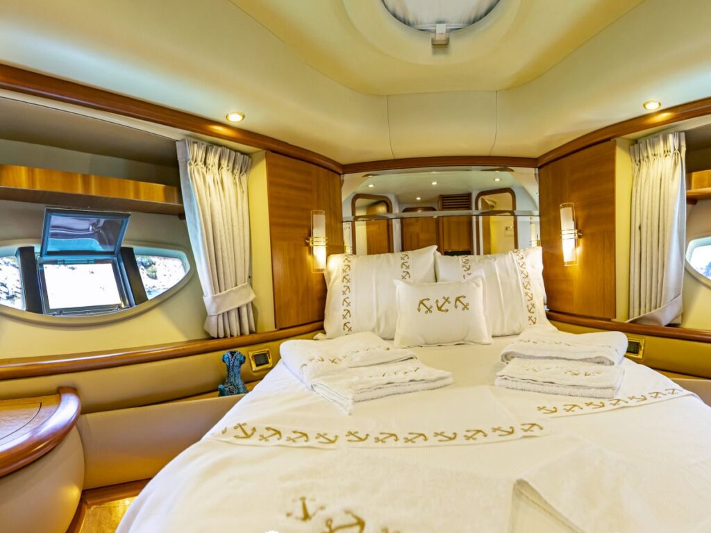 Yat 3 kabine sahiptir ve 6 kişiye kadar misafir ağırlayabilir. Gemide, endişelenmeden harika bir kiralık tatilin tadını çıkarabileceğiniz çok sayıda salon ve koltuk bulunmaktadır. 3 kişilik mürettebat profesyonel ve son derece yeteneklidir. Efe 01 için fiyat kalite oranı kesinlikle benzersizdir ve bu nedenle ekonomik fiyatlı bu motor yat hızlı bir şekilde rezerve edilir. Bu yüzden uzun süre beklemeyin !