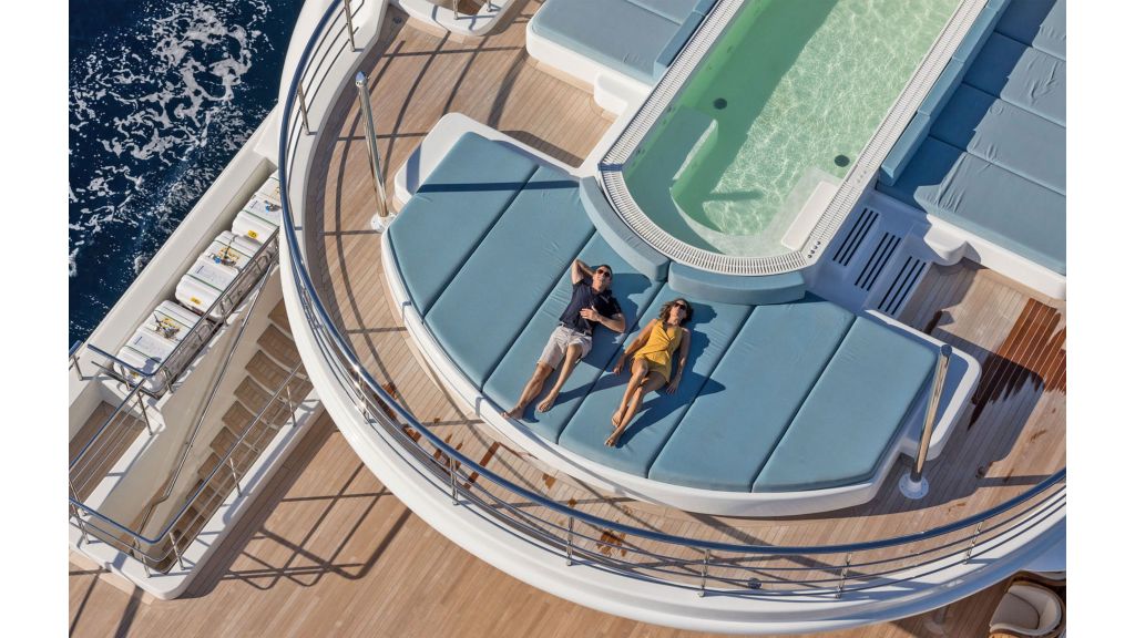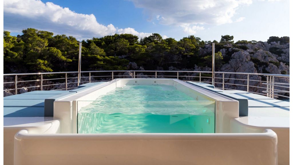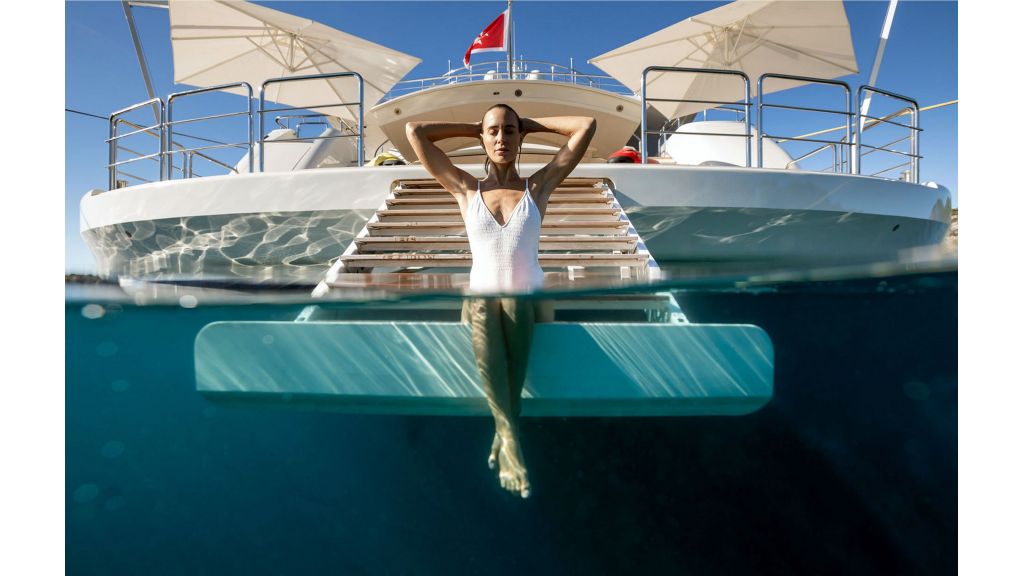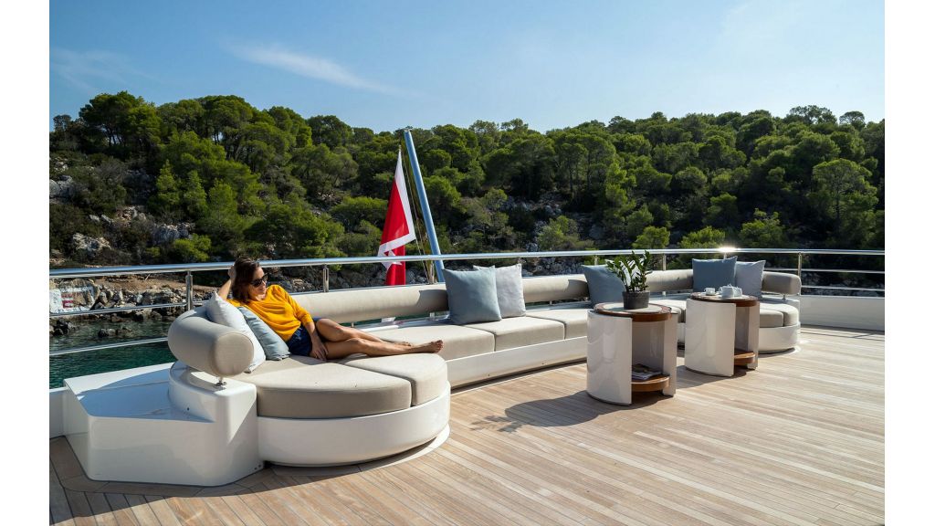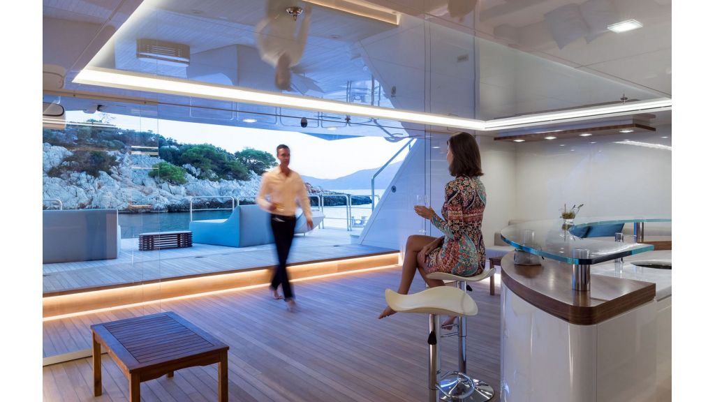 24 misafire kadar eşsiz yaşam ve eğlence olanakları. 180 derecelik panoramik manzaralı 95 m2’lik muhteşem bir süiti ve bitişik özel sinema odası olan 85 m2’lik büyük bir VIP süiti dahil on bir lüks kabin. Geniş dış güvertelerde uçsuz bucaksız deniz manzarası Köprü güvertesinde jakuzi havuzu ve etrafı güneşlenme oturma alanı ile çevrilidir. Köprü güvertesinde tam donanımlı spor salonu sofistike, ultra modern eğlence sistemi. Helikopter boyutu MD500E. Tüm güvertelerde asansör hizmeti Yüzme platformuna doğrudan erişim sunan sağlıklı yaşam ve spa merkezine sahip büyük plaj kulübü.