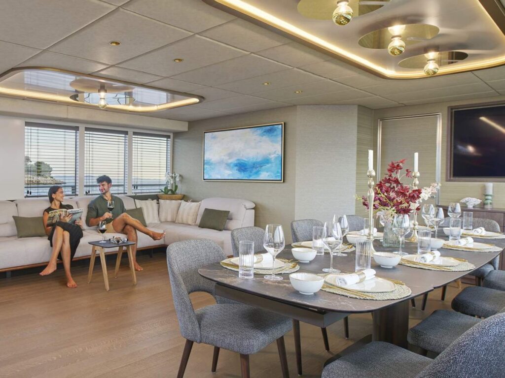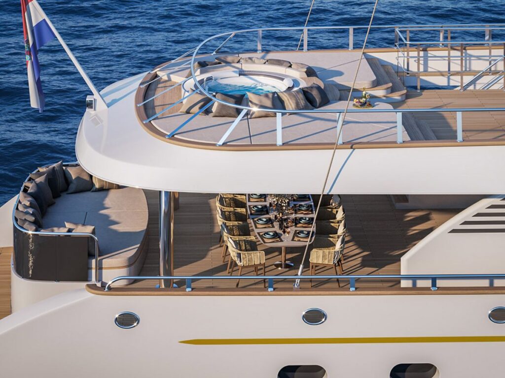 Motor Sailor Anima Maris, Latince “denizin ruhu” anlamına gelir ve bu özel yat adının hakkını verir. Bu yatın içi ve dışı son derece geniştir ve Hırvatistan’daki bu tip yatlarda en geniş kabinlere sahiptir. Derin toprak tonları, sıcak aydınlatma, koyu ahşap ve koyu mermer detaylar ile Anima Maris, klasik ama çağdaş bir iç mekana sahip olup, geleneksel bir dokunuşla samimi bir atmosfer yaratır. Açık alan aynı renk paletine sahiptir ve iki yemek alanı, bir jakuzi ve arkanıza yaslanıp dinlenebileceğiniz çok sayıda minder ile Adriyatik’in güzelliğini gezmek ve keşfetmek için ideal bir yerdir.