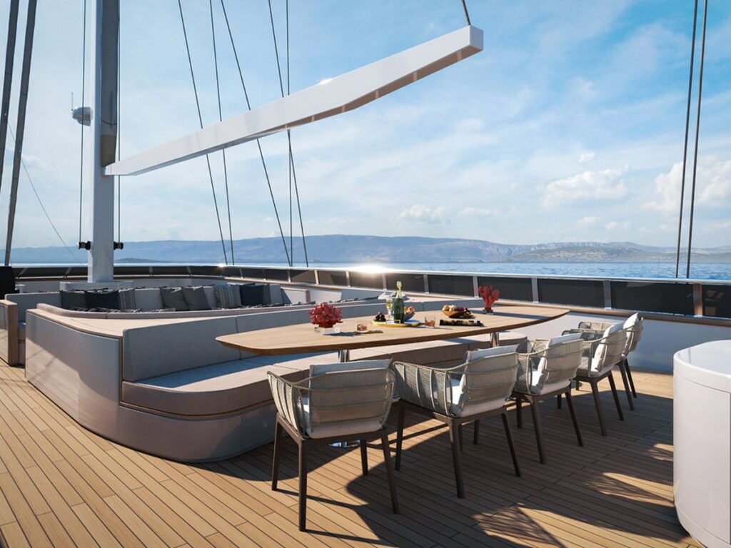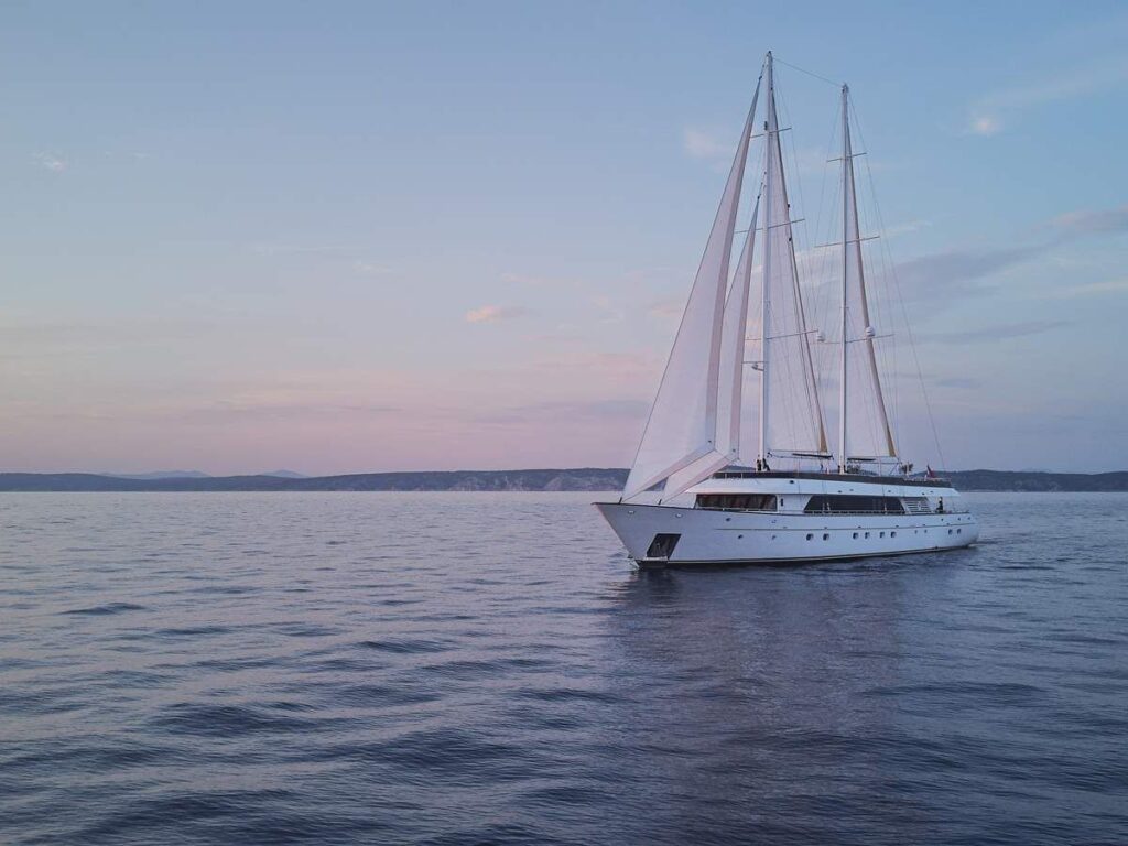 Motor Sailor ANIMA MARIS yepyeni bir yattır. Bu nefes kesici tekne, 2020 yılında inşa edilmiş ve Hırvatistan’da lüks bir gulet kiralama için 2021 yılında denize indirilmiştir. Anima Maris, altı geniş, modern ve konforlu kabininde 12 kişiye kadar misafir ağırlayabilmektedir. Eşsiz zarif çizgileri ve güzel yelkenleri ile bu motorlu denizci, Adriyatik’te bir mücevher gibidir ve büyük ilgi görür.