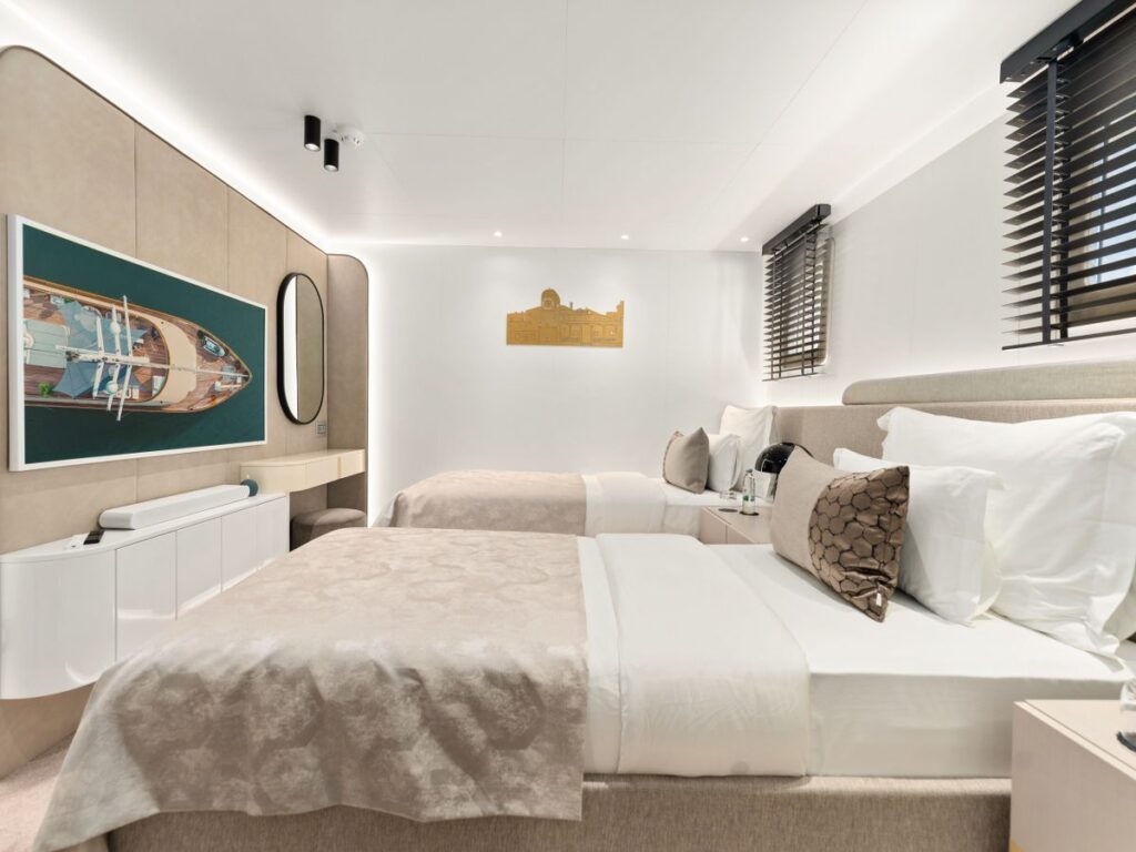 2024 yılında inşa edilen Maxita, bir ana süit, bir VIP kabin ve ikiz veya çift kişilik olarak kullanılabilen dört kabinden oluşan 6 süitte 12 misafire kadar konaklama olanağı sunuyor. Ayrıca rahatlatıcı bir lüks yat kiralama deneyimi sağlamak için gemide 7’ye kadar mürettebat taşıyabilmektedir.