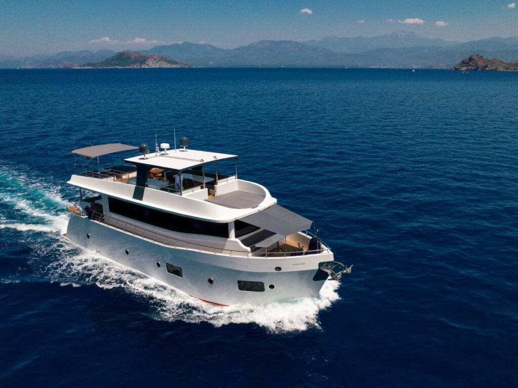 Trawler Oggusto, 2023 yılı yapımı mavi yolculuk için tüm donanıma sahip şık bir teknedir.