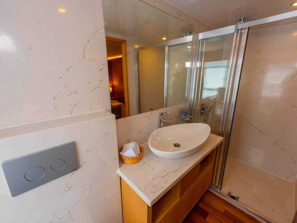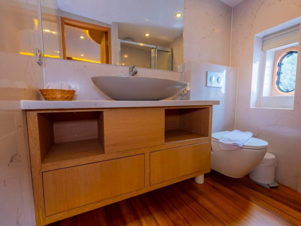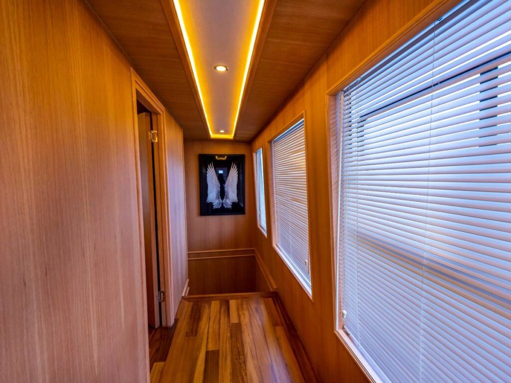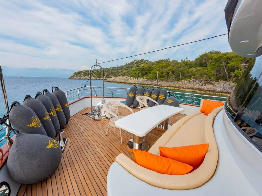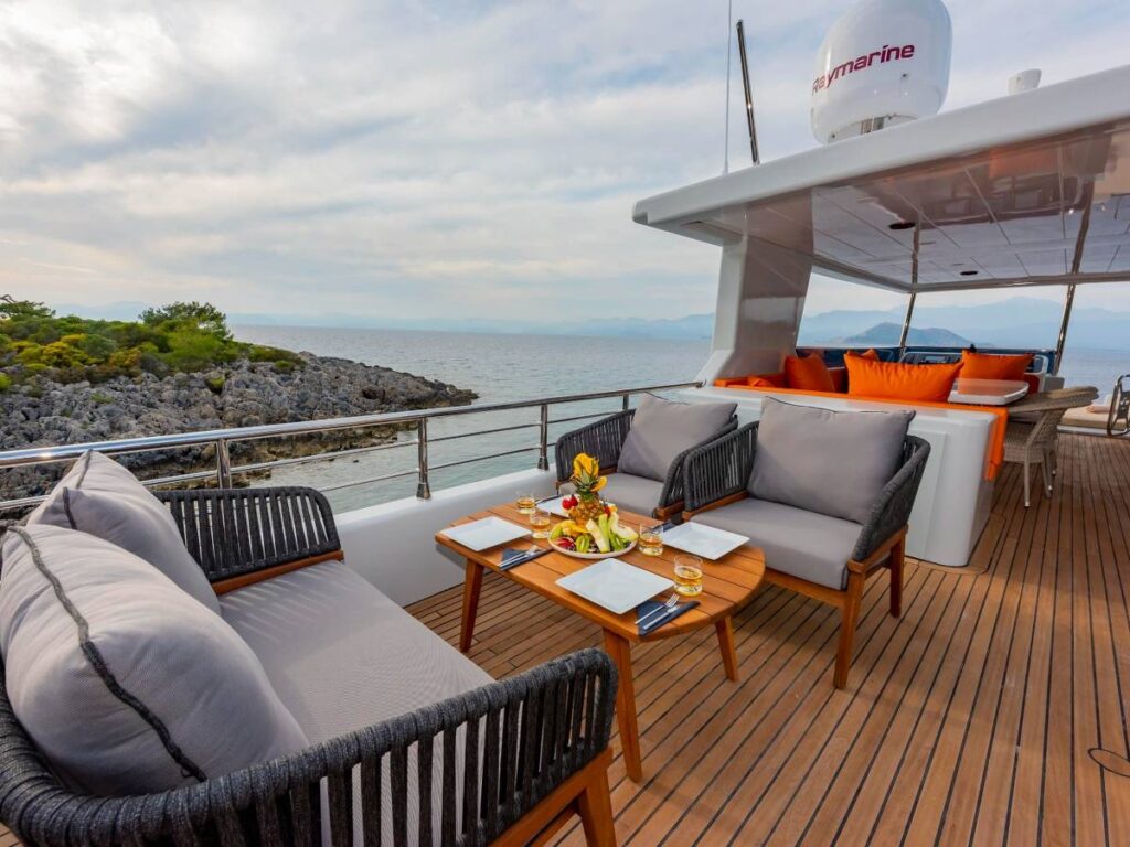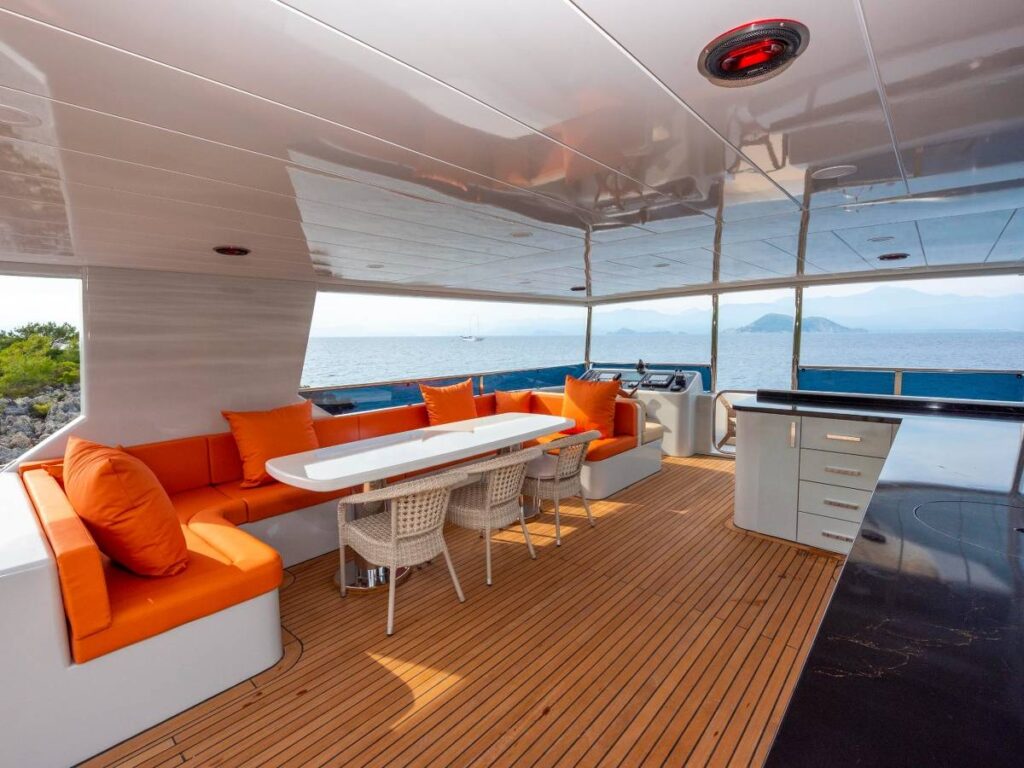 5 kabinli teknemiz 10 kişilik kapasitesi ile sizi tüm misafirperverliği ile ağırlayacak. Tüm kabinler ve salon klima ile donatılmıştır ve kabinler özel tasarım ürünüdür. İç ve dış mekanları oldukça konforlu ve zevkli döşenmiştir. Flybridge, size ayrı bir özel alan sunmakla kalmaz, tüm maviliklere özgür bir bakış açısı yakalar.