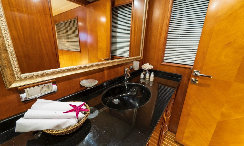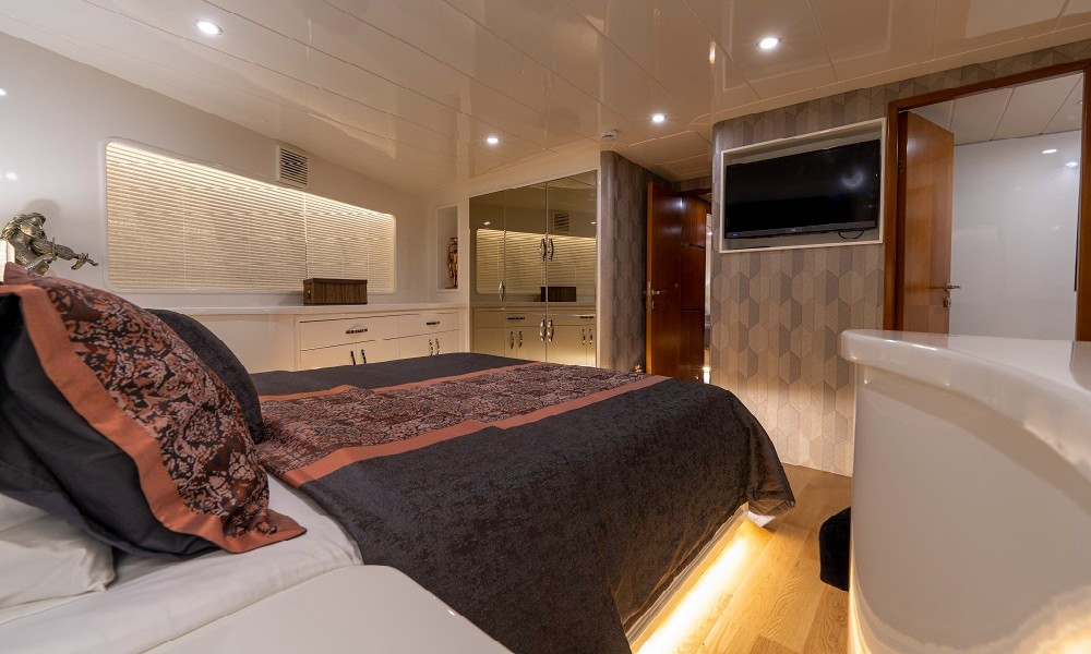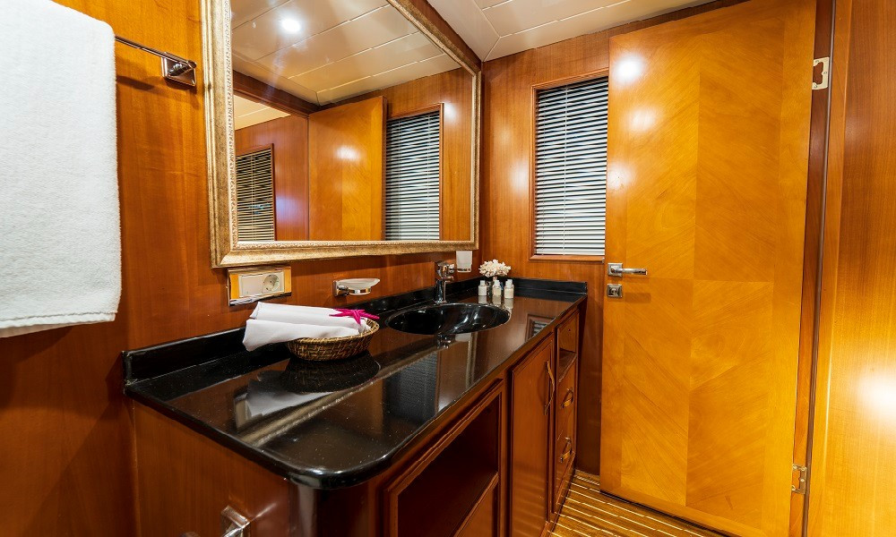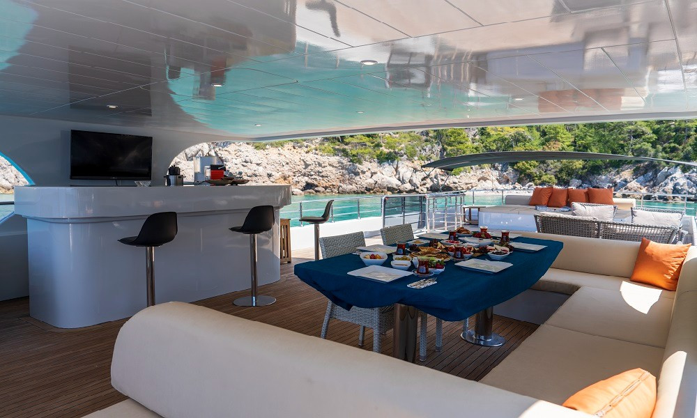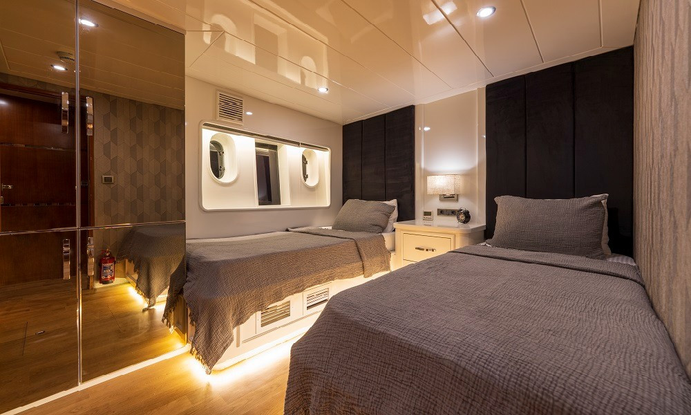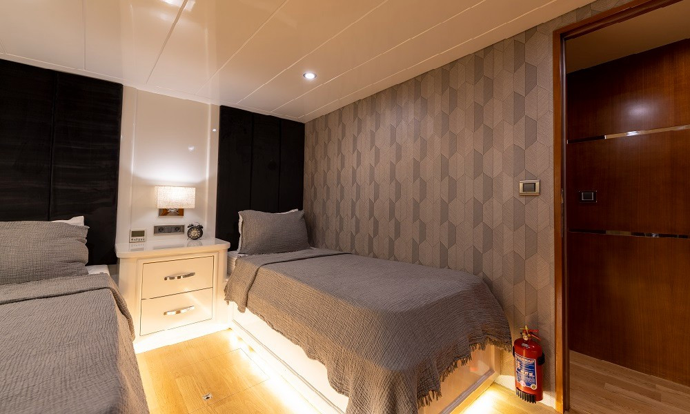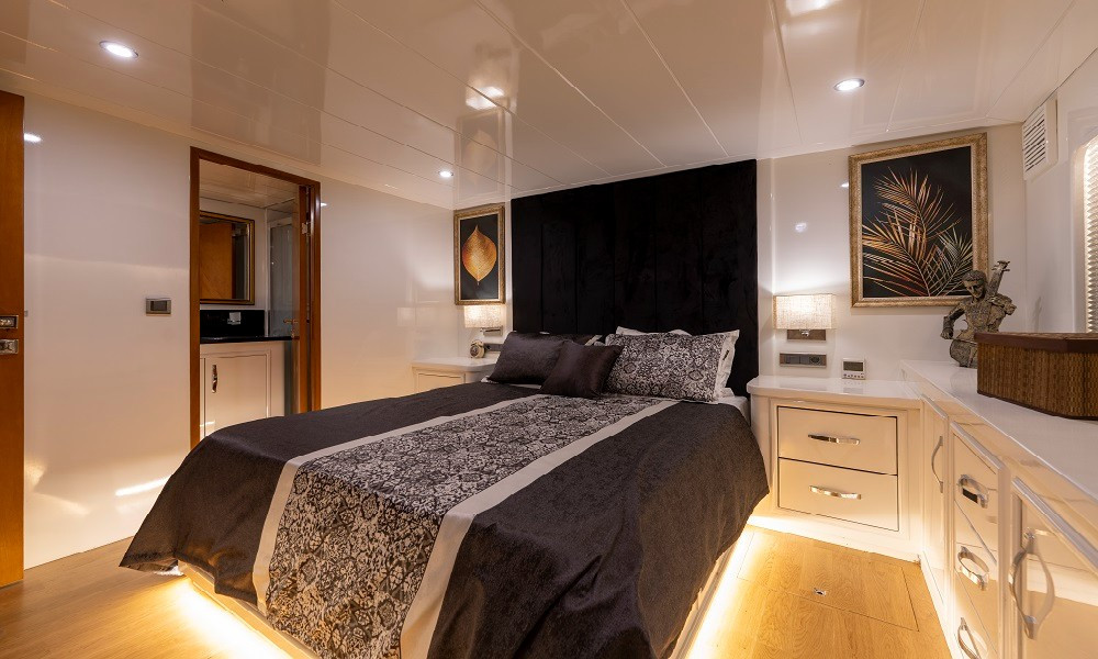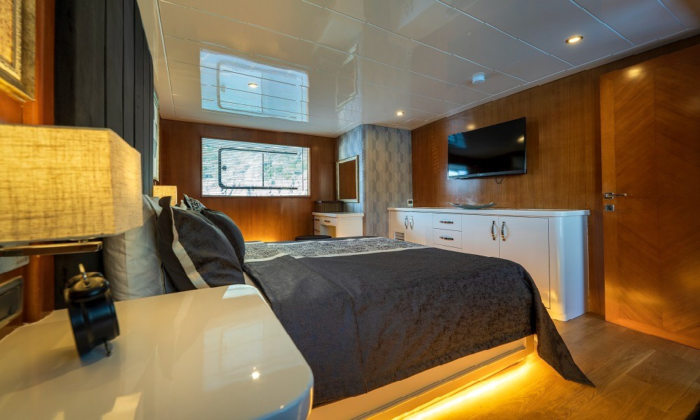 2015 yapımı olan yat, düşünebileceğiniz tüm olanaklarla donatılmıştır. Mavi yolculuklarda aranan konfor tam da burdadır. 3 Master, 2 Twin kabini bulunan teknemizin tüm kabinleri şık ve rahattır. Bir otel konforu yaşayacağınız bu tatilde hiçbir eksiğiniz olmayacak.